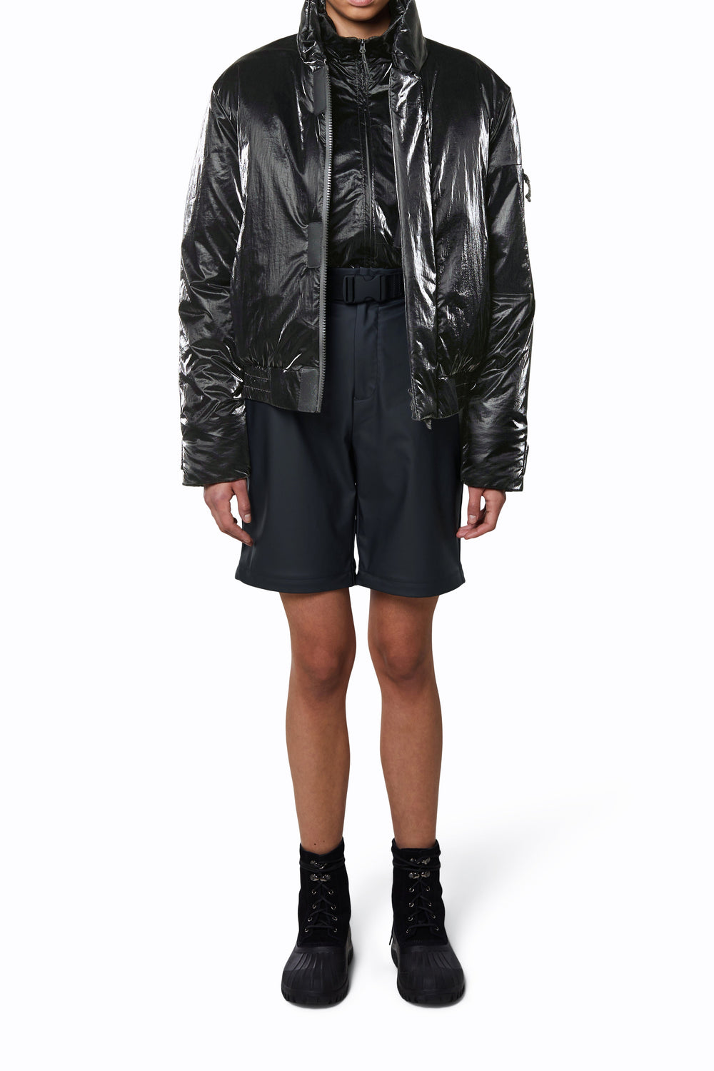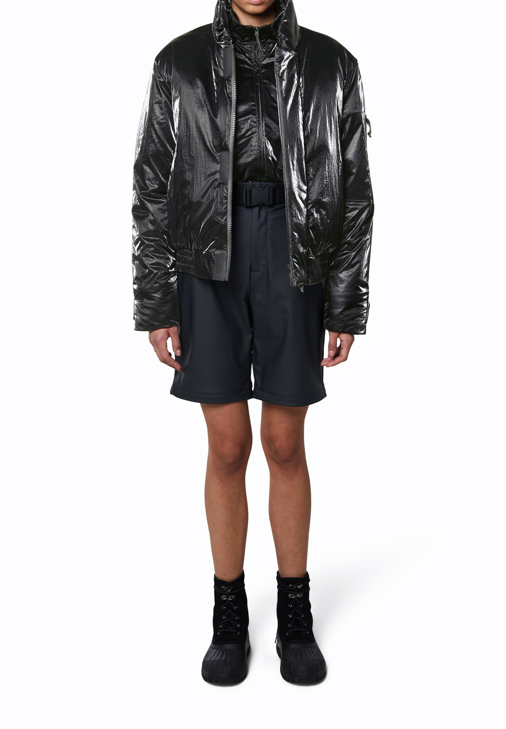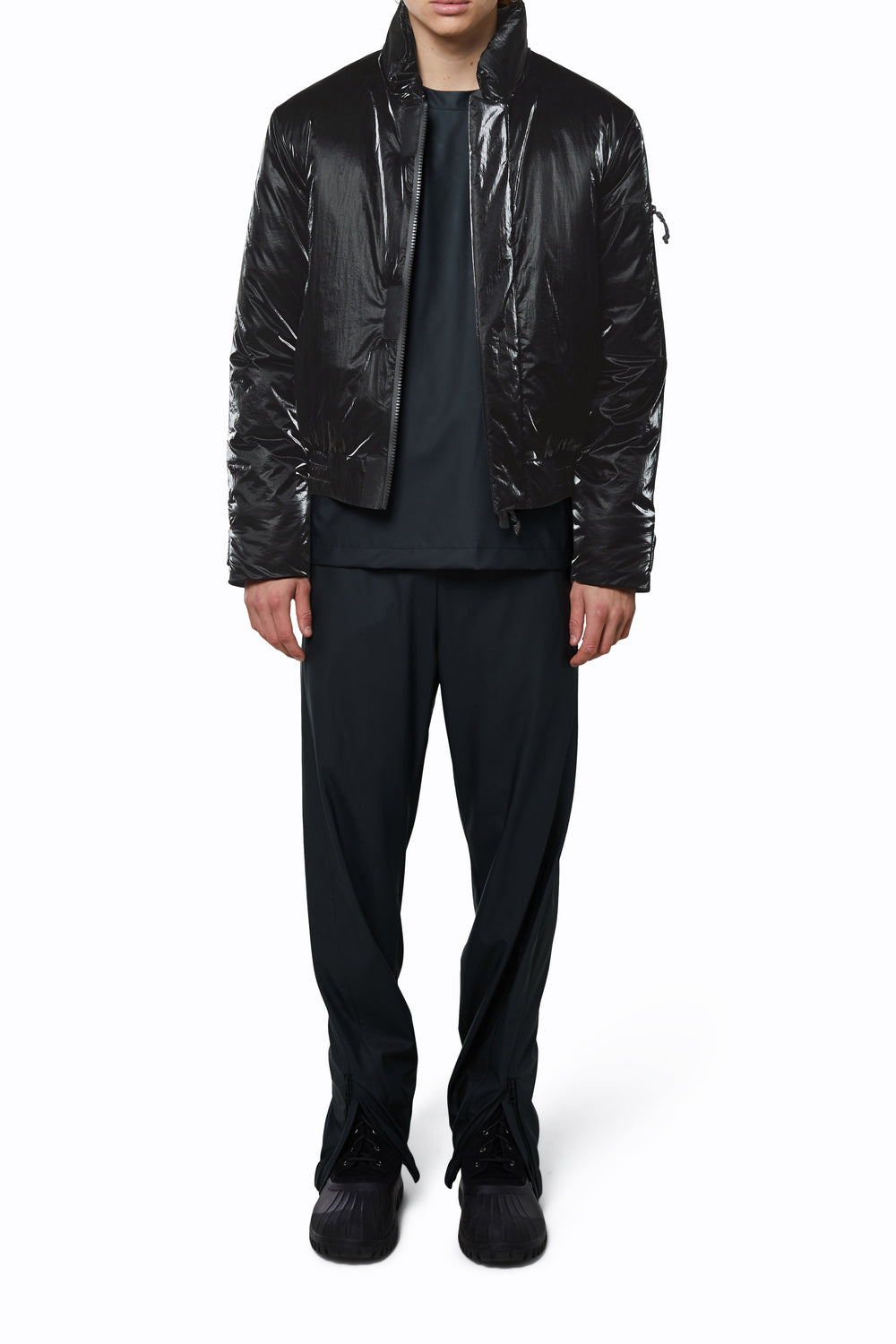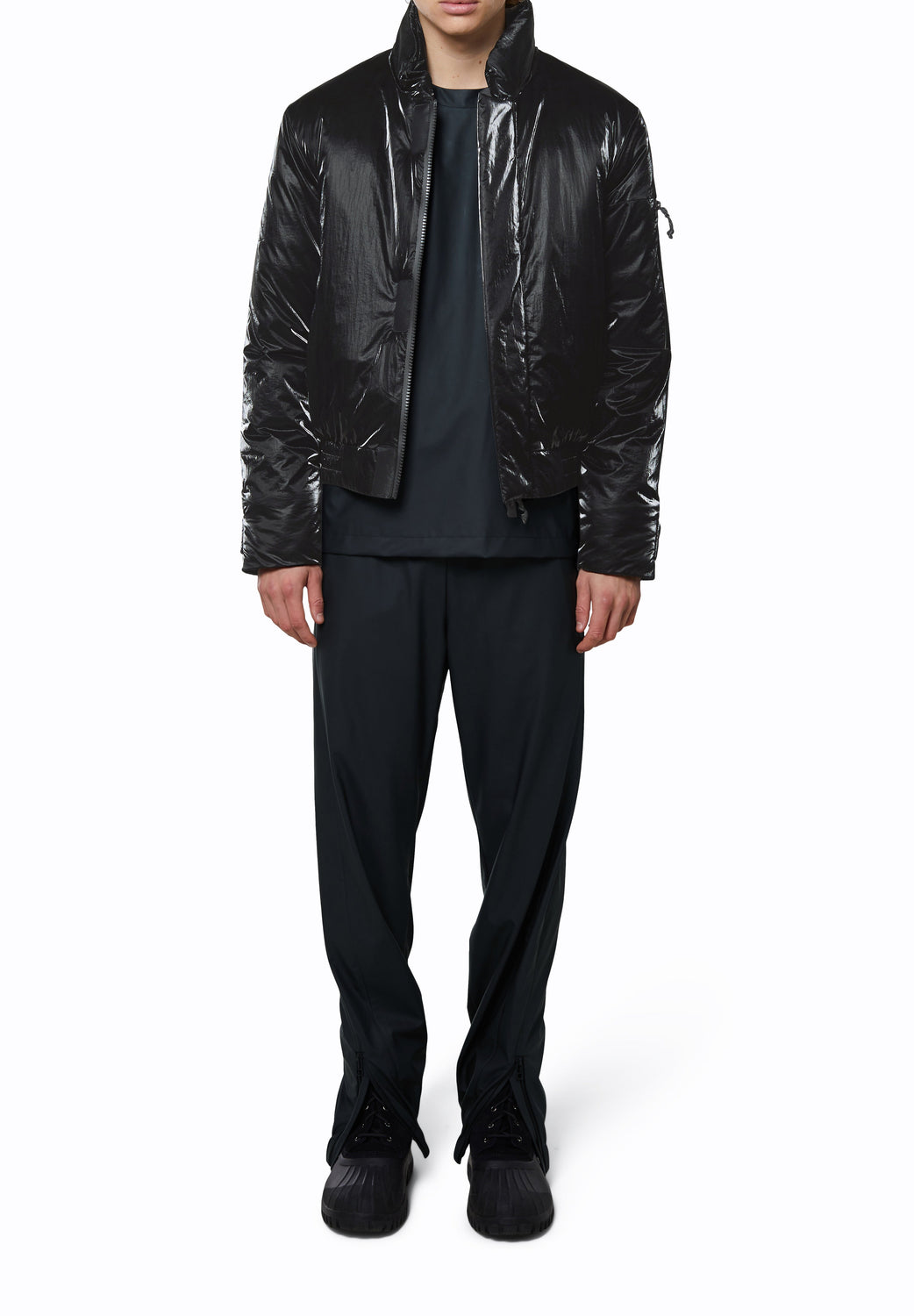 Cardigan bomber Rains confecionado em tecido de 100% poliéster com revestimento de poliuretano.