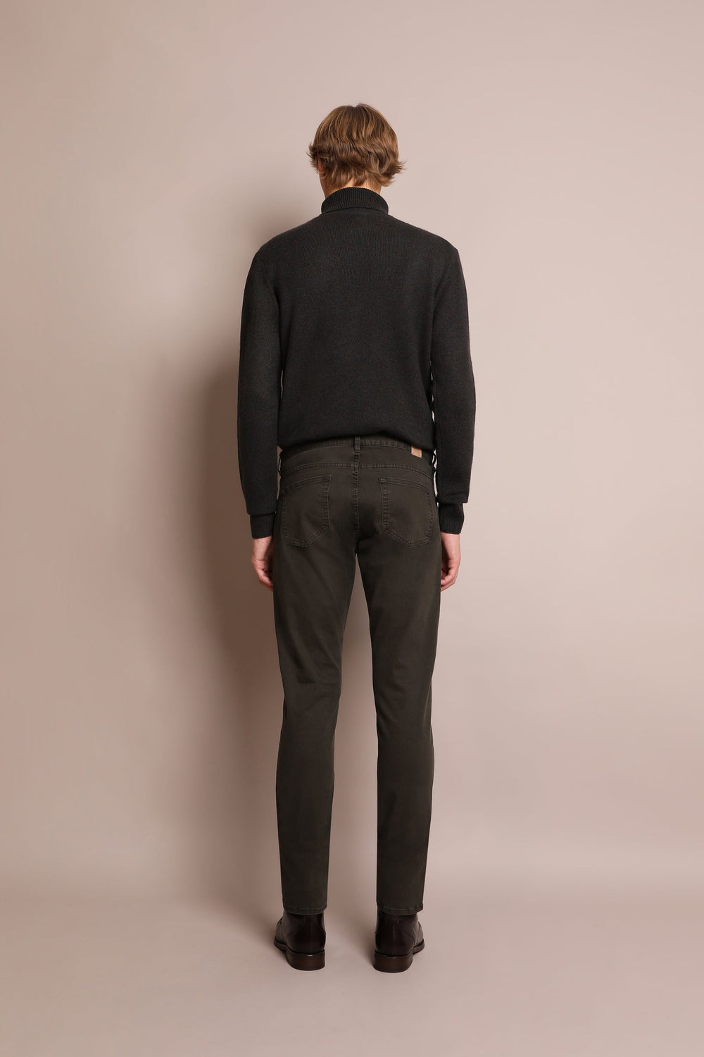 CALÇAS CINCO BOLSOS Confecionadas em algodão reciclado ligeiramente elásticas, corte Regular Fit, fecho com botões, bolsos laterais e traseiros e presilhas na cintura.