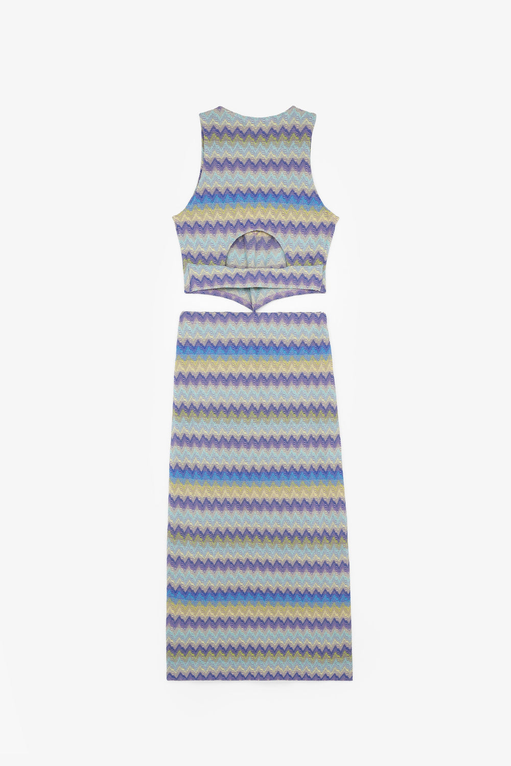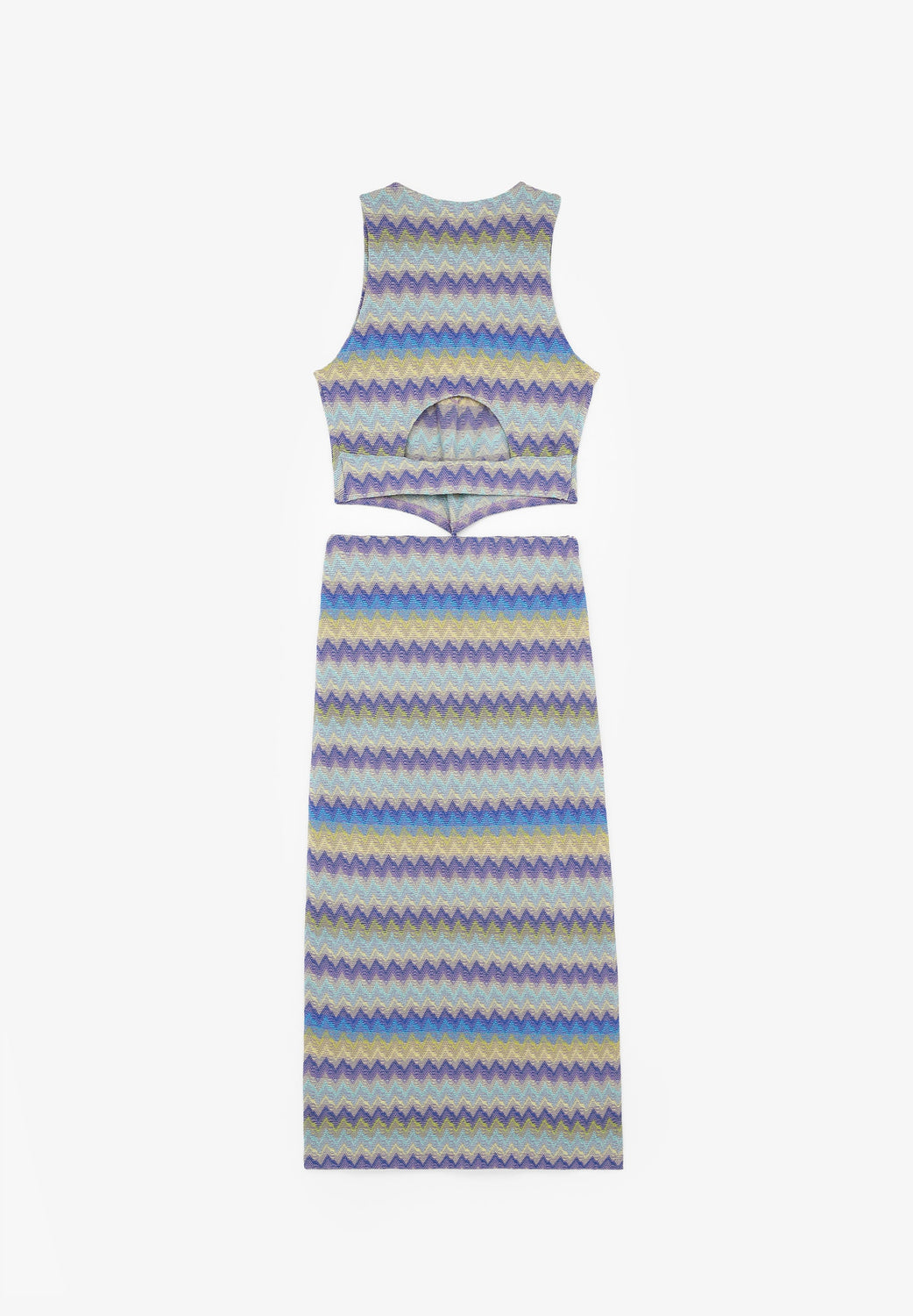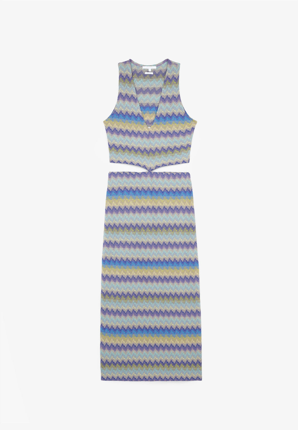 Vestido midi com aberturas na cintura confecionado em malha fina. Corte Slim Fit, decote em bico e alças largas. Costas com abertura.