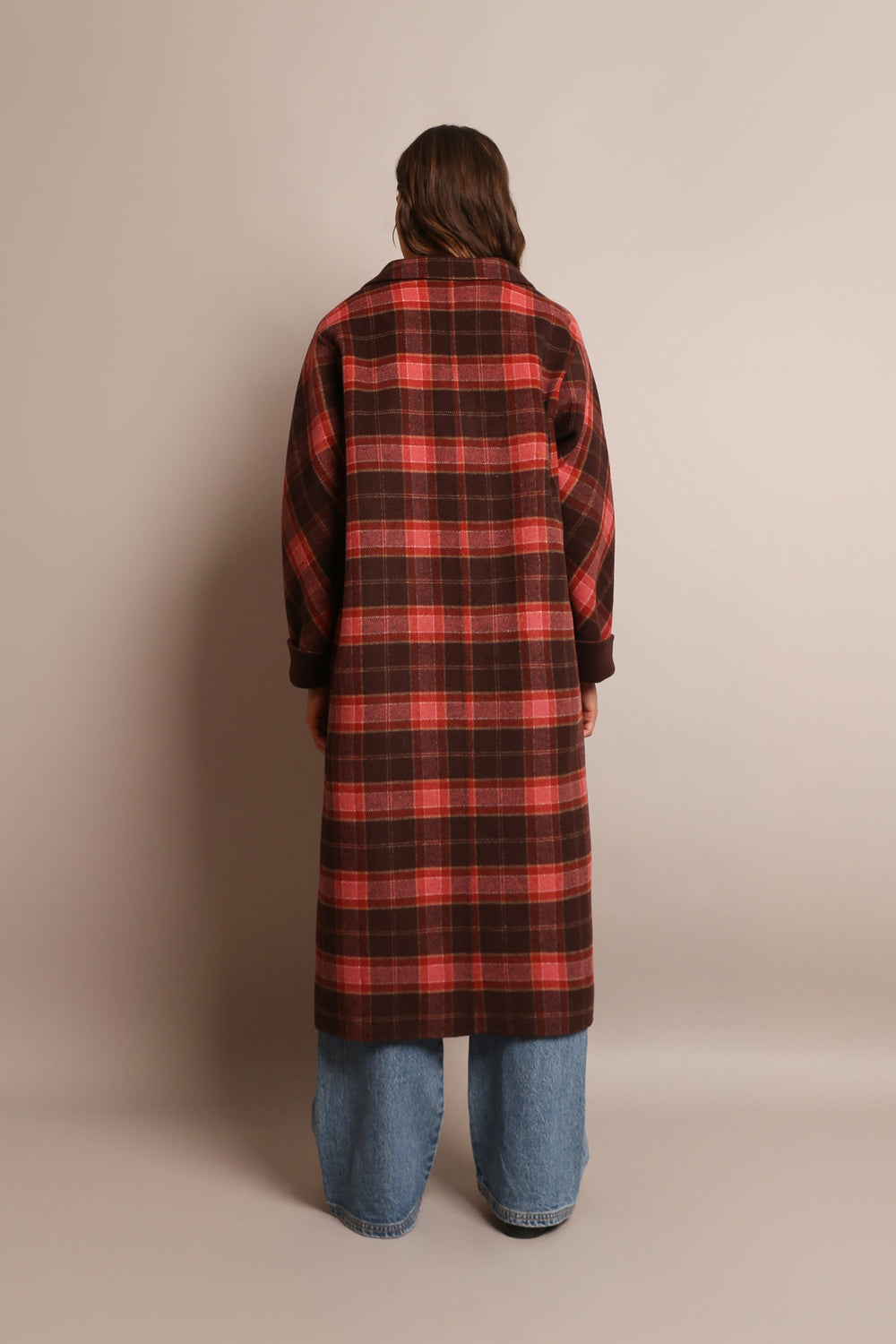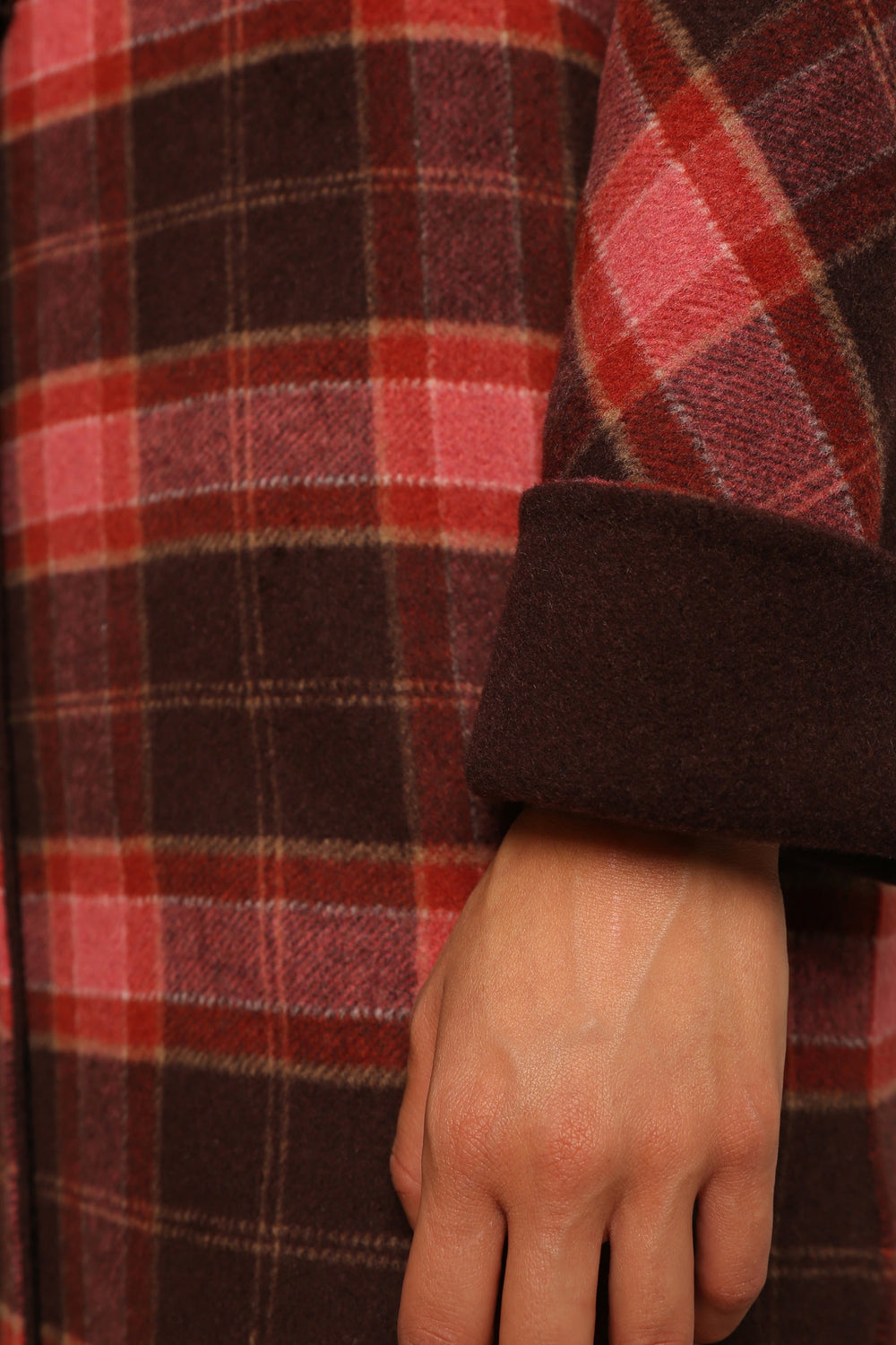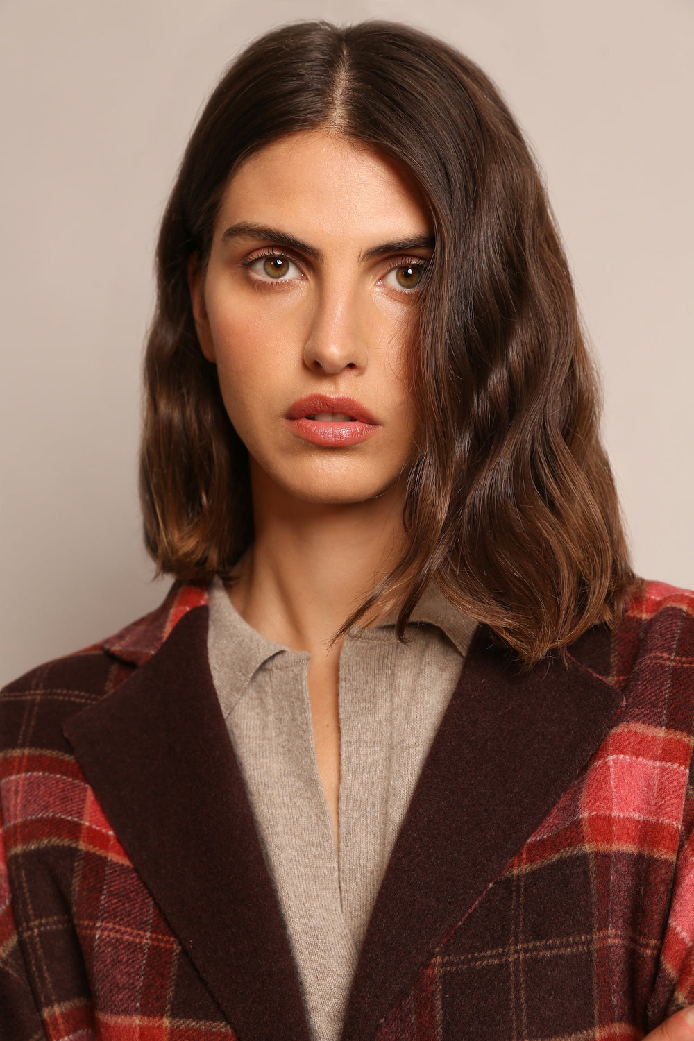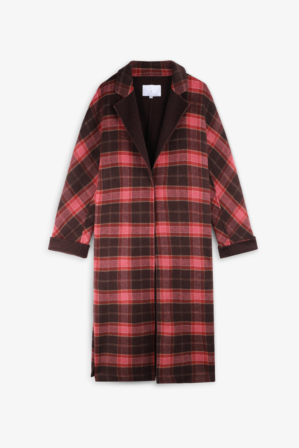 Casaco de quadrados confecionado em mistura de lã. Corte regular fit, gola com lapelas e fecho com botão de pressão metálico. Bolsos laterais.