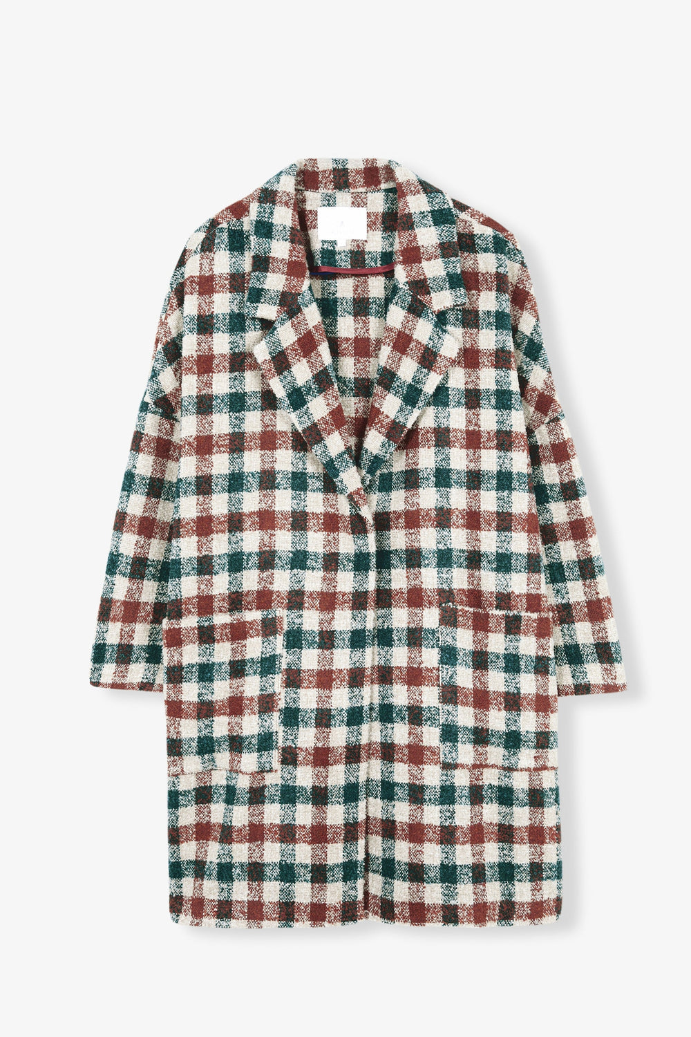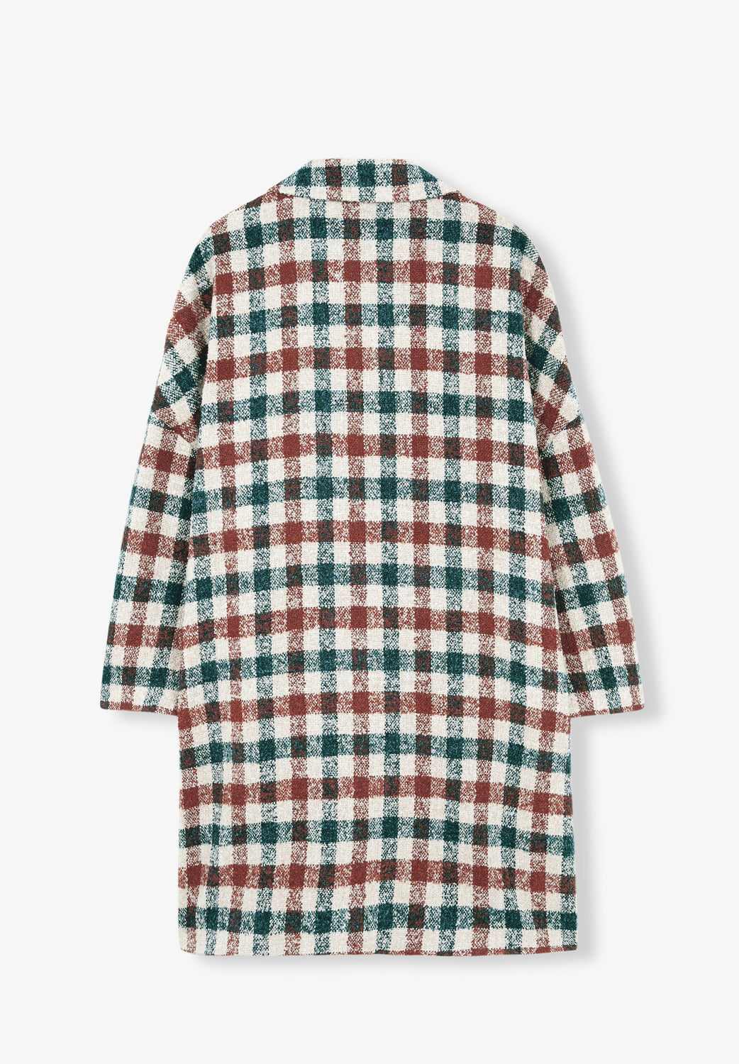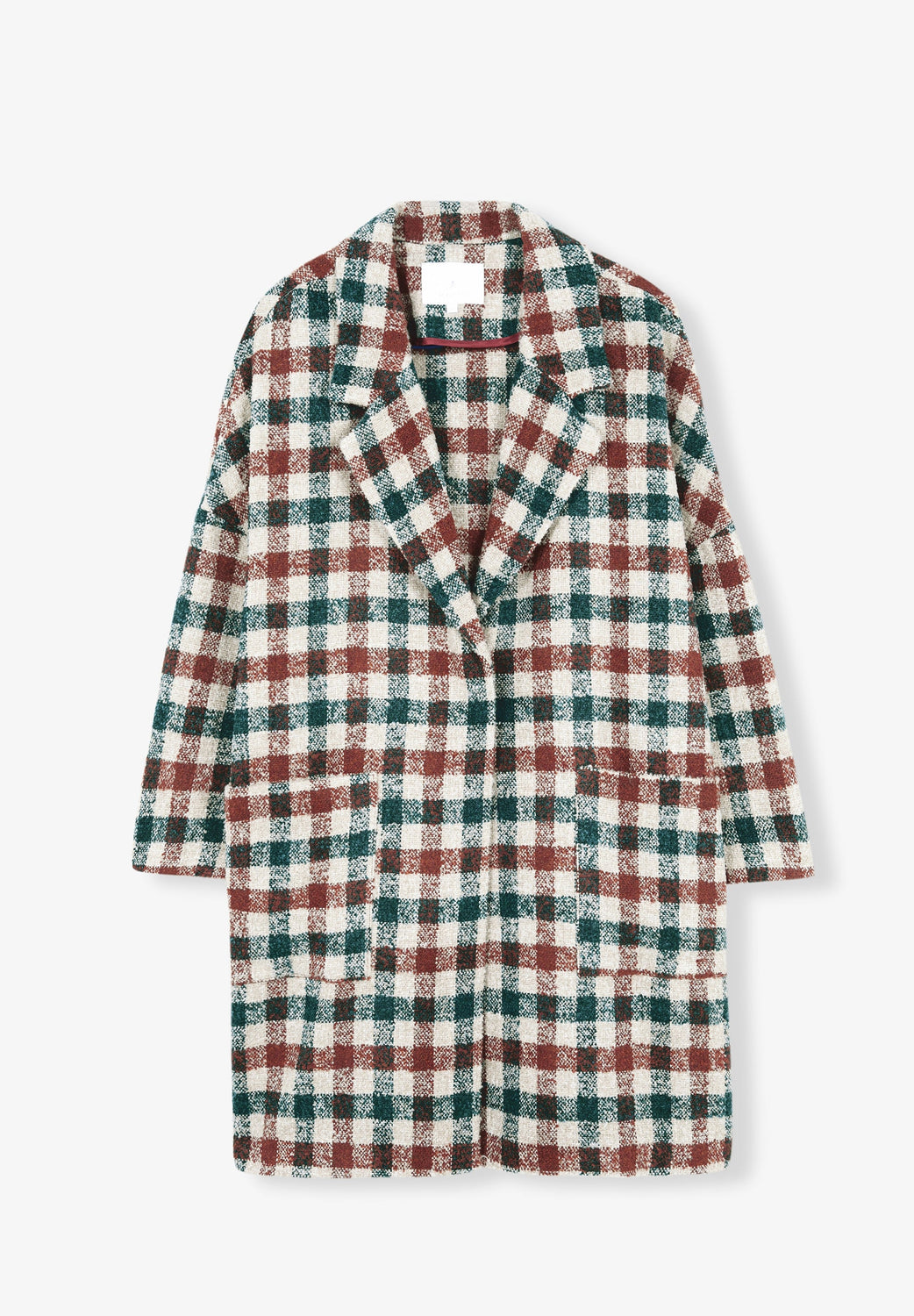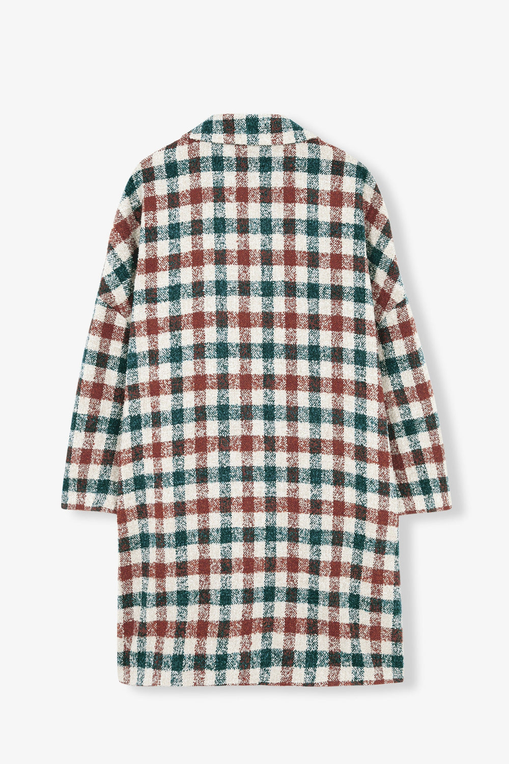 Casaco midi de pano aos quadrados confecionado em mistura lã e algodão. Corte Regular Fit, gola com lapelas entalhadas e fecho com botões automáticos. Manga comprida e bolsos de remendo.