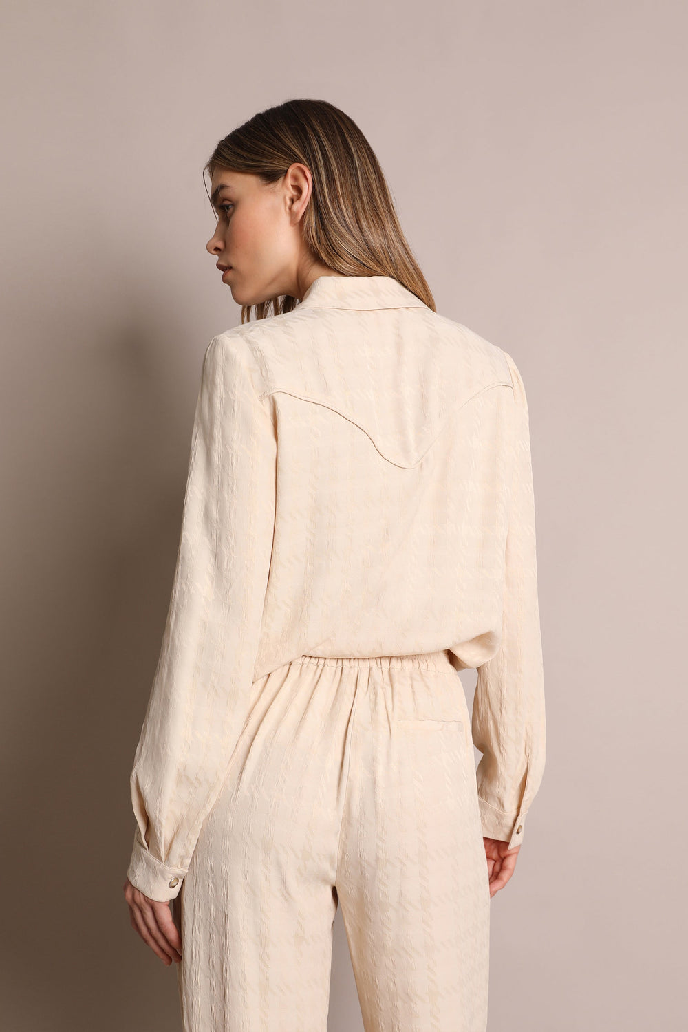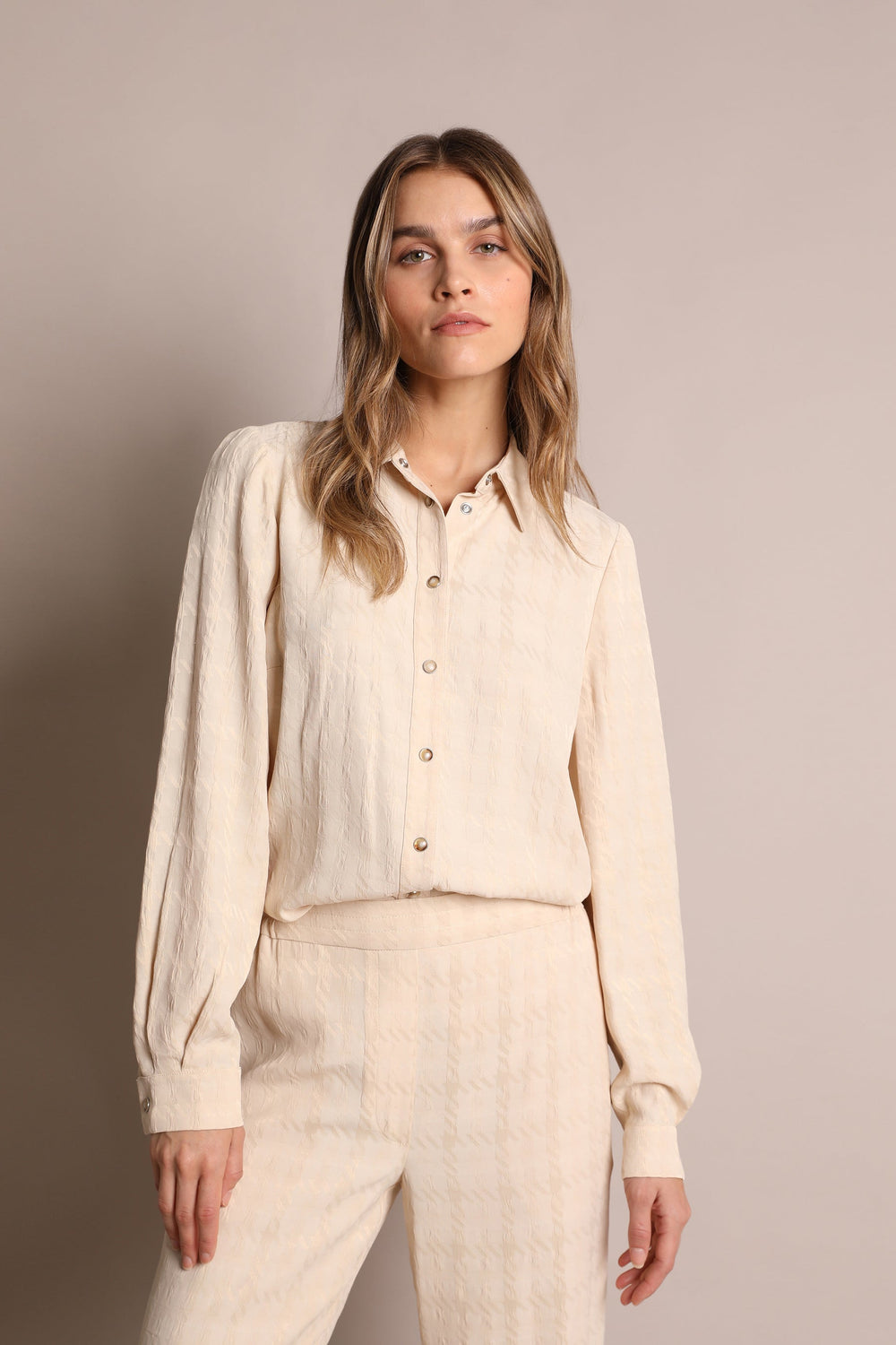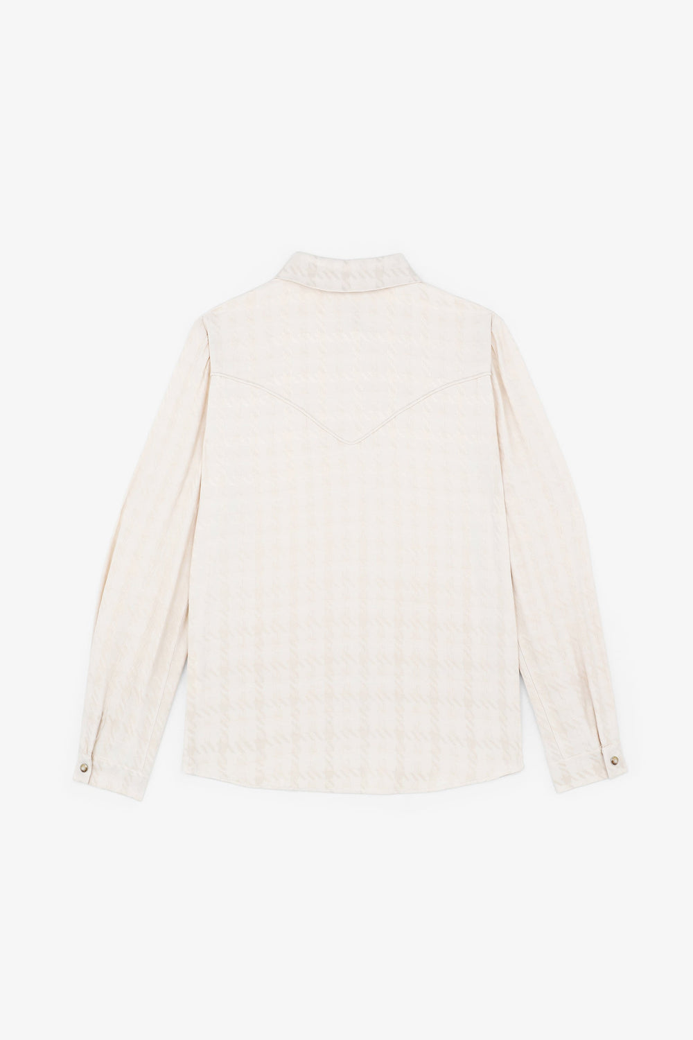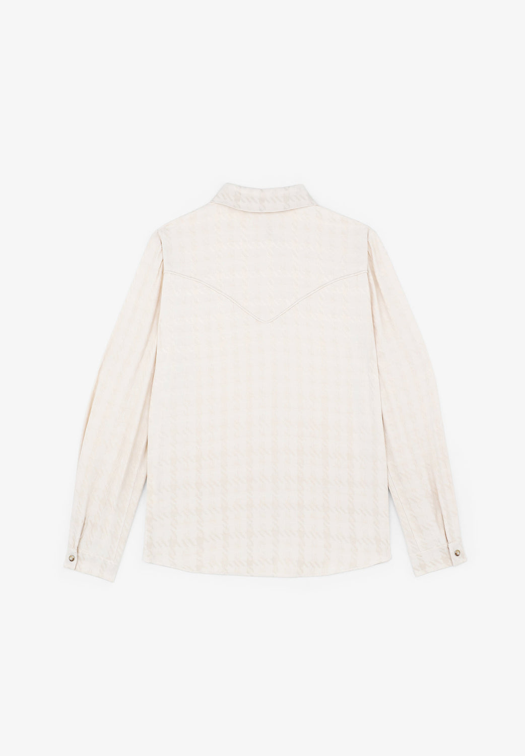 Camisa com tecido de jacquard confecionada em tecido fluido. Corte Regular Fit, colarinho clássico e fecho com botões de pressão. Manga comprida terminada em punho com botões.