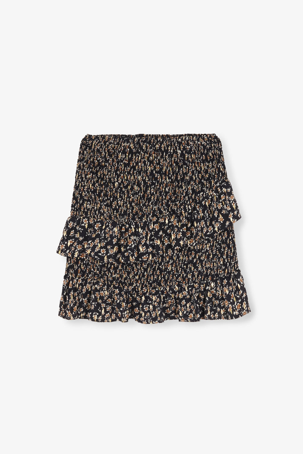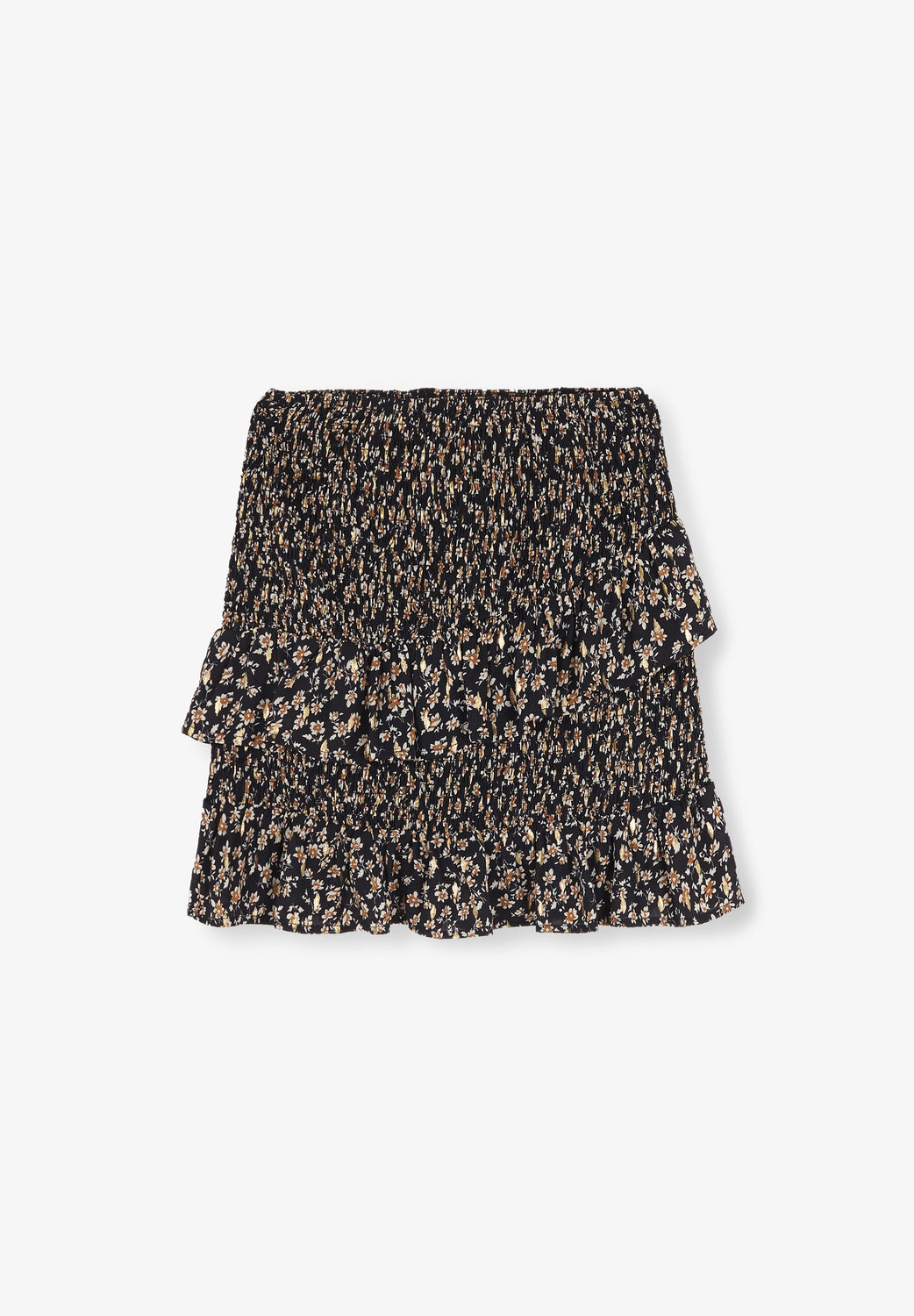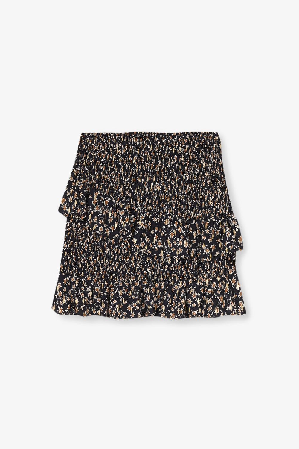 Minissaia com estampado floral. Corte Slim Fit, tecido franzido e folho duplo.