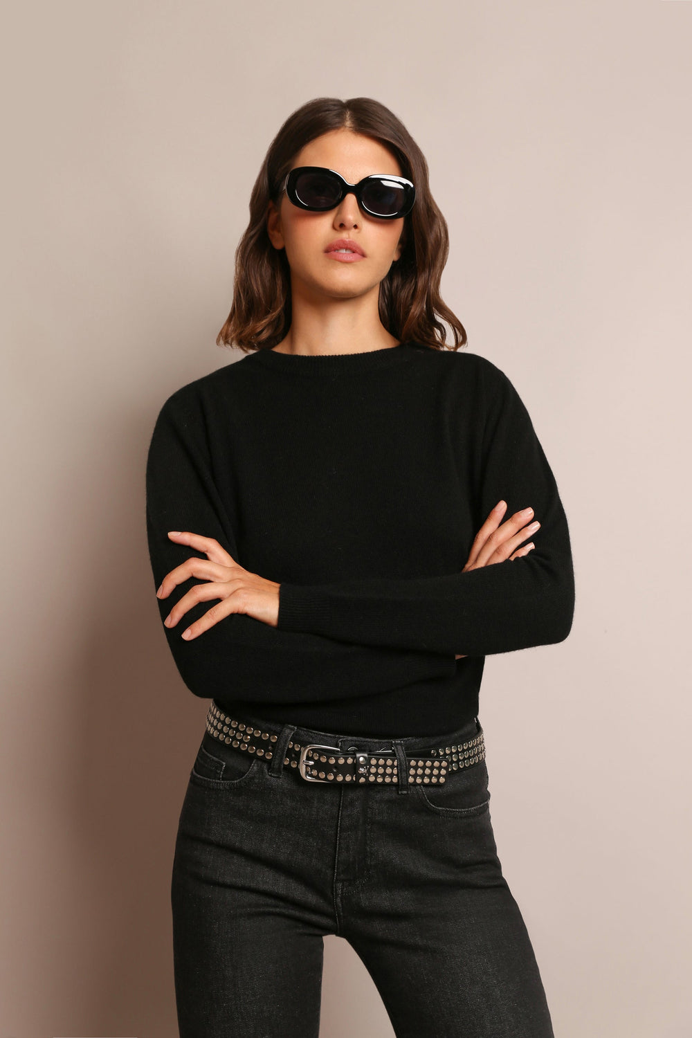 Sweater lisa confecionada em 100% caxemira. Corte Regular Fit, decote redondo e manga comprida.