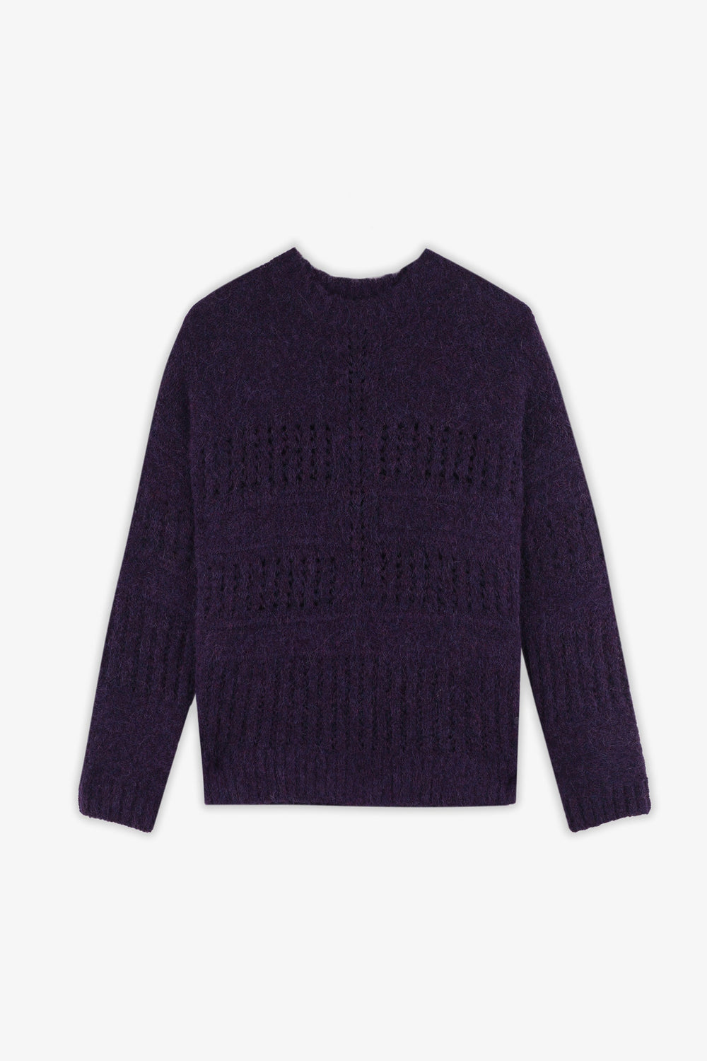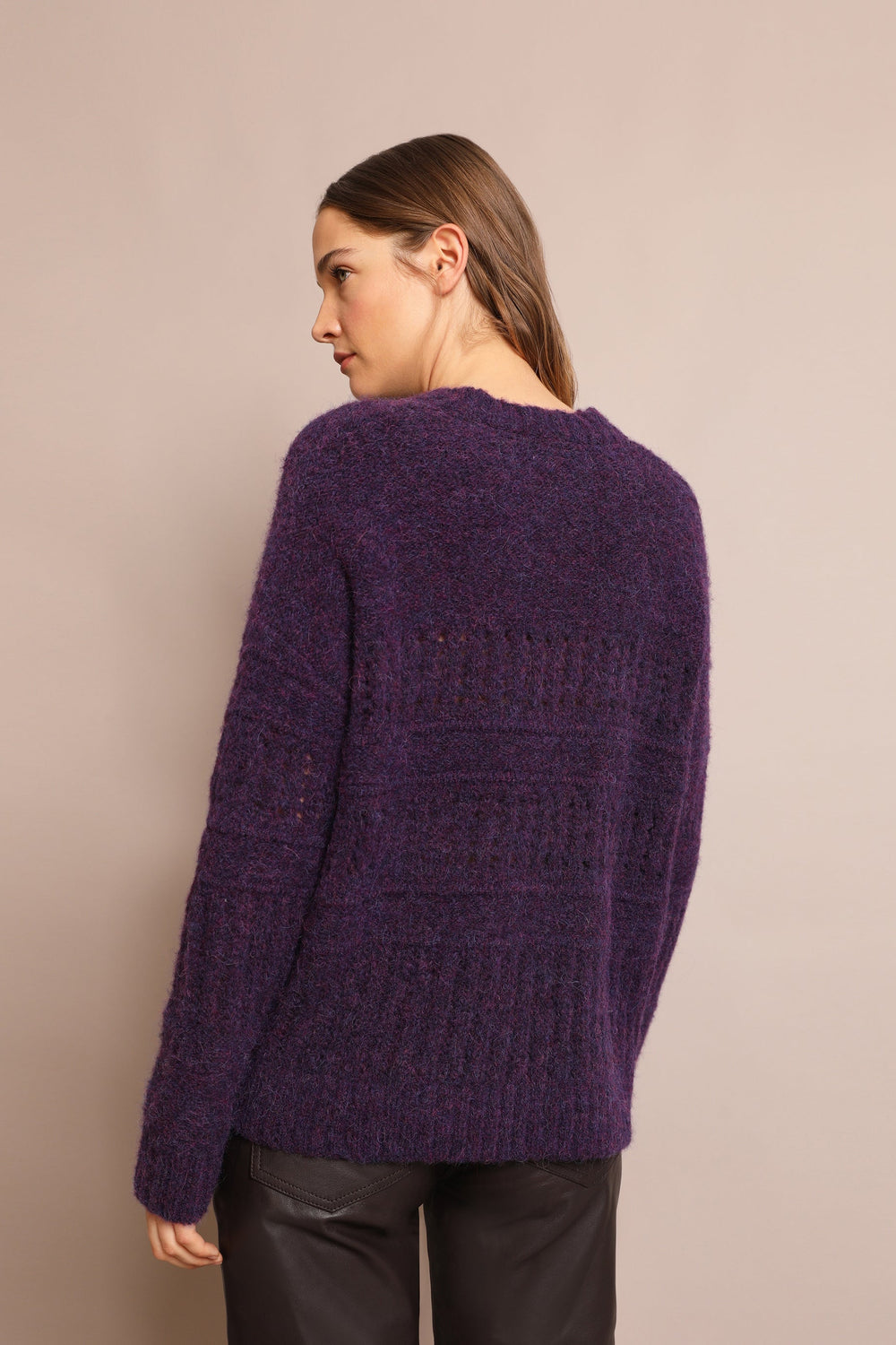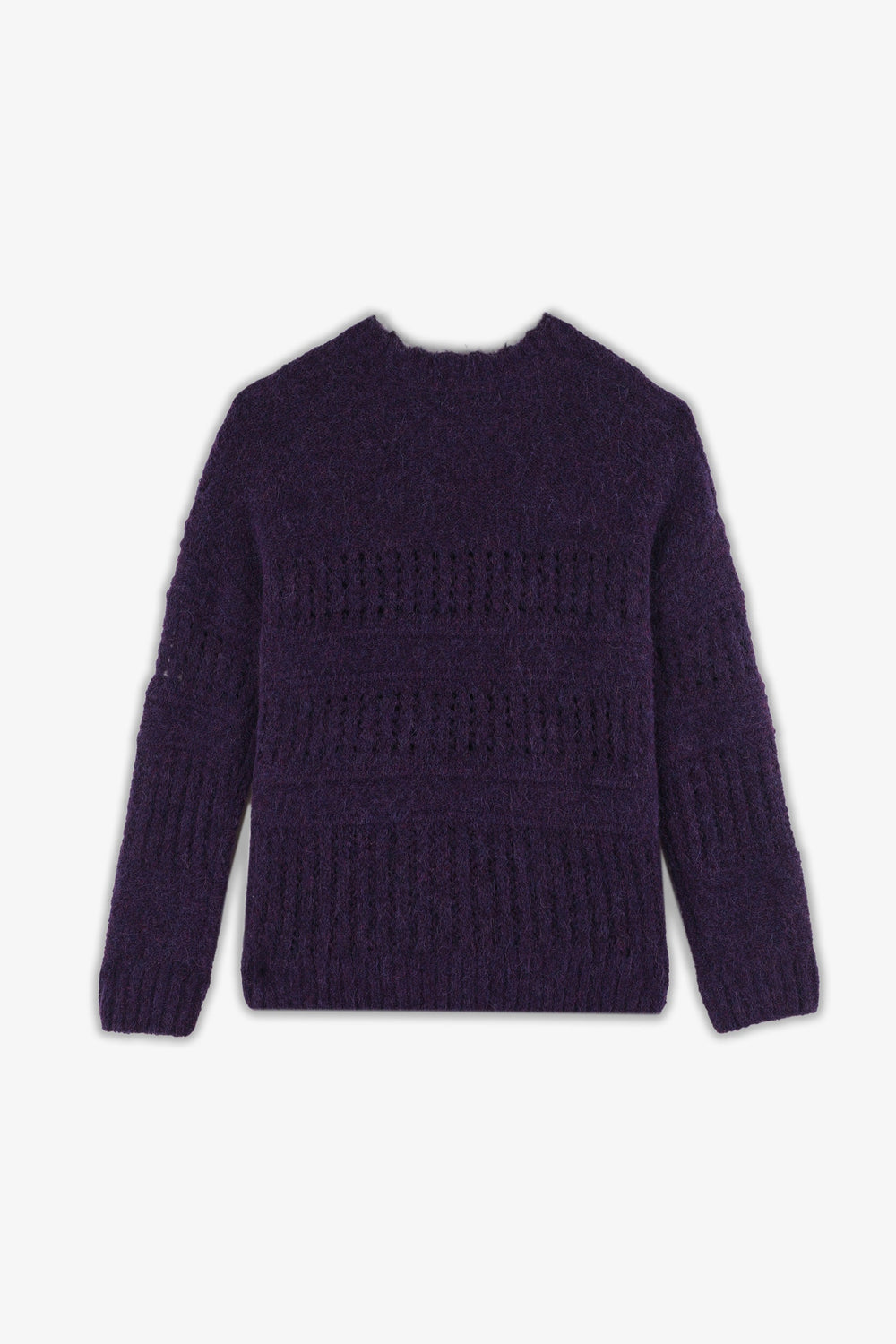 Sweater com pormenor de rendilhado confecionada em mistura de lã, alpaca e poliéster reciclado. Corte Regular Fit, decote redondo e manga comprida.