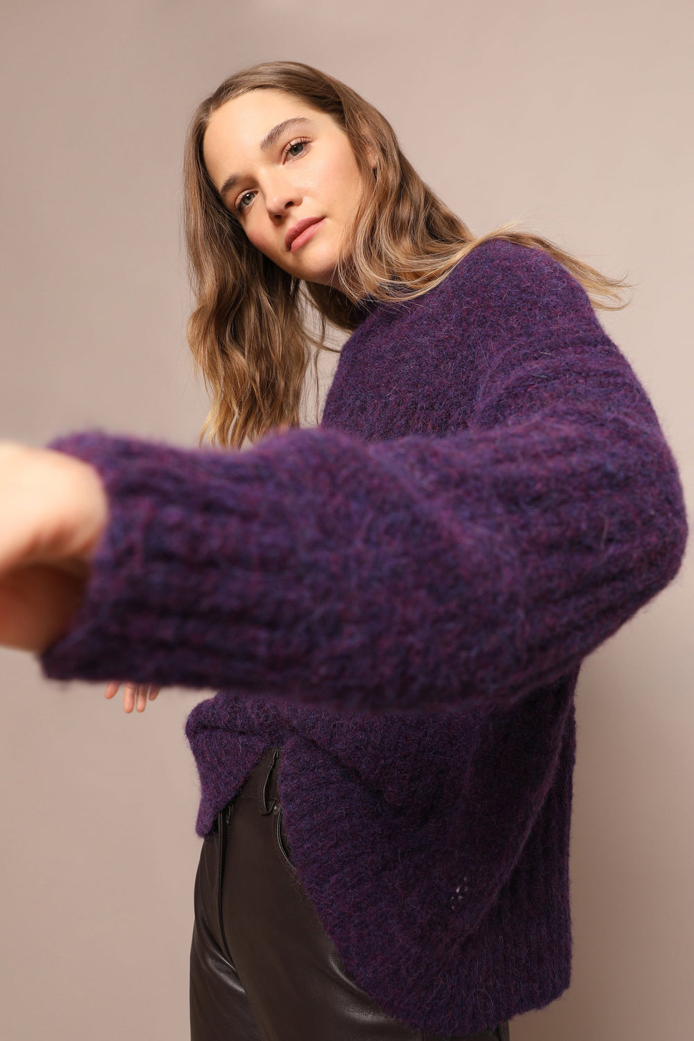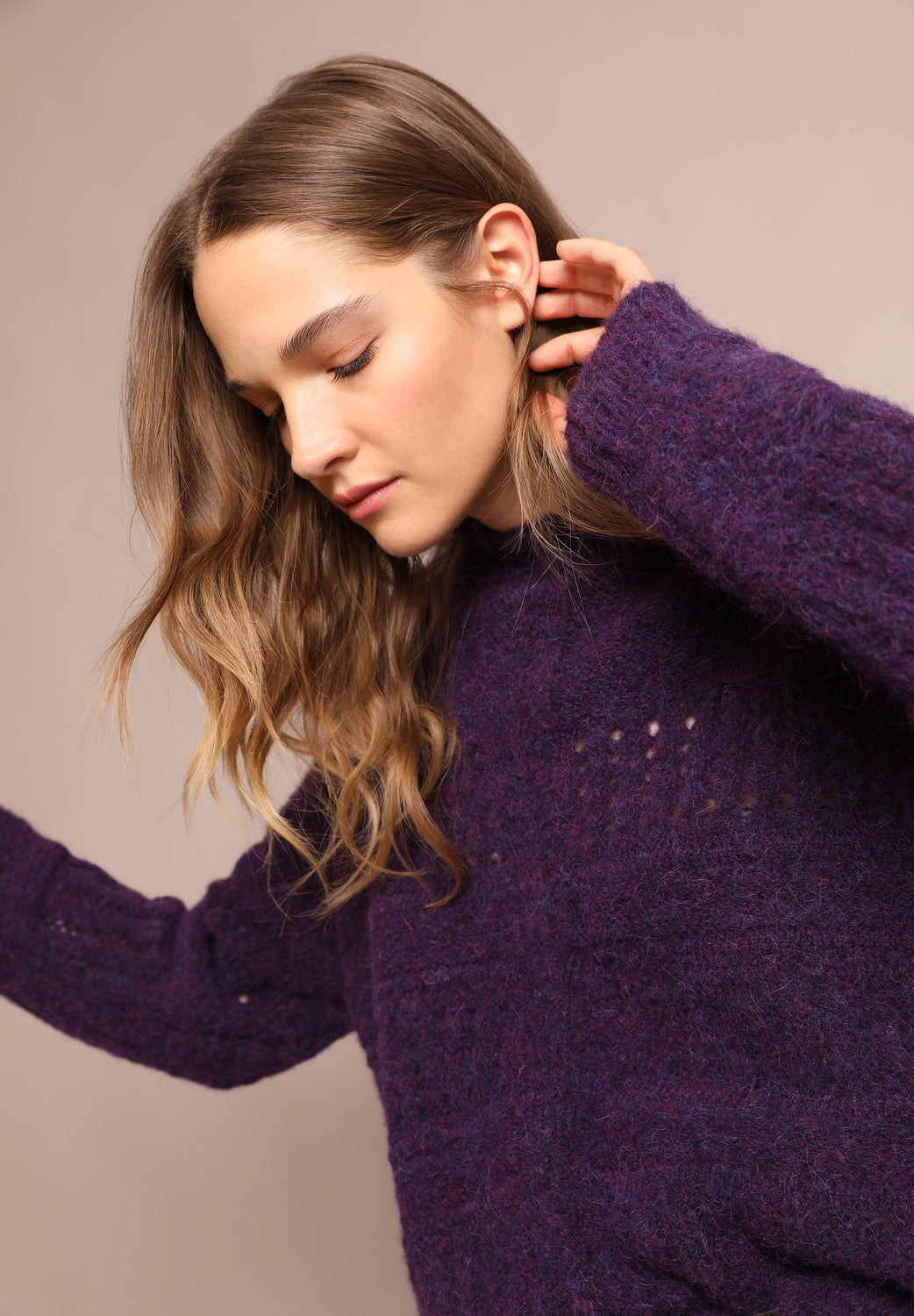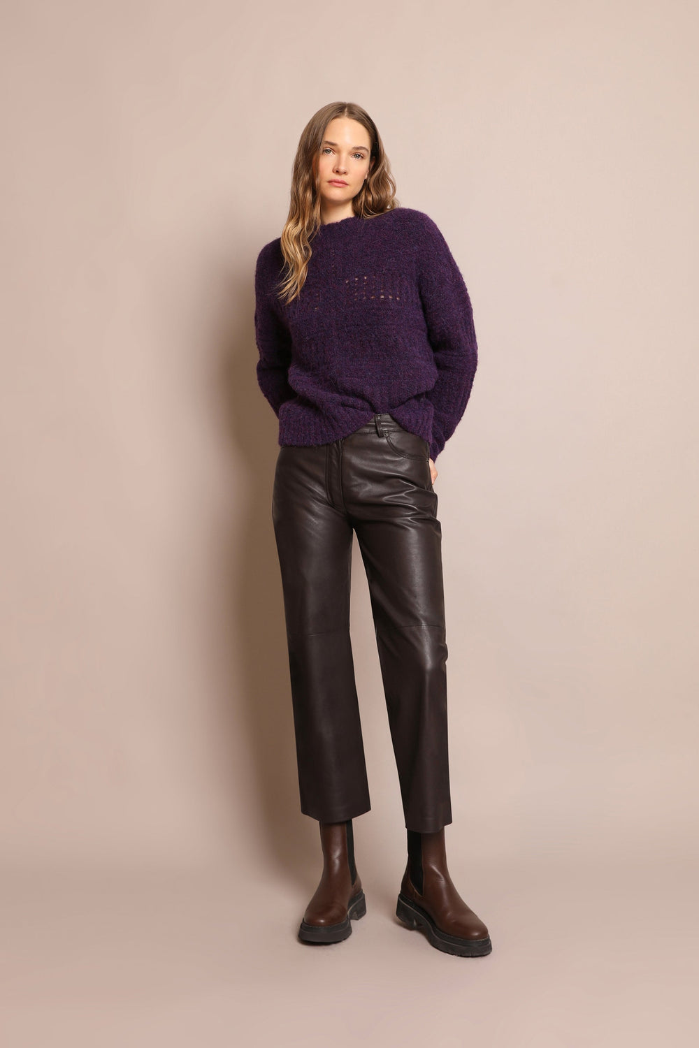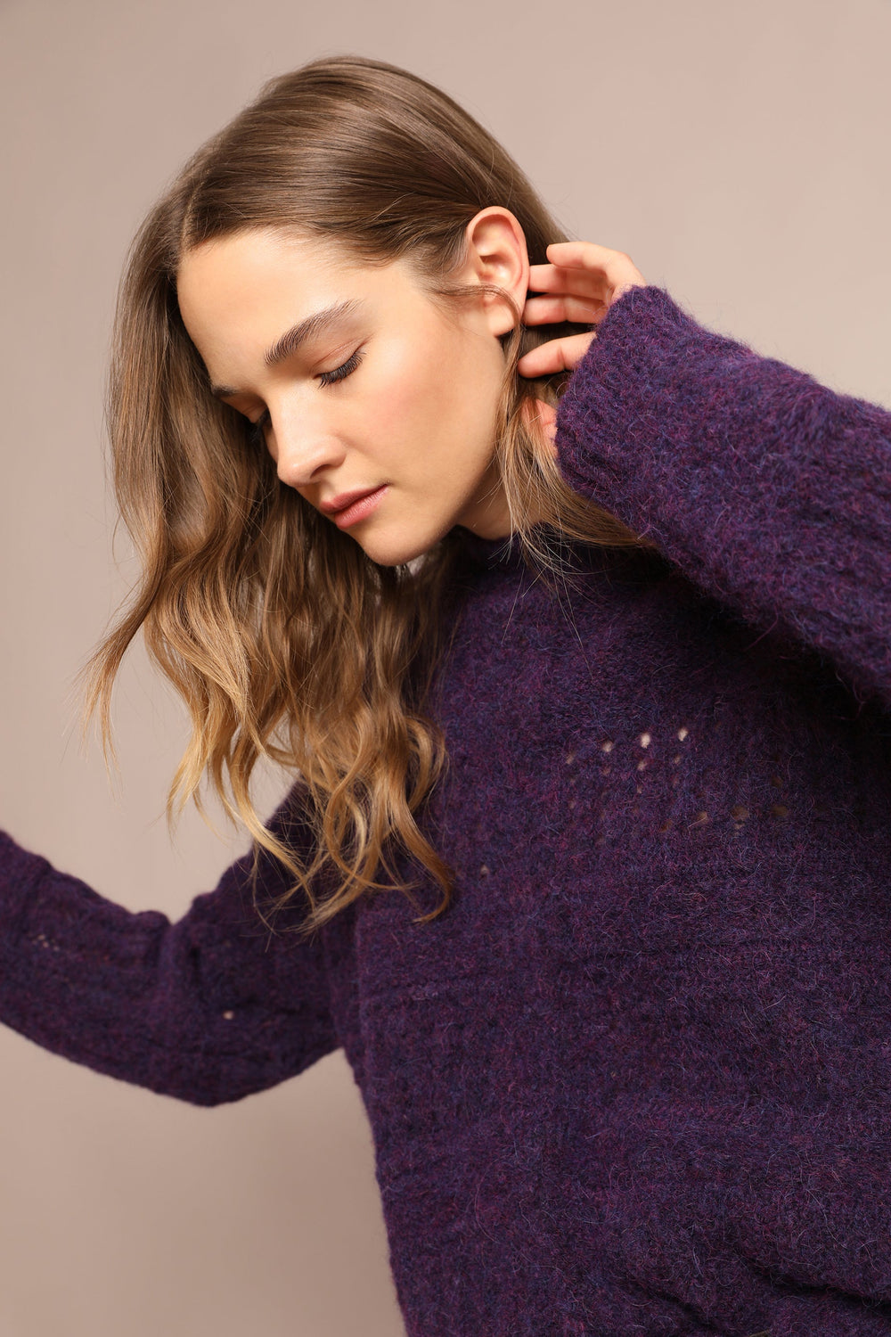 Sweater com pormenor de rendilhado confecionada em mistura de lã, alpaca e poliéster reciclado. Corte Regular Fit, decote redondo e manga comprida.