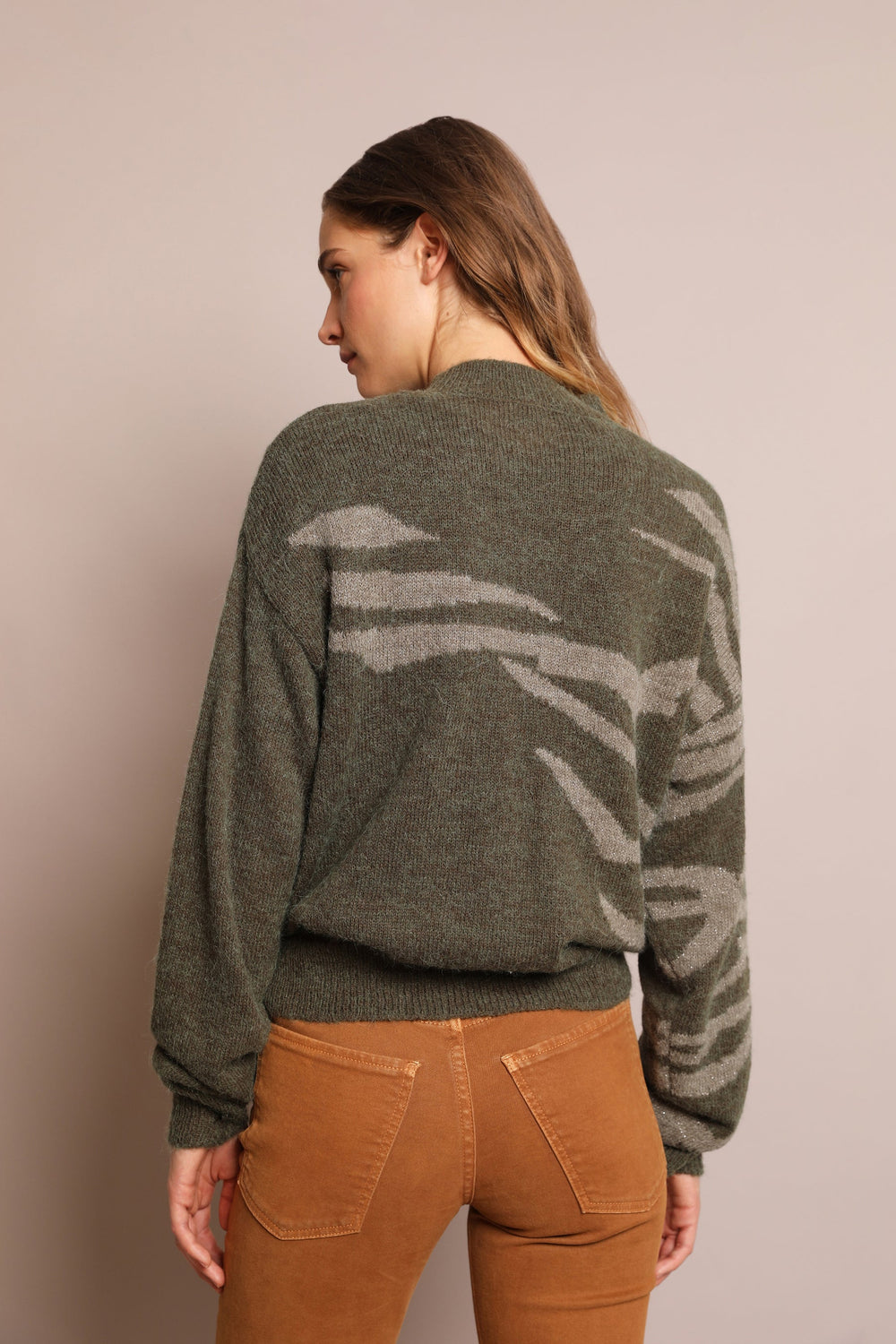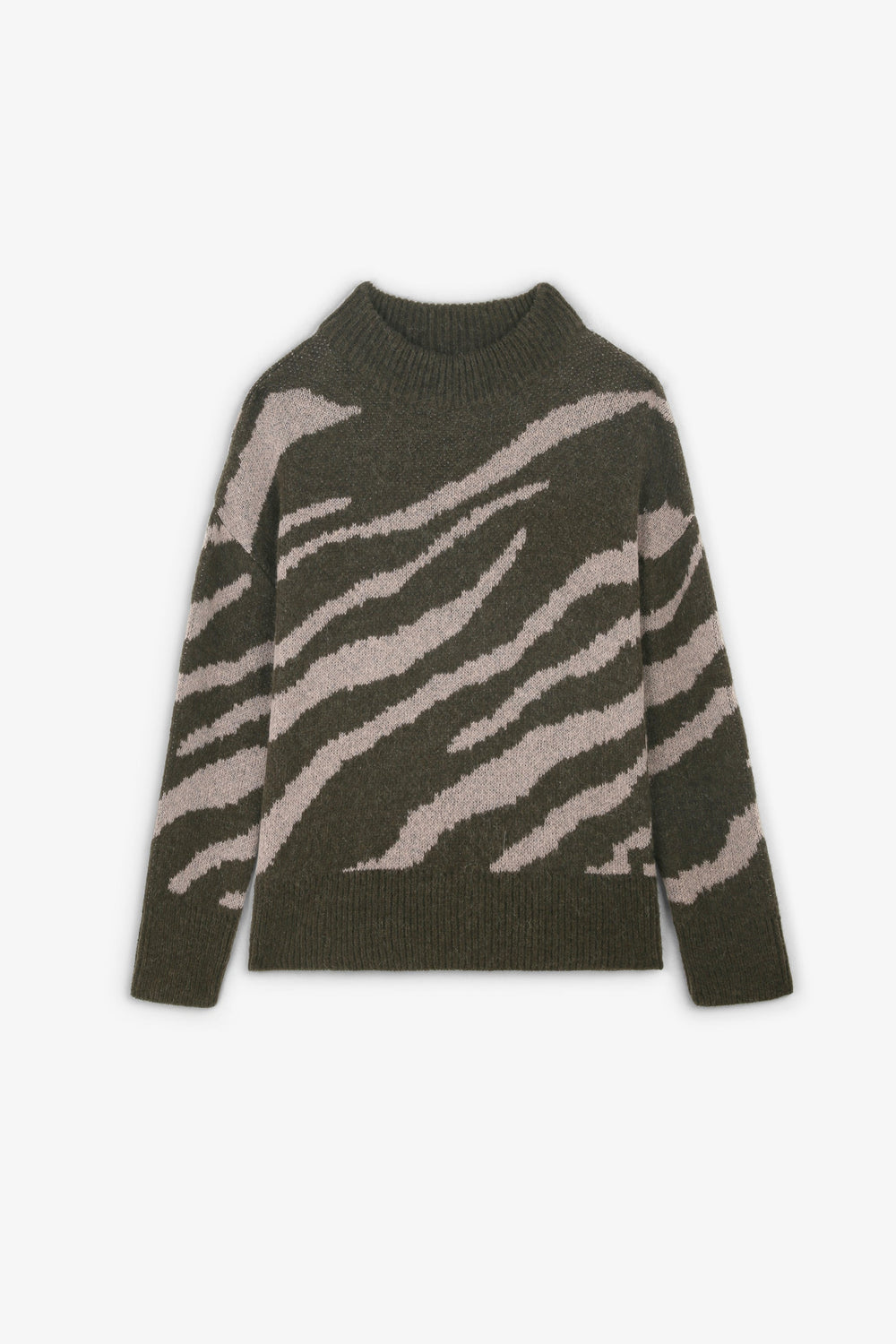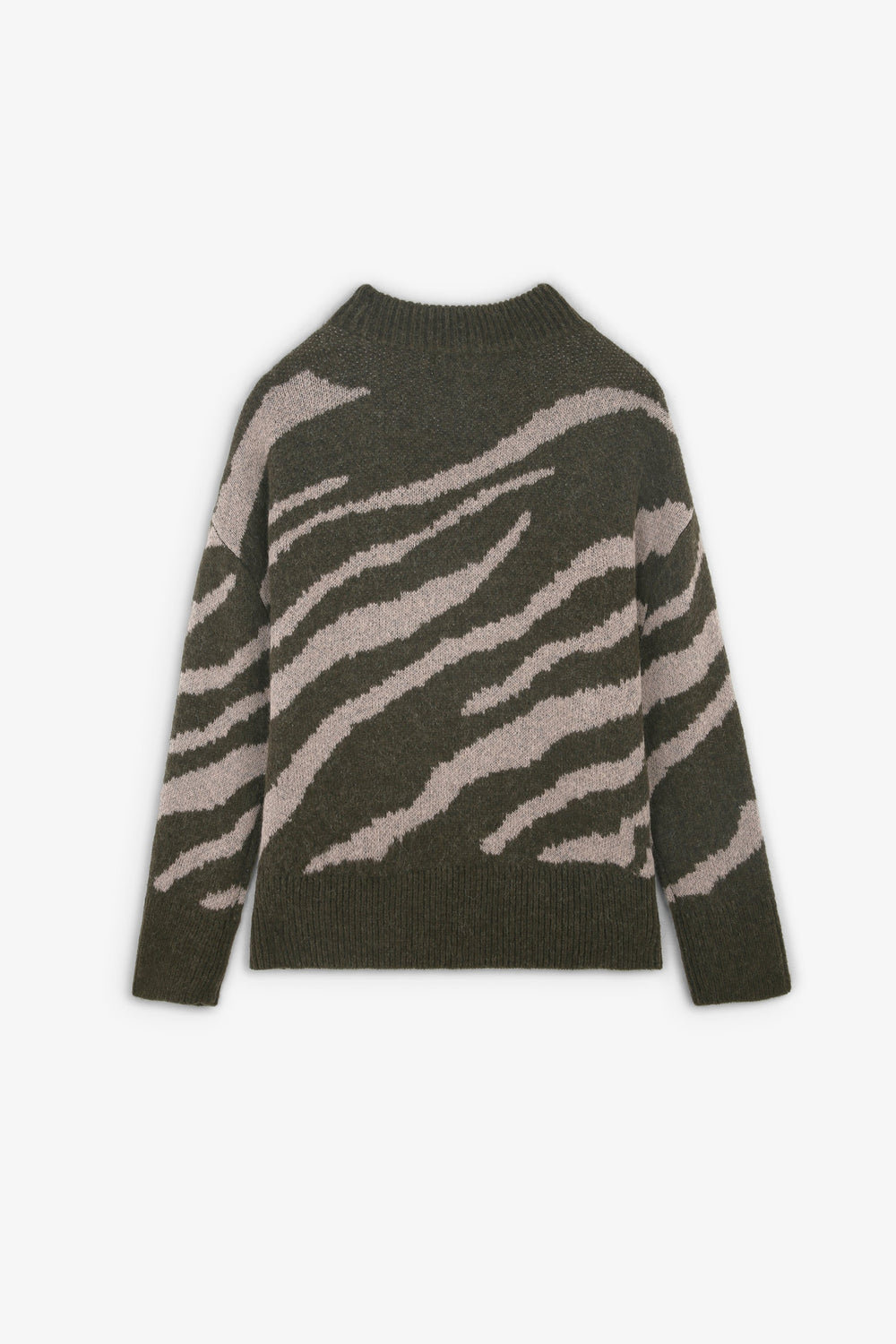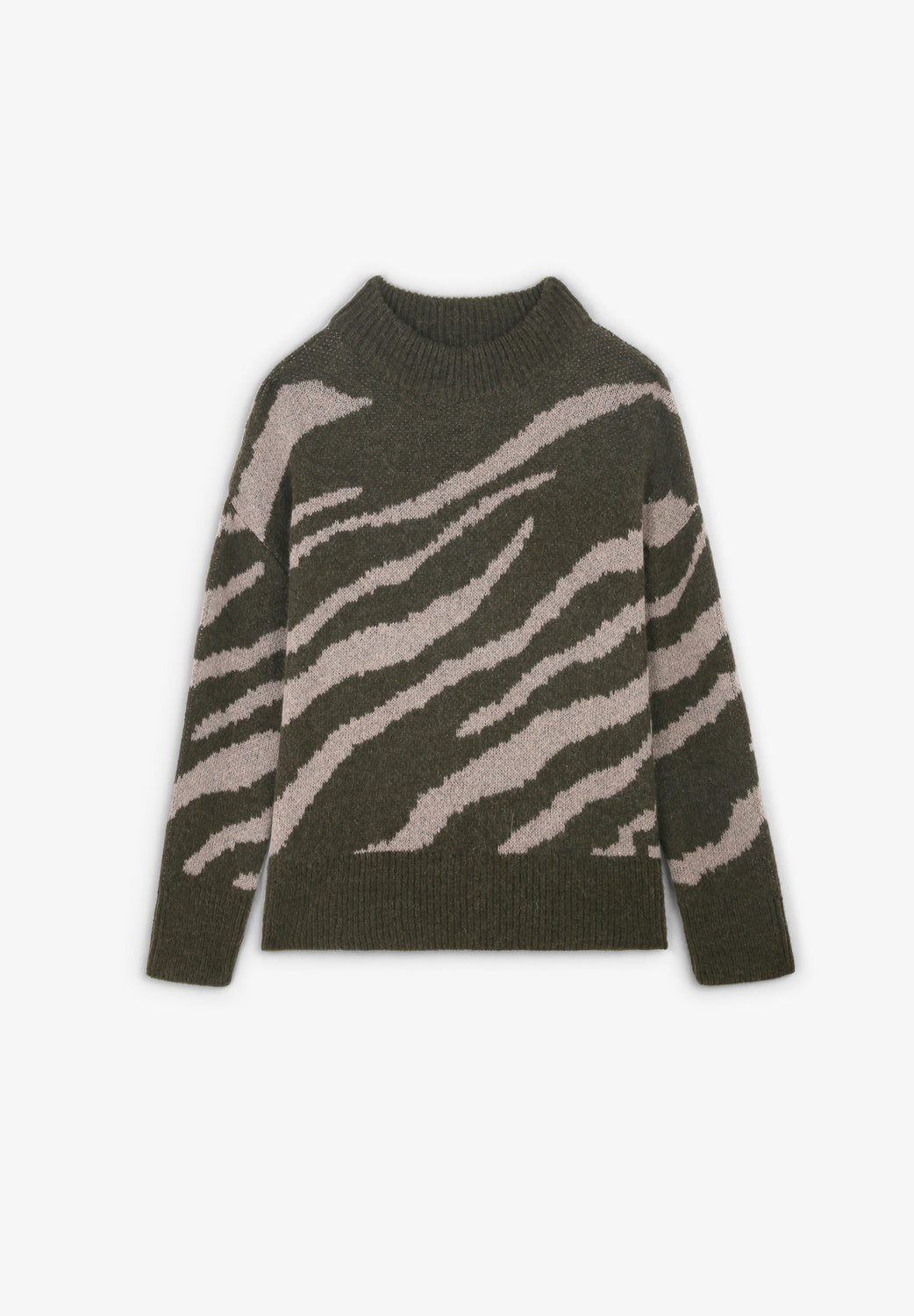 Sweater de malha com estampado fantasia animal confecionada em mistura de alpaca. Corte Regular Fit, gola ligeiramente subida e manga comprida.