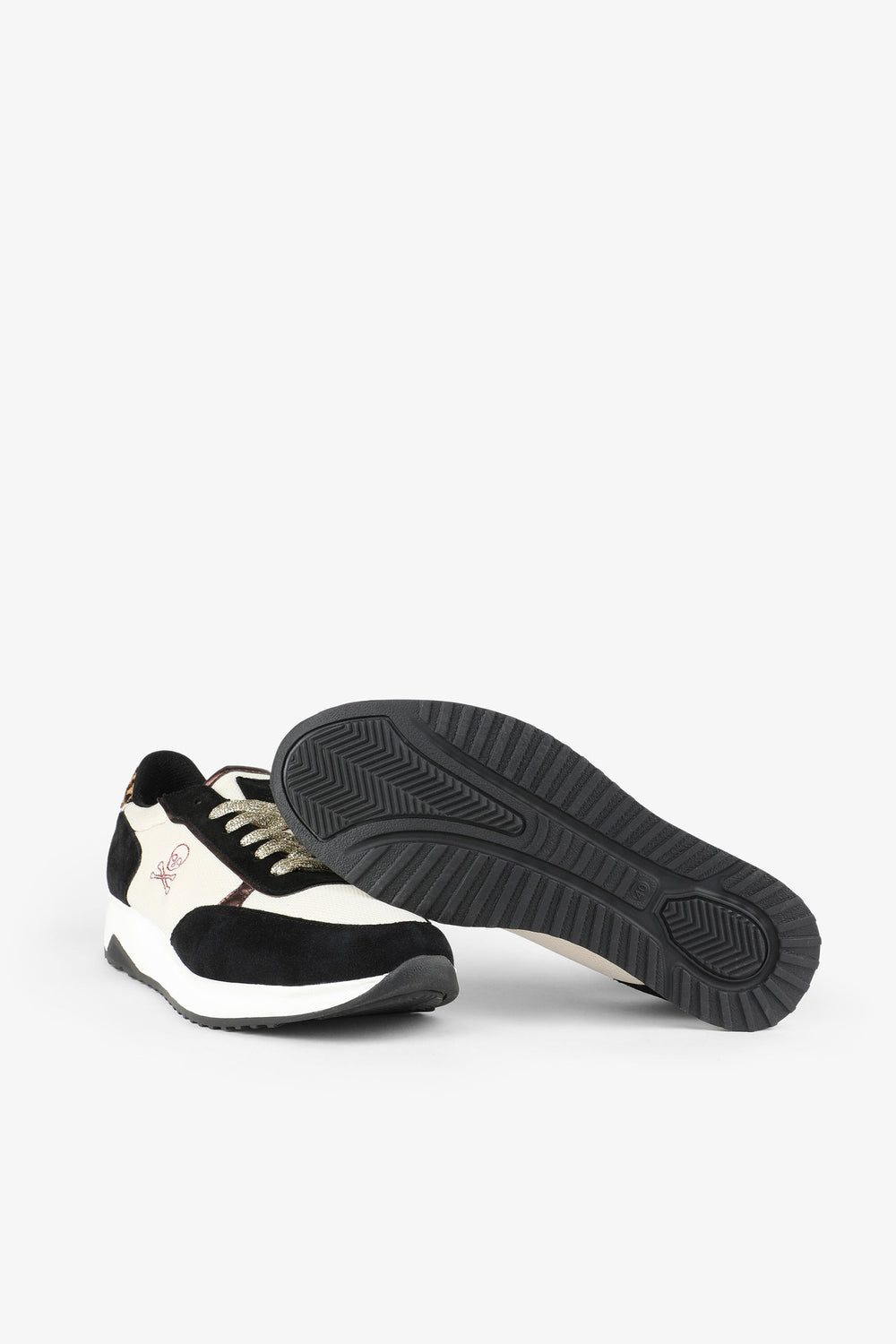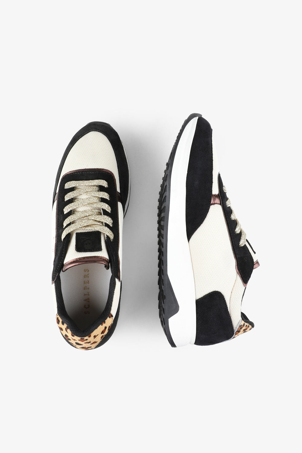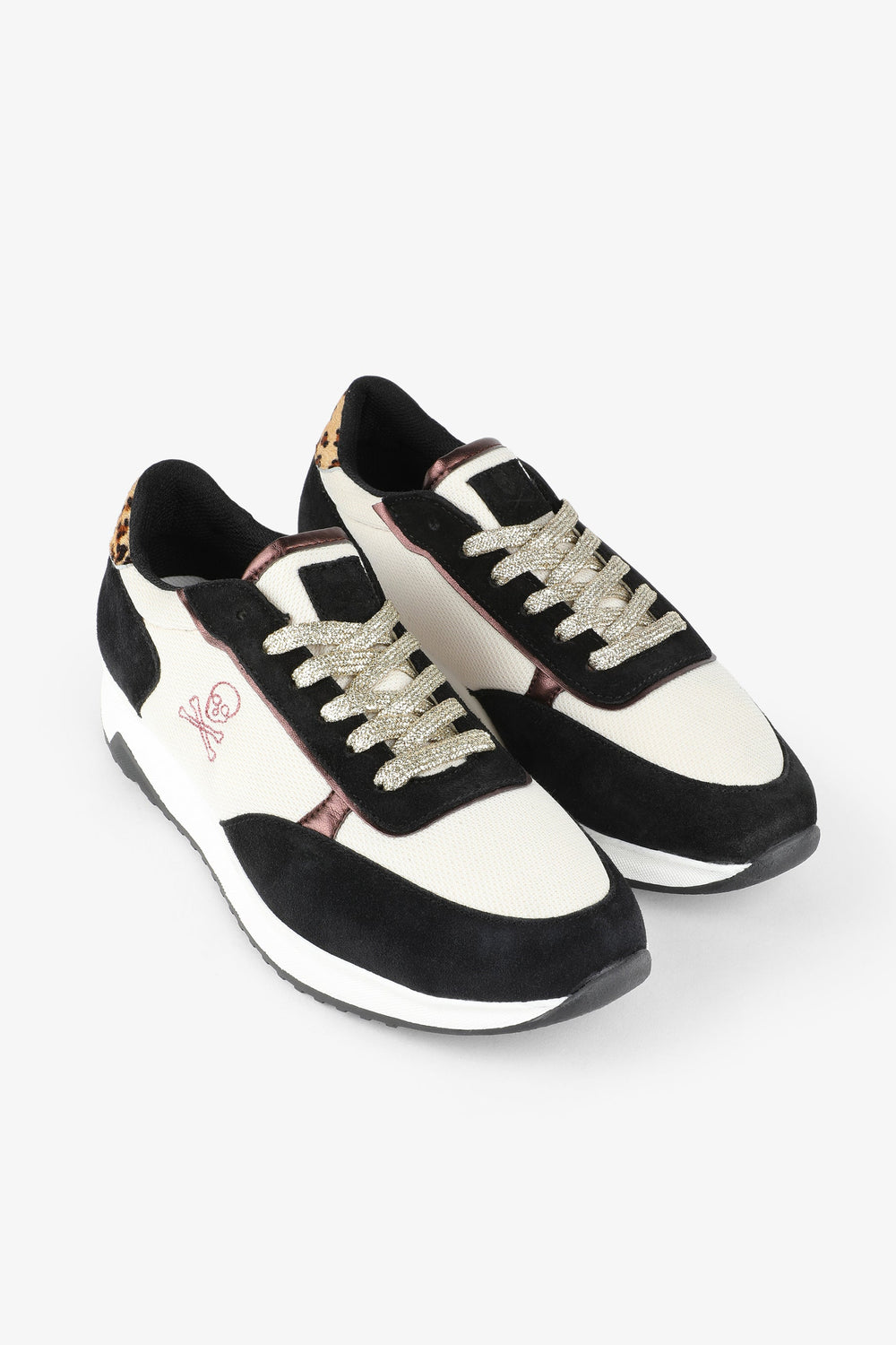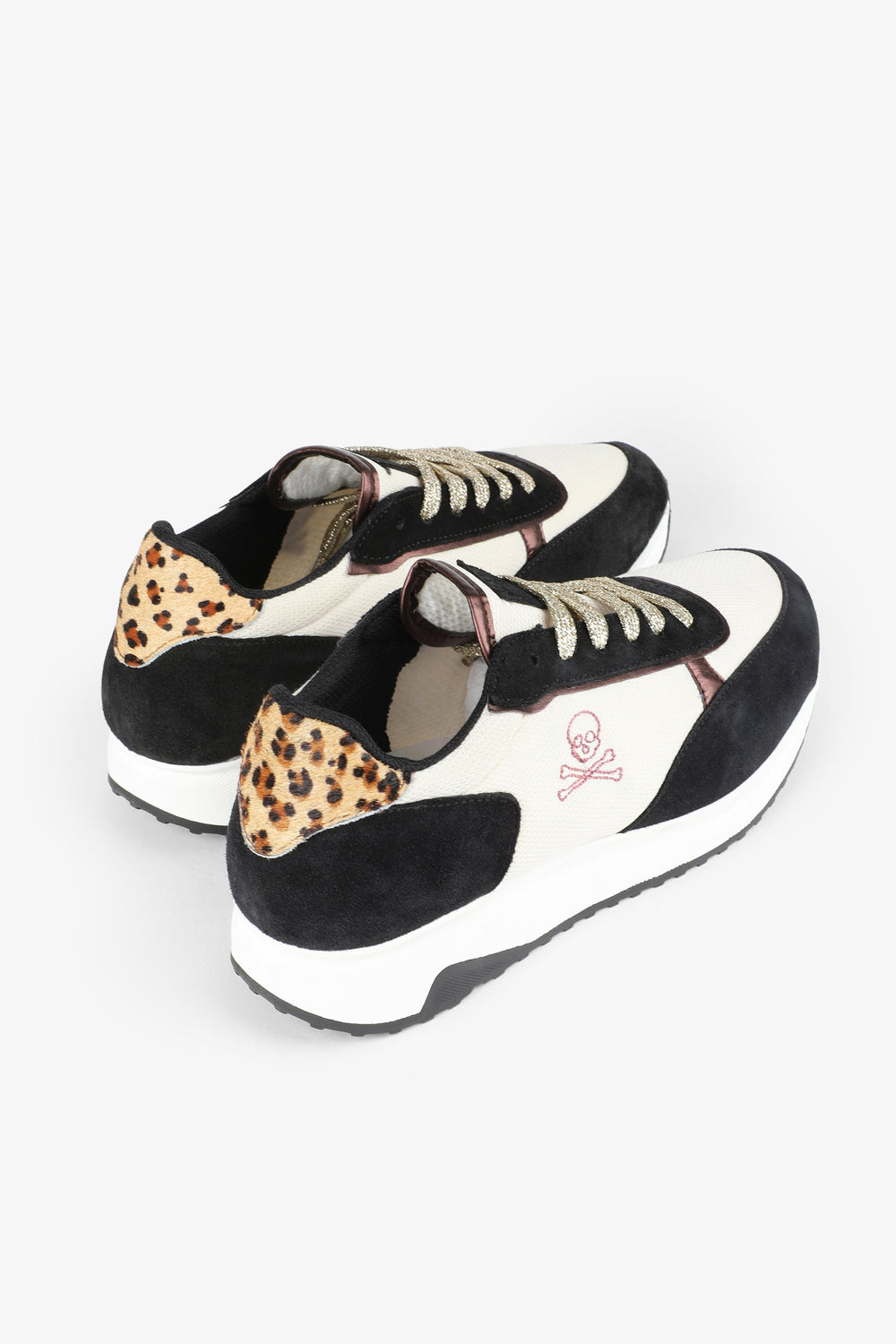 Sapatilhas com sola alta. Confecionadas com mistura de pele, fecho com cordões metalizados, tecido a contrastar como logótipo, ponta e calcanhar, ponta acabada em cauchu e pormenores de estampado animal Altura do tacão: 3 cm