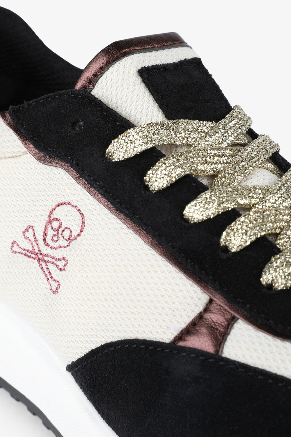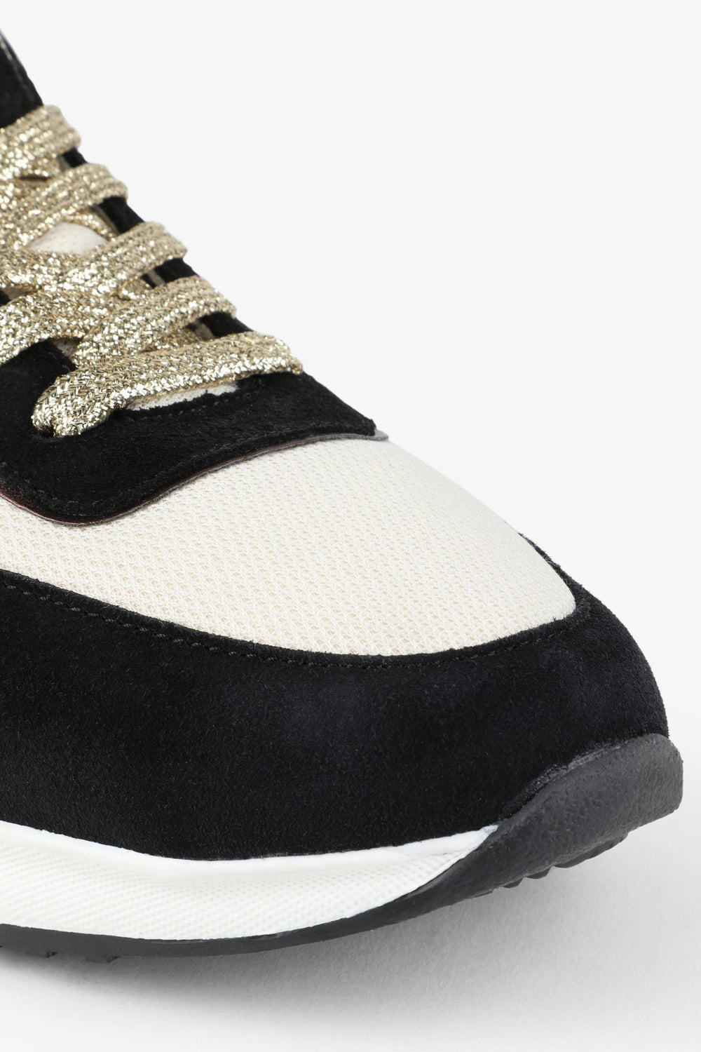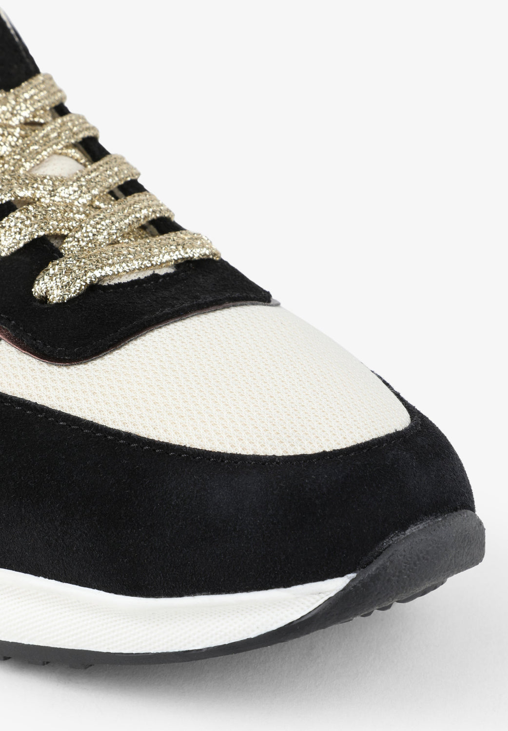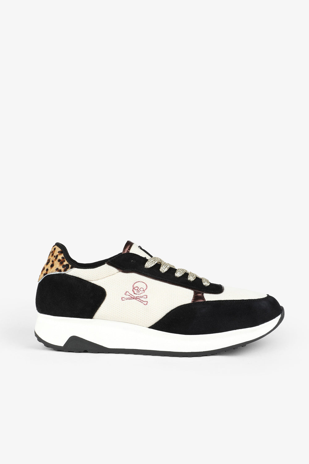 Sapatilhas com sola alta. Confecionadas com mistura de pele, fecho com cordões metalizados, tecido a contrastar como logótipo, ponta e calcanhar, ponta acabada em cauchu e pormenores de estampado animal Altura do tacão: 3 cm