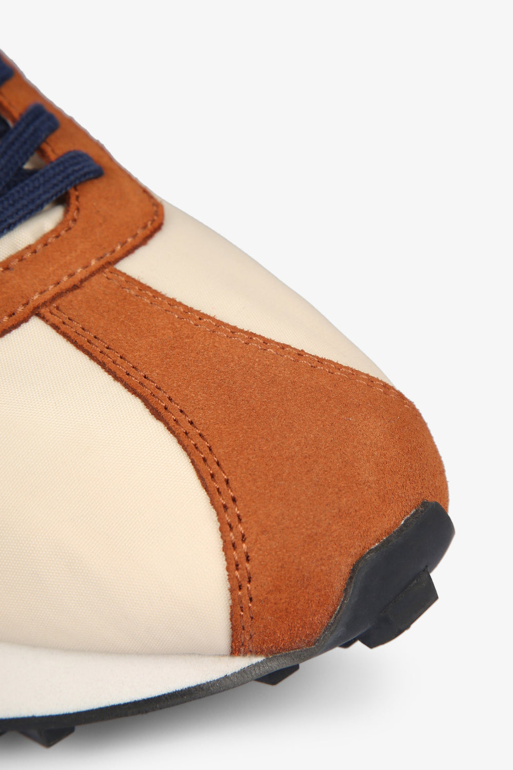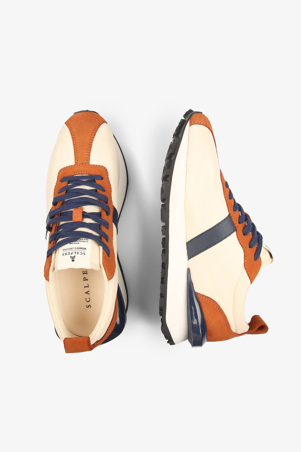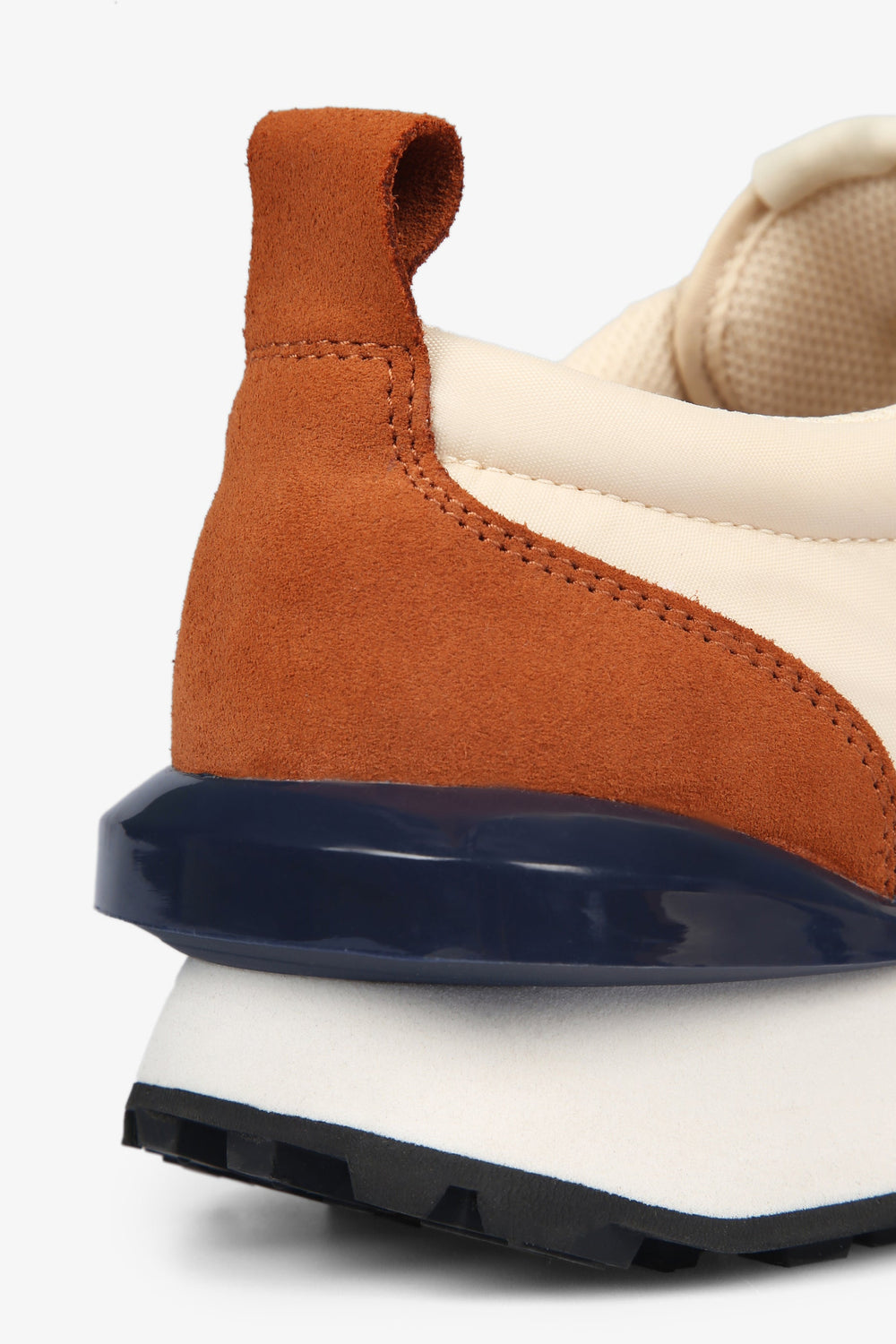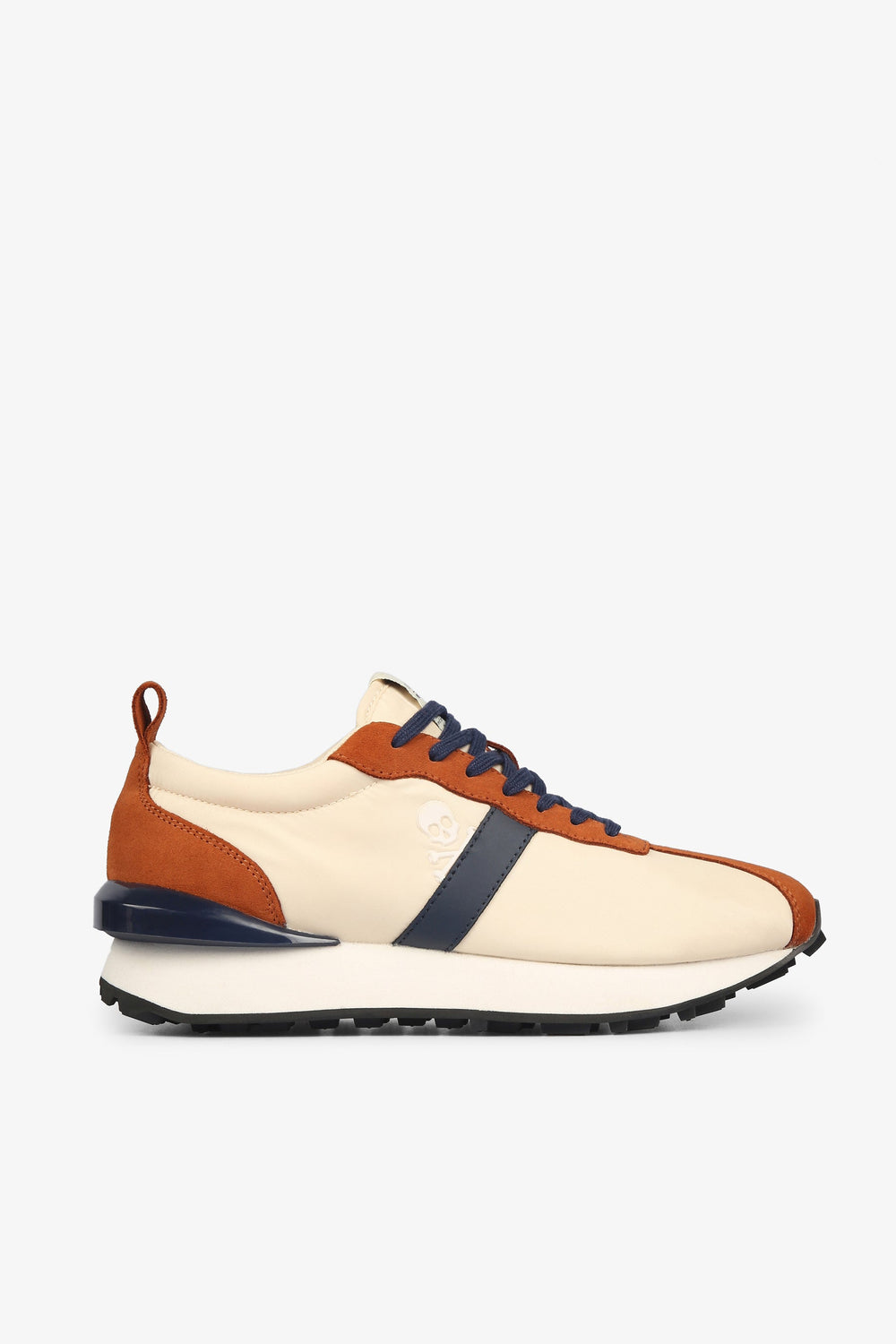 Sapatilhas multicolores confecionadas em pele com acabamento em croute. Fecho com cordões, puxador traseiro e língua com etiqueta. Sola de cauchu e pormenor de estabilizador pronunciado atrás.