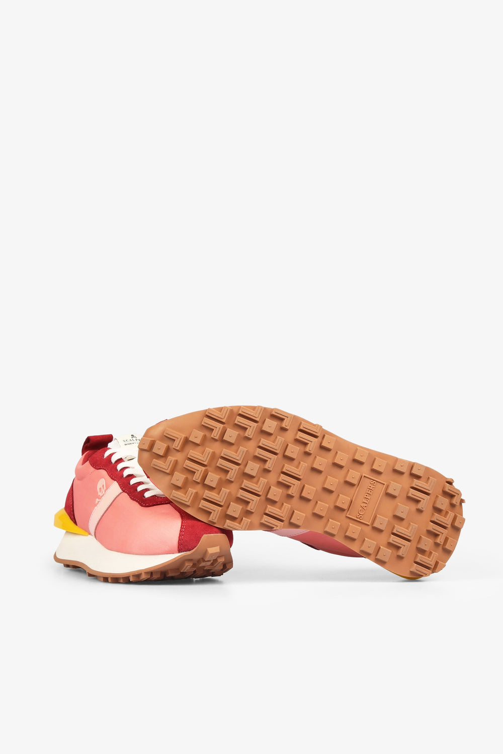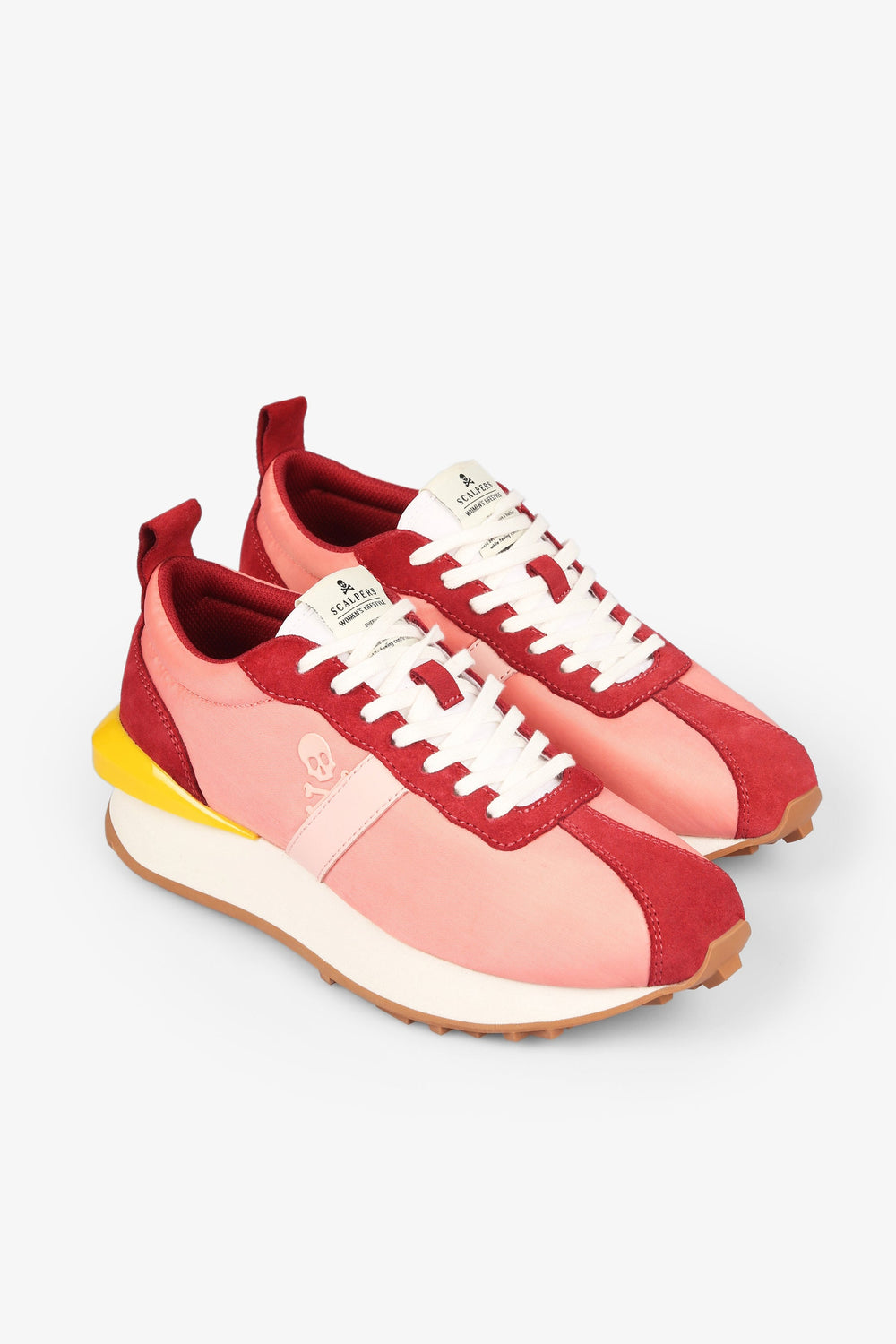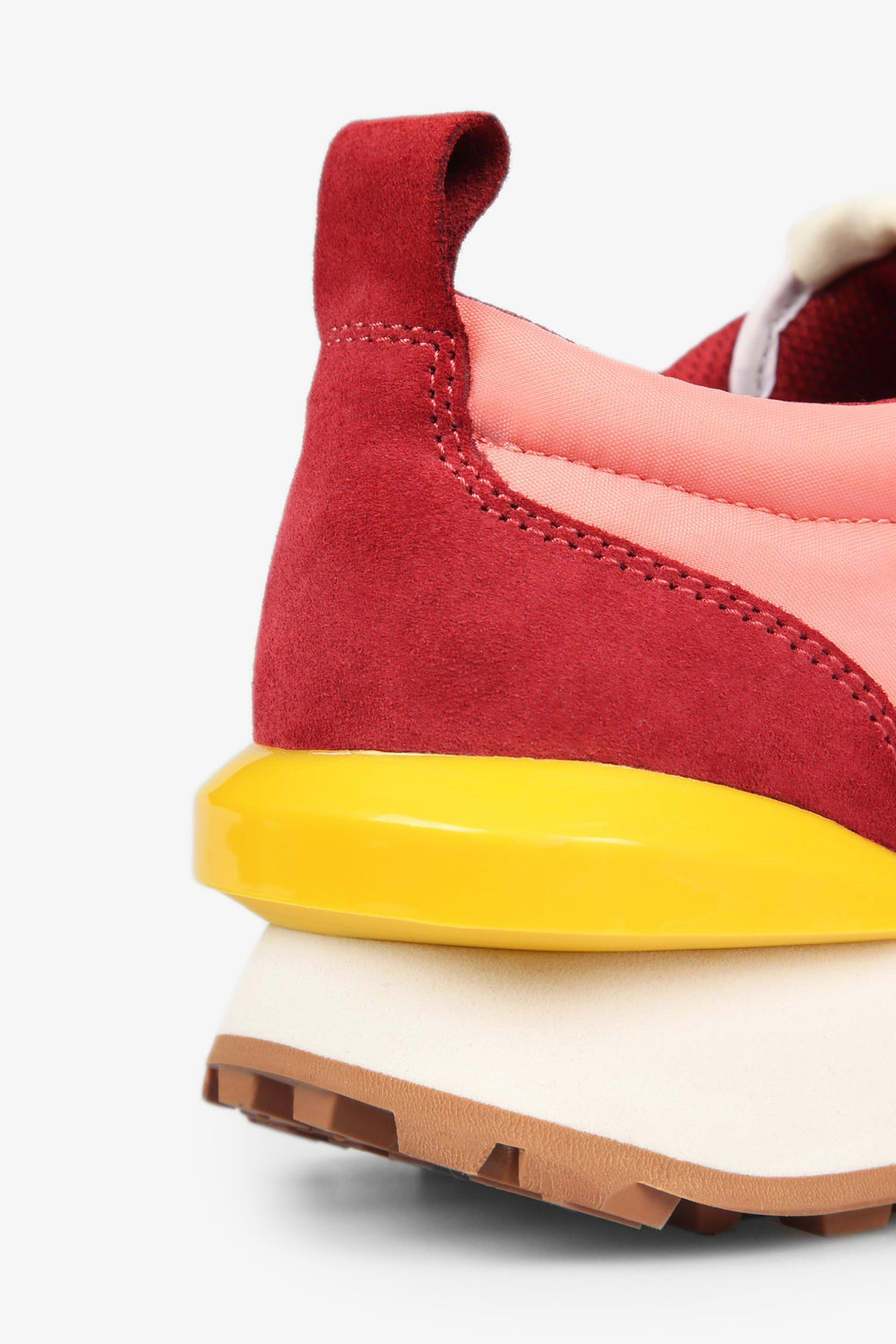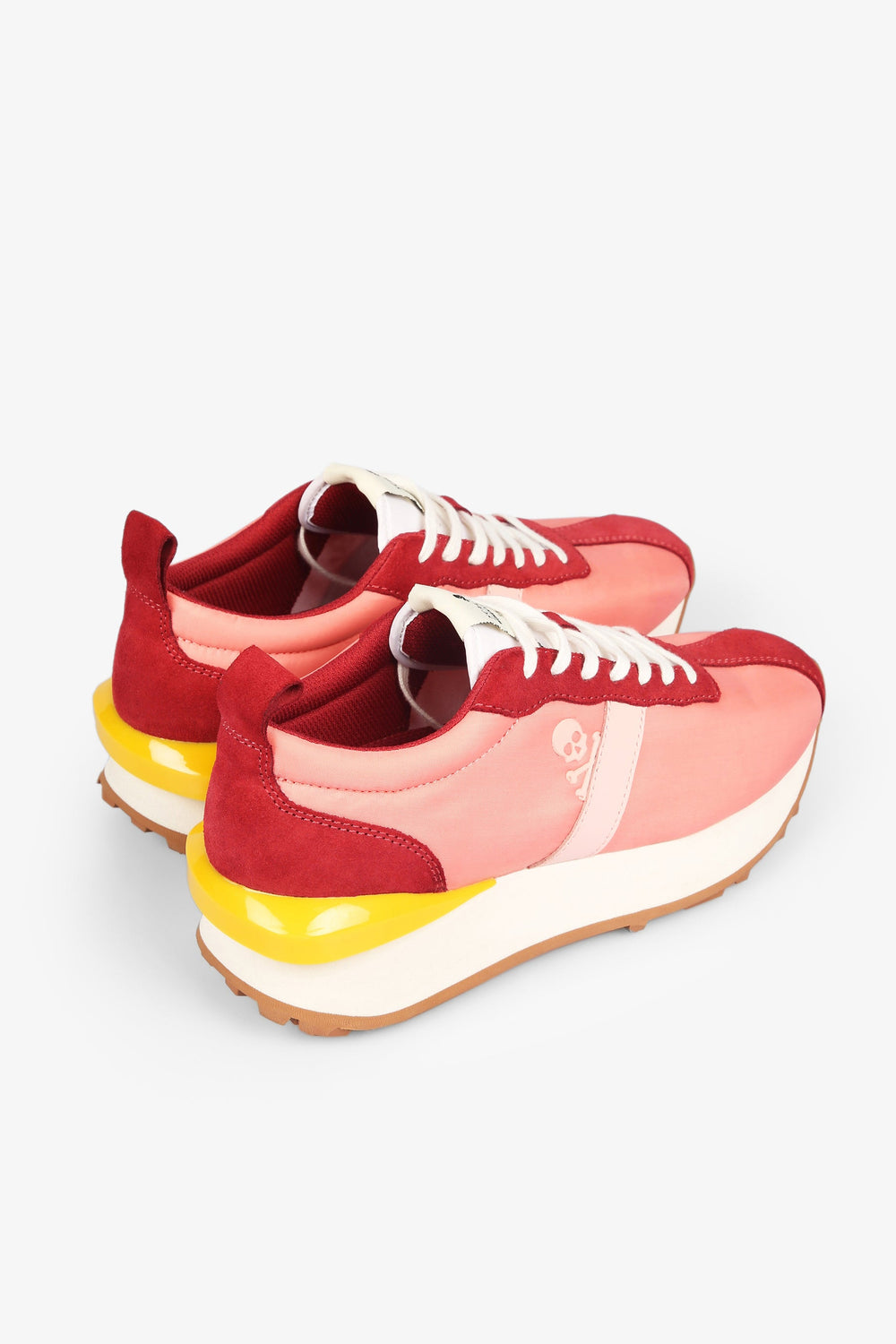 Sapatilhas multicolores confecionadas em pele com acabamento em croute. Fecho com cordões, puxador traseiro e língua com etiqueta. Sola de cauchu e pormenor de estabilizador pronunciado atrás.