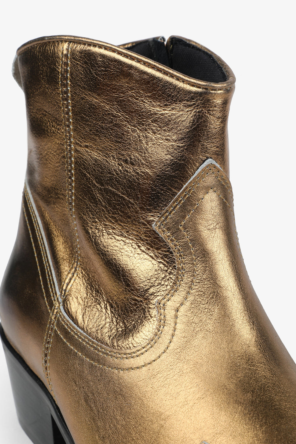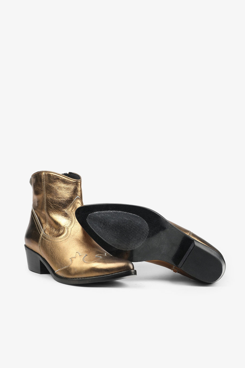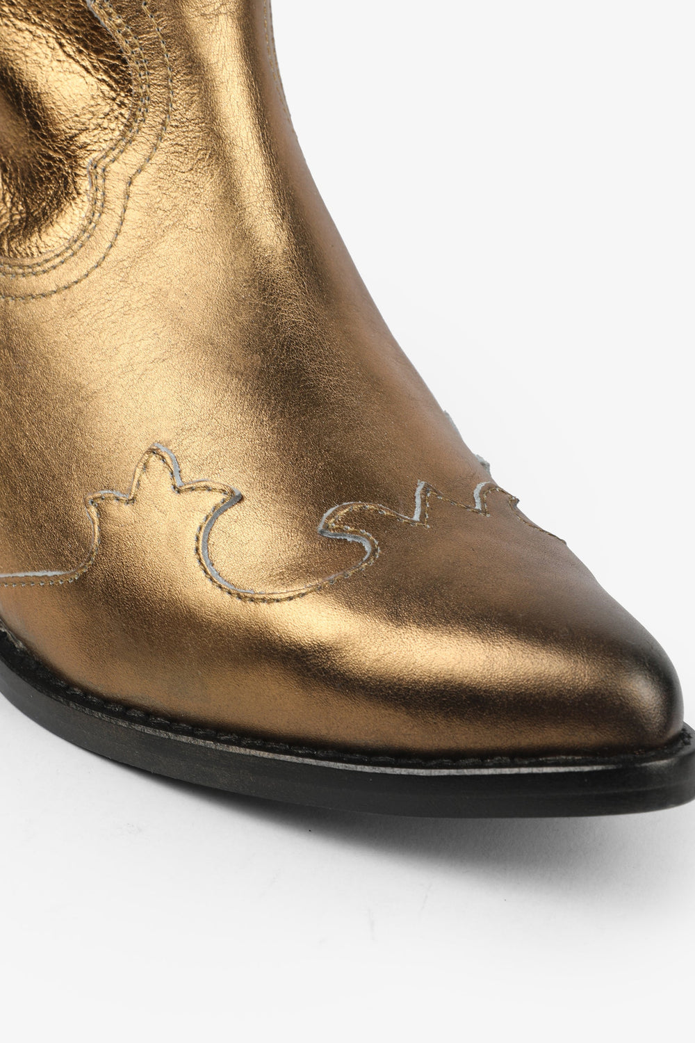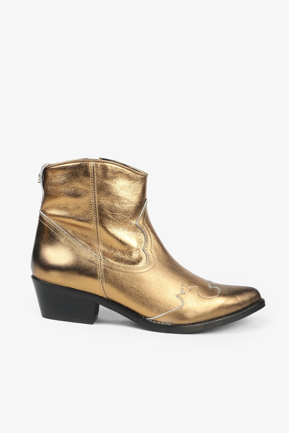 Botim cowboy, confecionado 100% em pele de bovino, fecho com zip na parte interna, bicudo e com pormenores de pespontos.