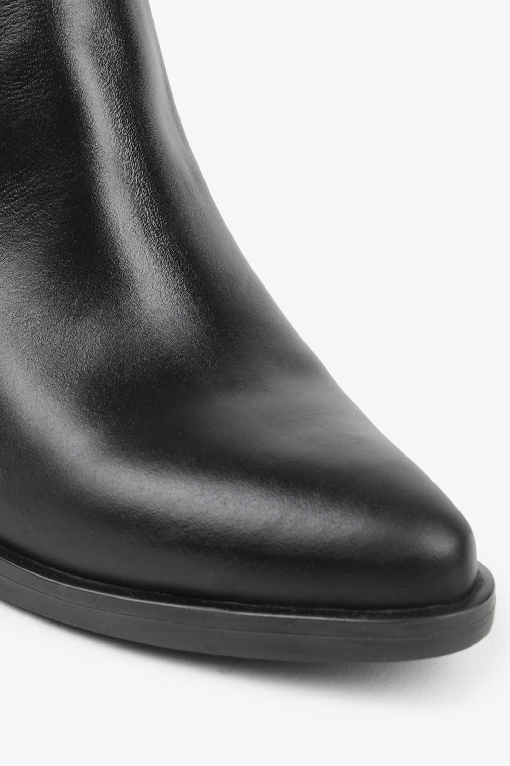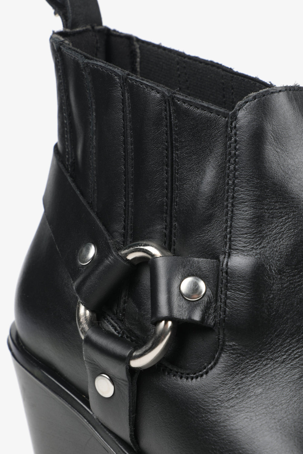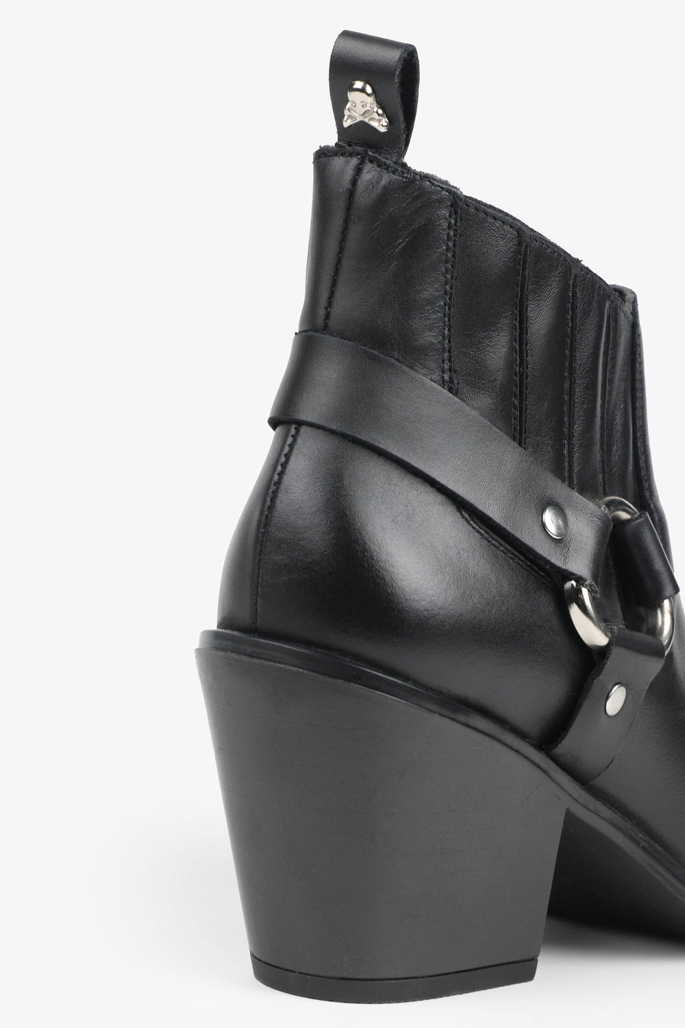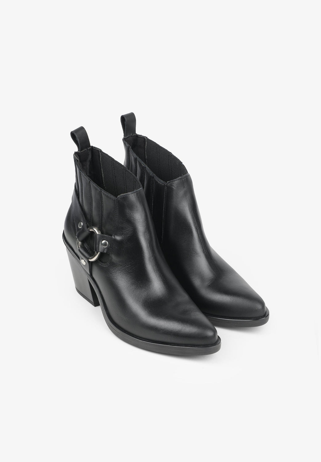 Botim com aro de metal. Confecionado em 100% pele, fecho elástico, acabado em biqueira arredondada e aro de metal lateral. Altura do tacão: 8 cm/Altura do cano: 10,5 cm