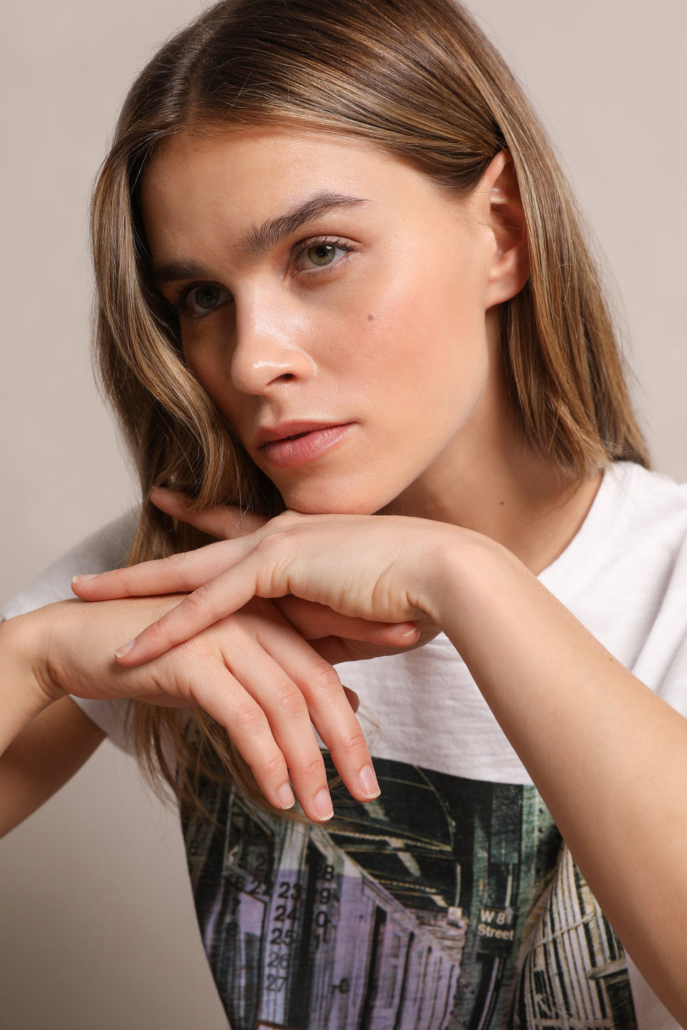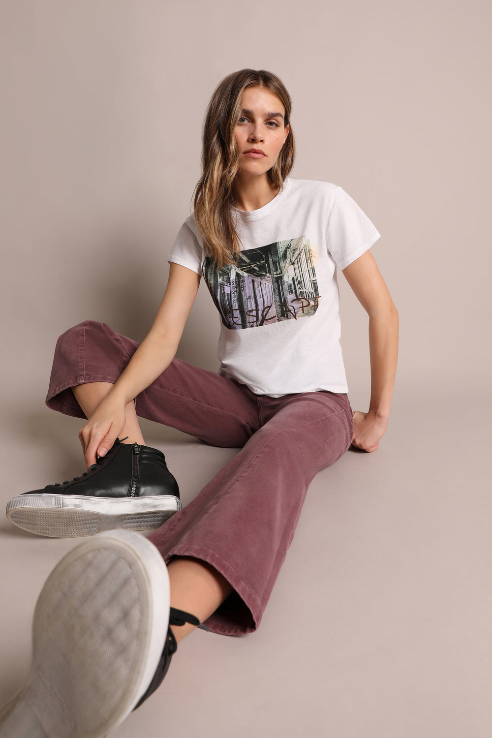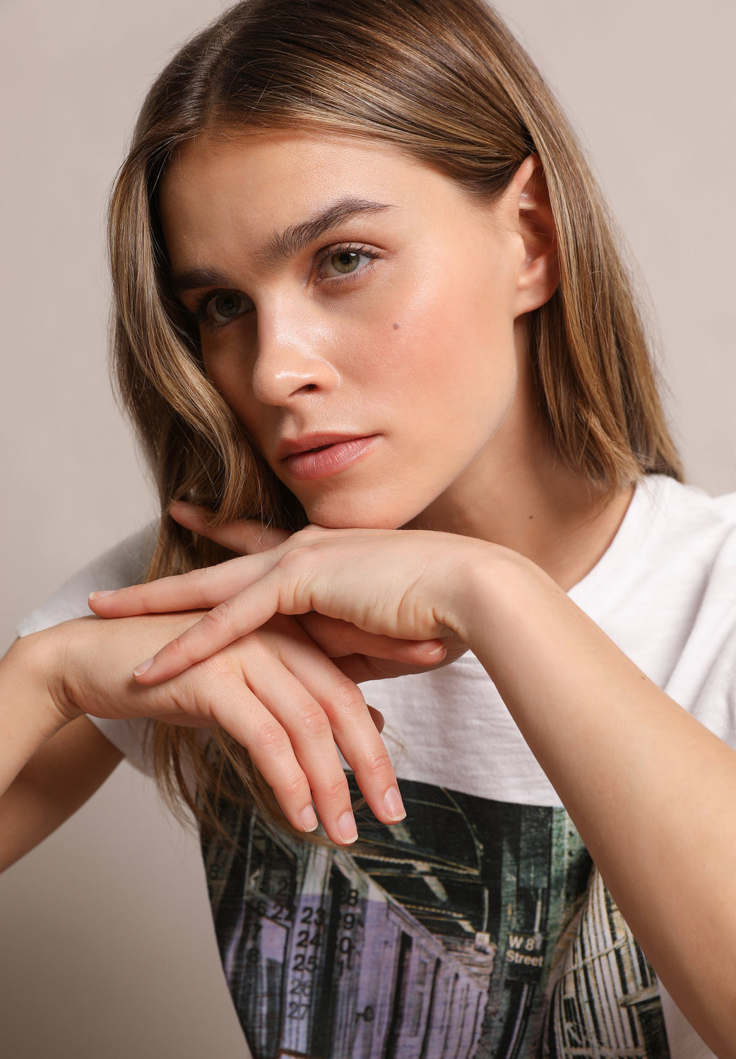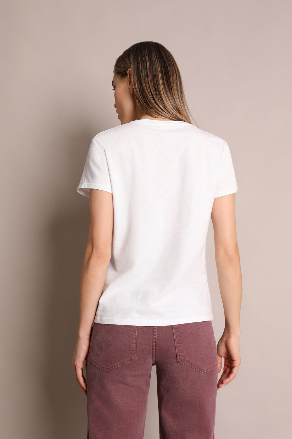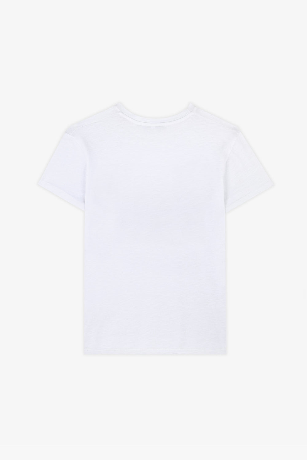 T-shirt com padrão de foto à frente. Confecionada em 100% algodão orgânico, corte Regular Fit, decote redondo e manga curta.