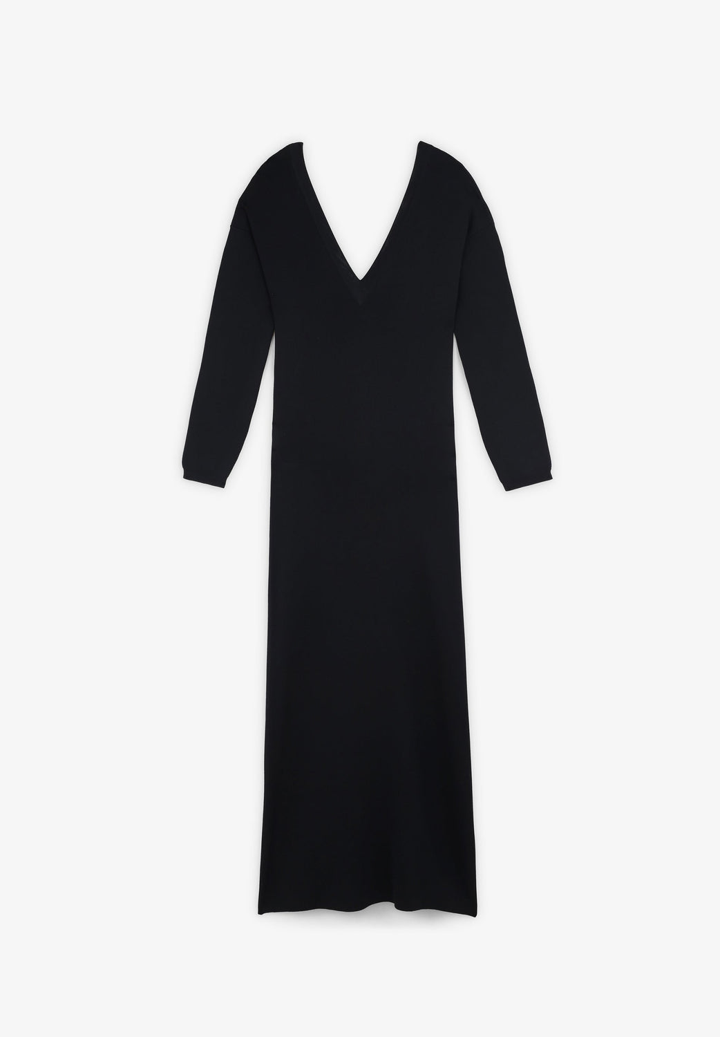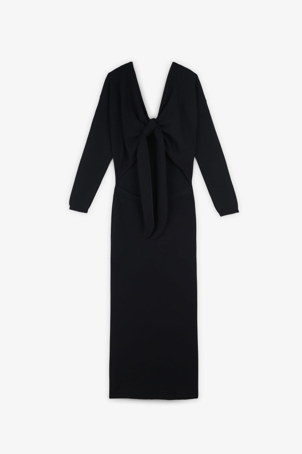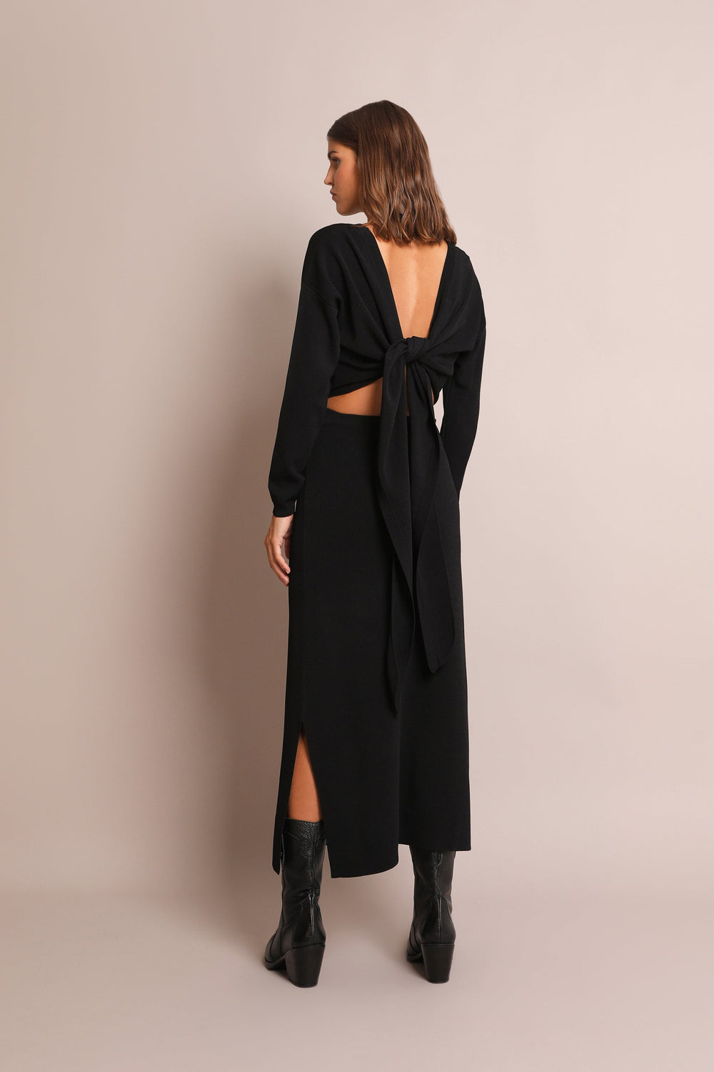 Vestido com multiposição confecionado em malha. Corte Slim Fit, decote em bico e manga comprida. Laçada traseira.