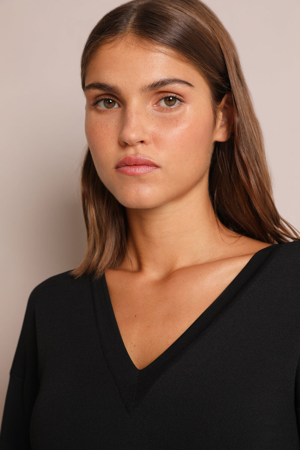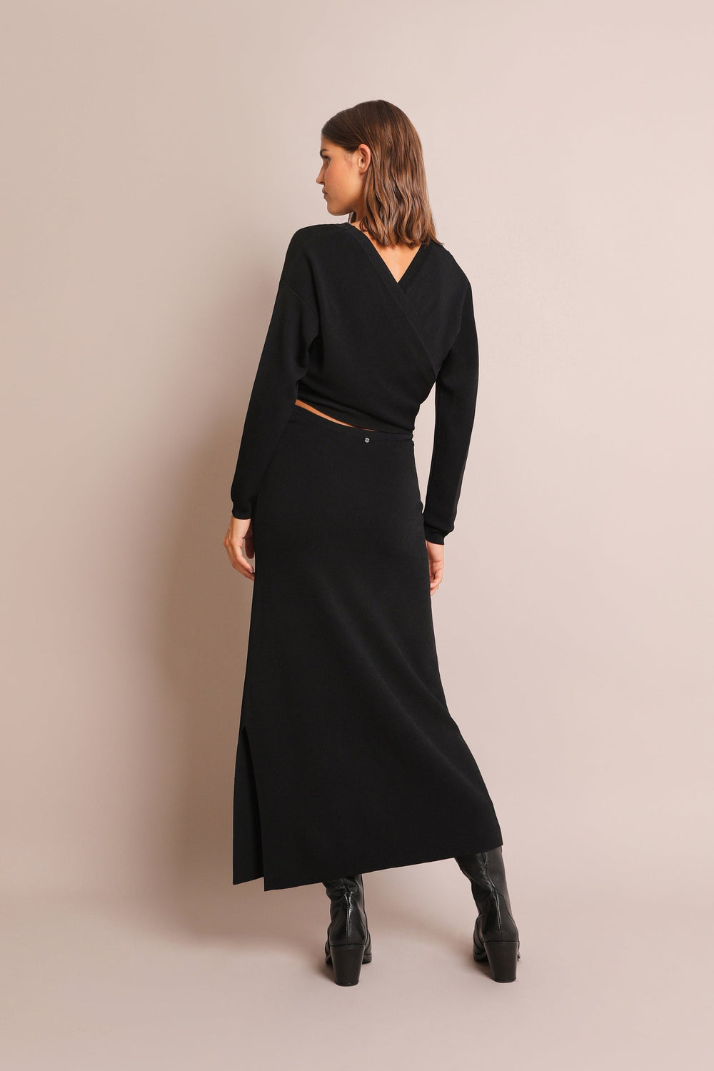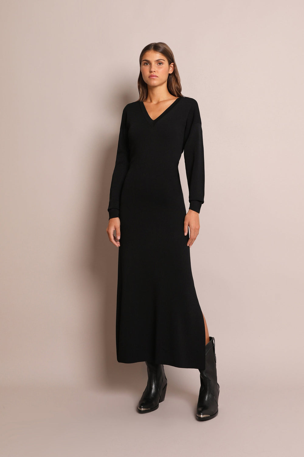 Vestido com multiposição confecionado em malha. Corte Slim Fit, decote em bico e manga comprida. Laçada traseira.