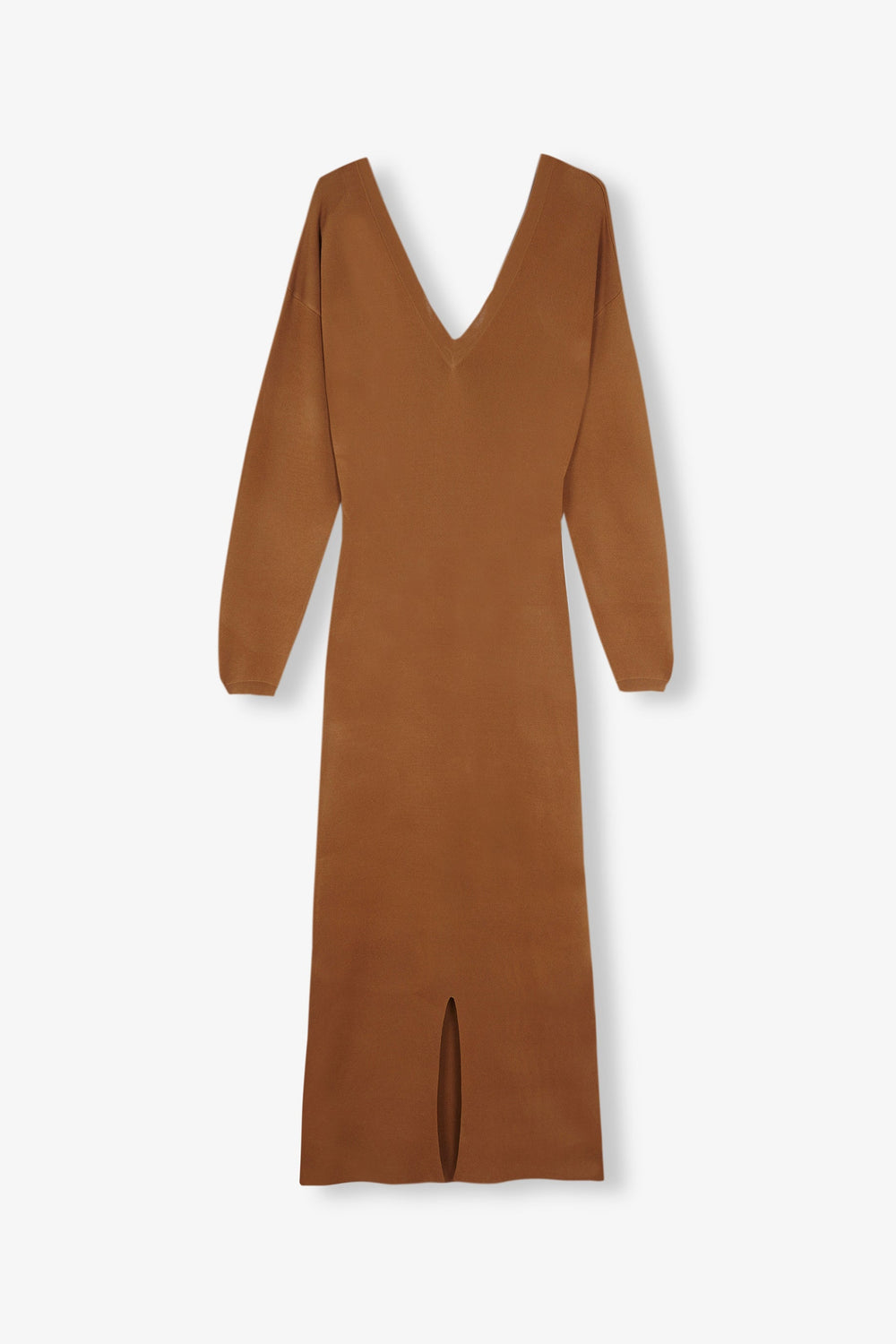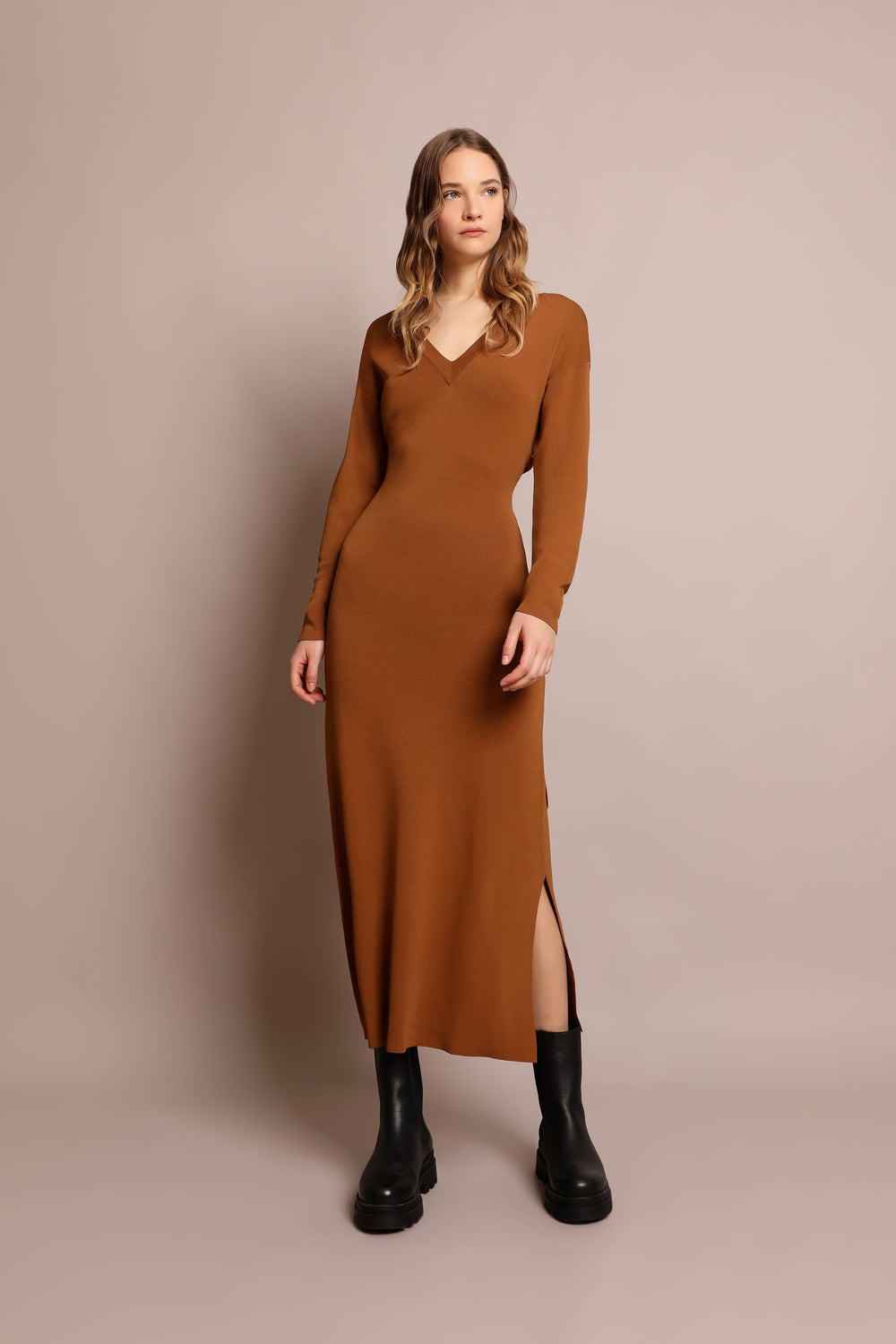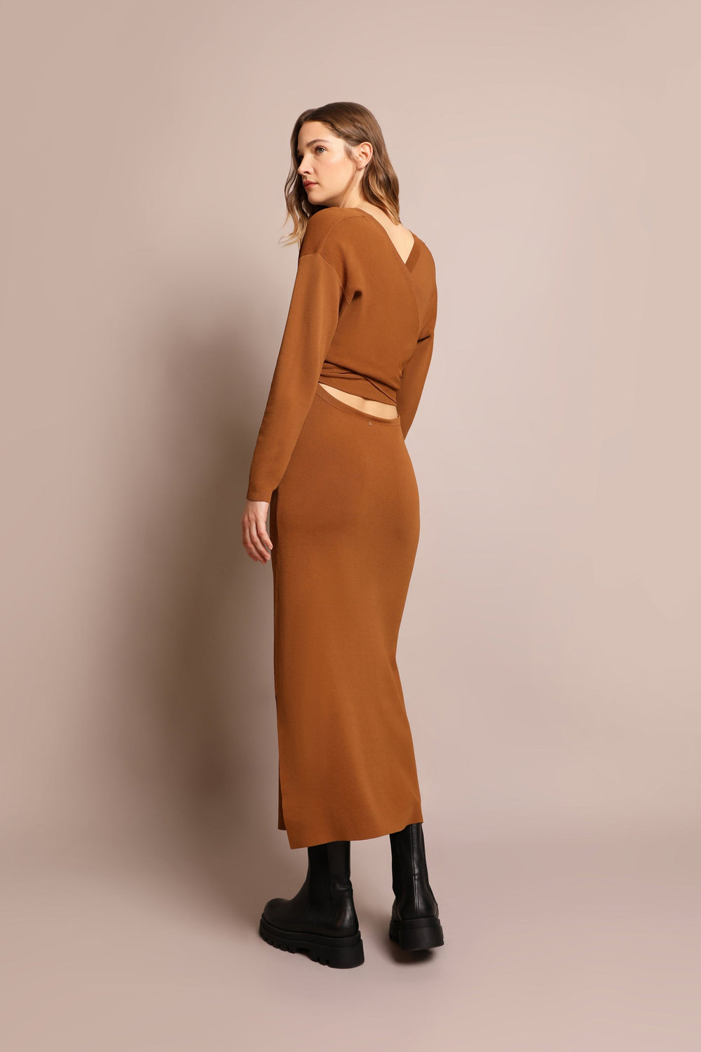 Vestido com multiposição confecionado em malha. Corte Slim Fit, decote em bico e manga comprida. Laçada traseira.