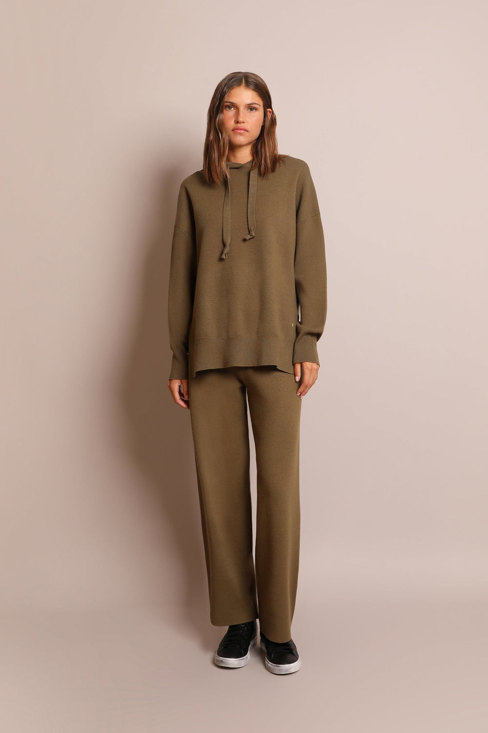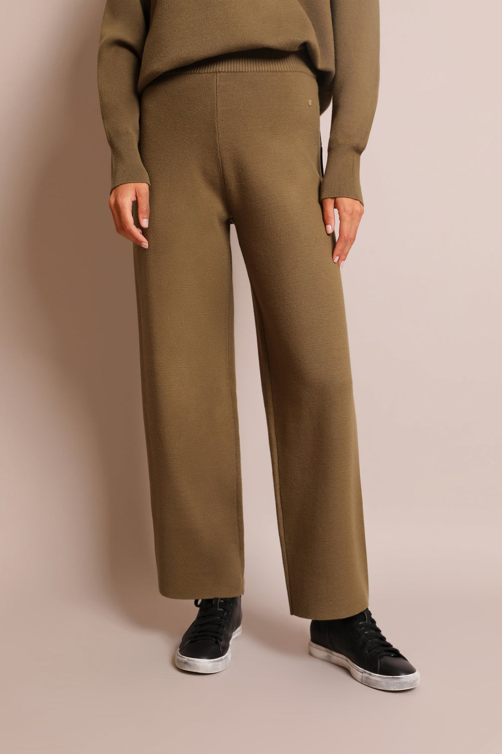 Calças jogger confecionadas em malha. Corte Regular Fit, cós de nervuras e pormenor de logo.