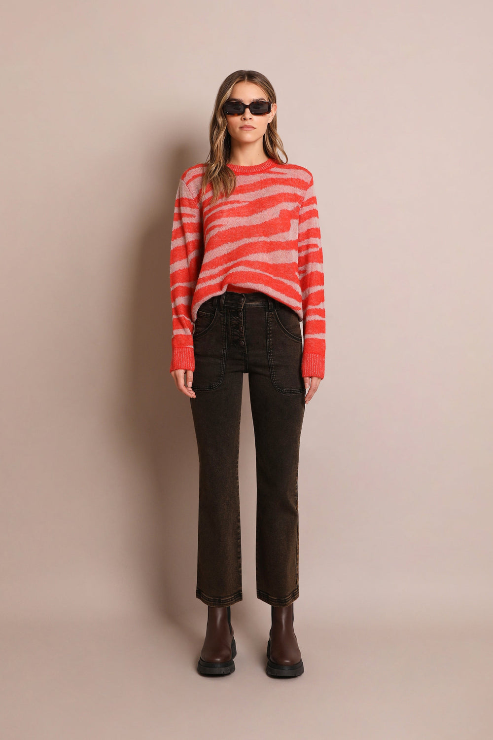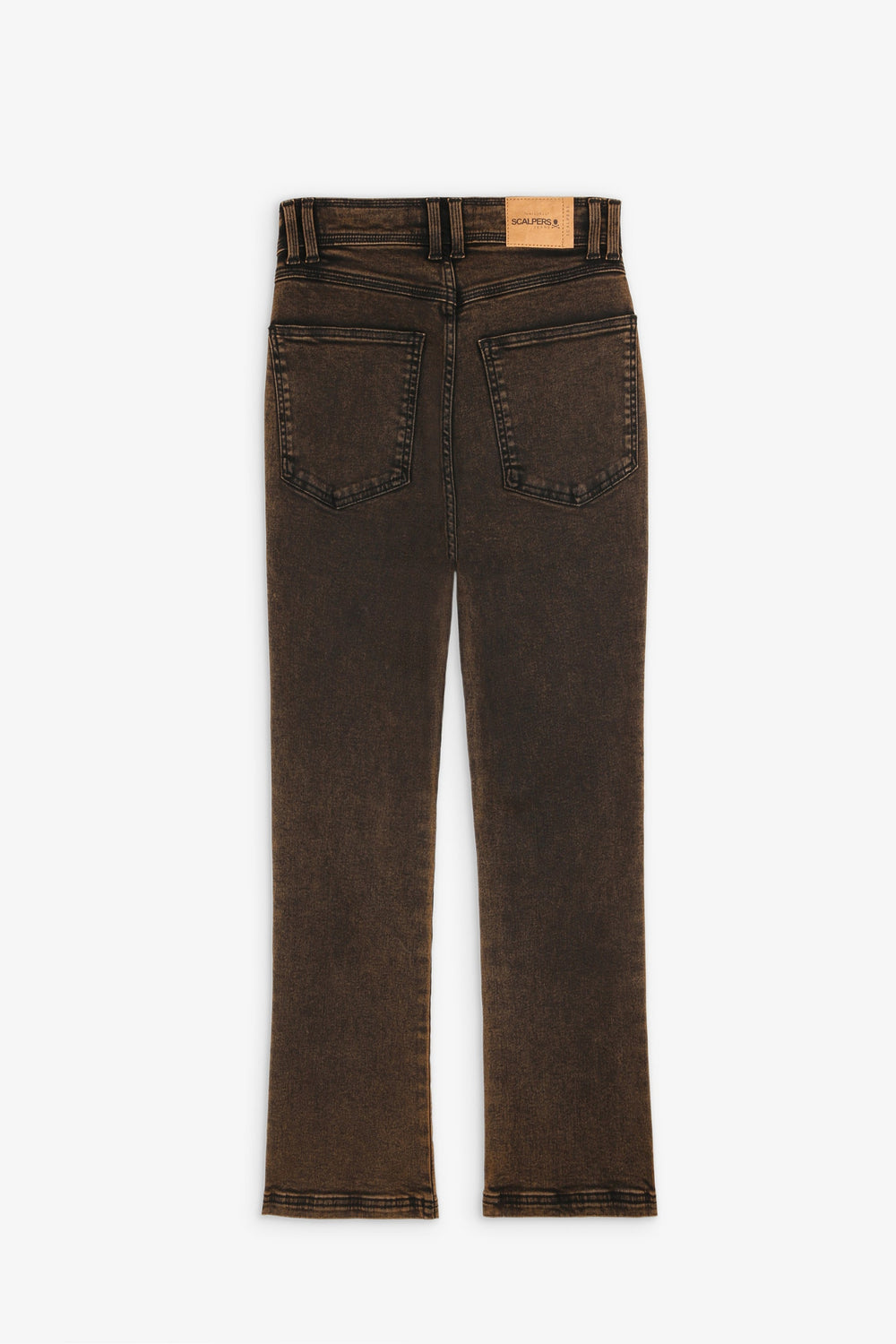 Calças flare. Confecionadas em algodão ligeiramente elástico, cintura subida, fecho com botões, cintura com presilhas e pormenor de bolsos grandes dianteiros