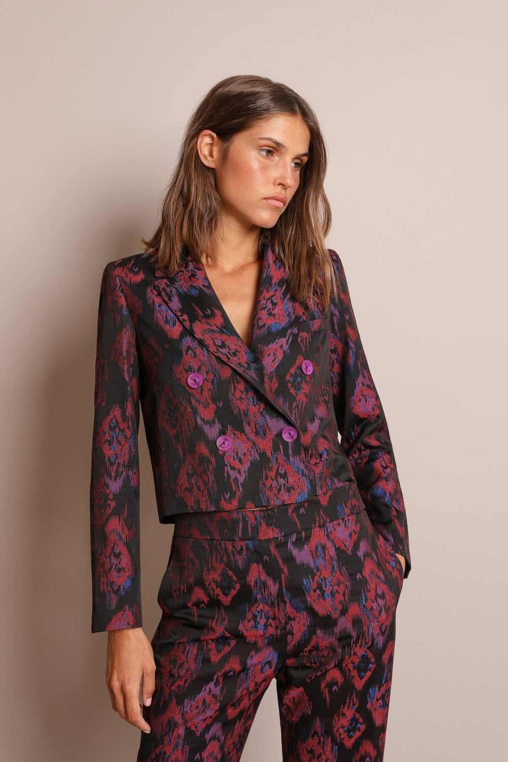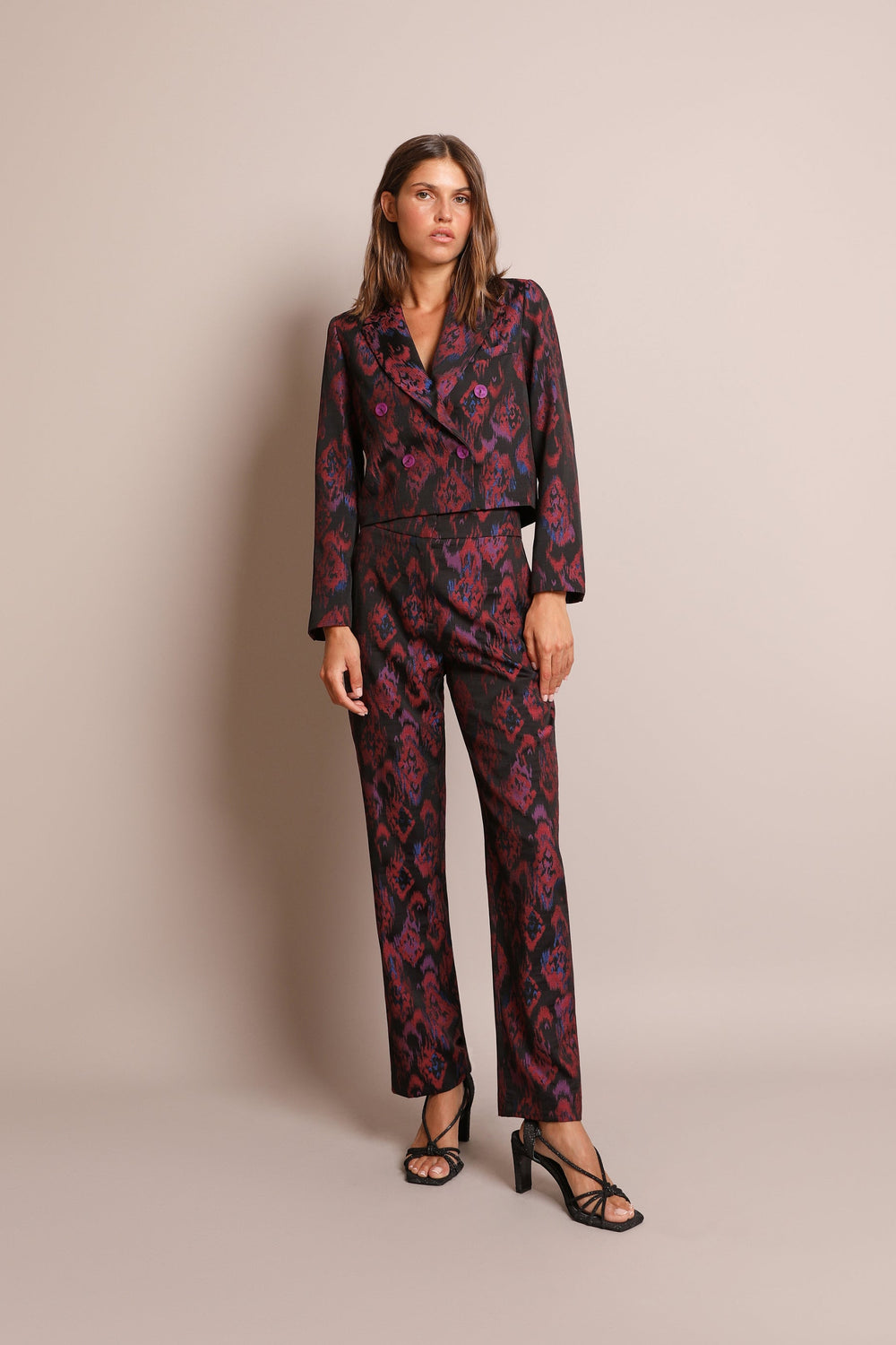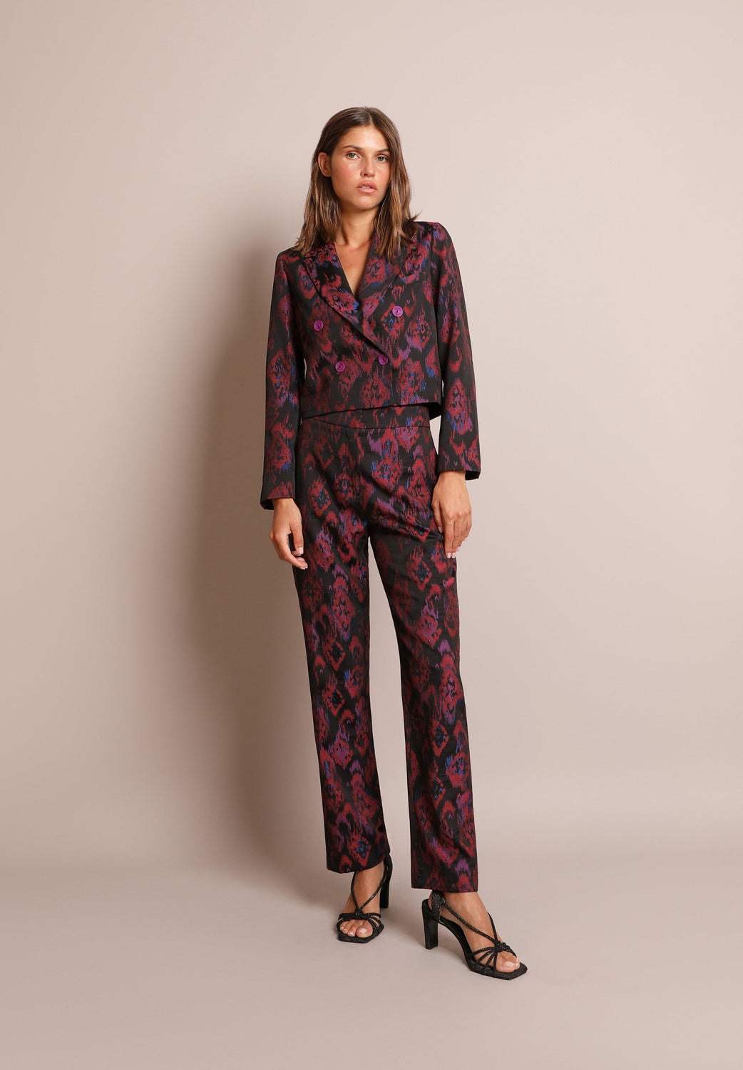 Calças direitas com padrão. Confecionadas em tecido confortável, corte direito, cintura alta e dois bolsos laterais e um traseiro