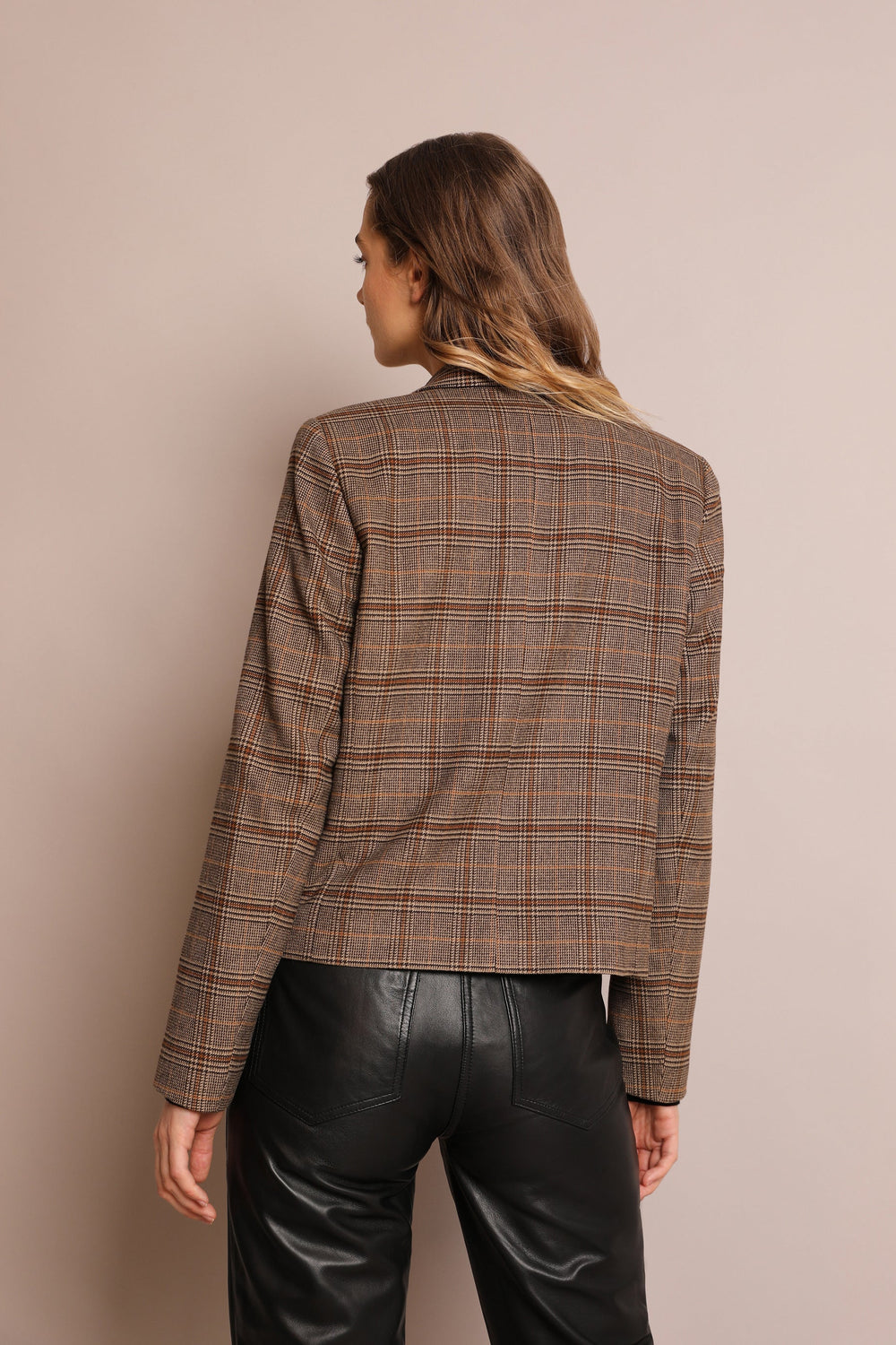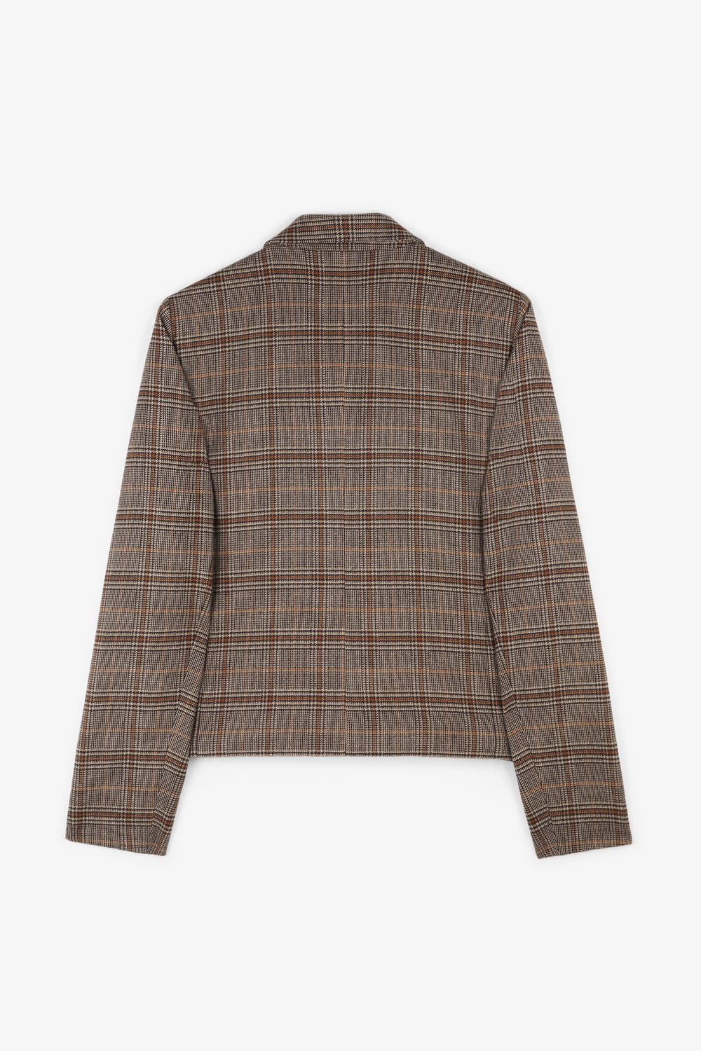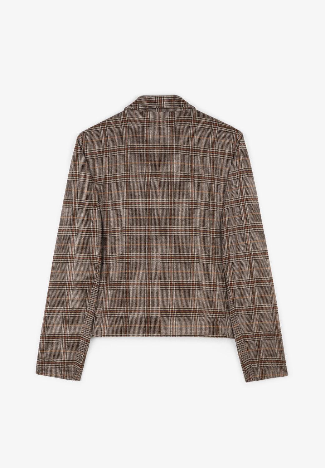 Blazer de xadrez curto confecionado em tecido ligeiramente elástico. Corte Regular Fit, gola com lapelas e fecho cruzado. Manga comprida.