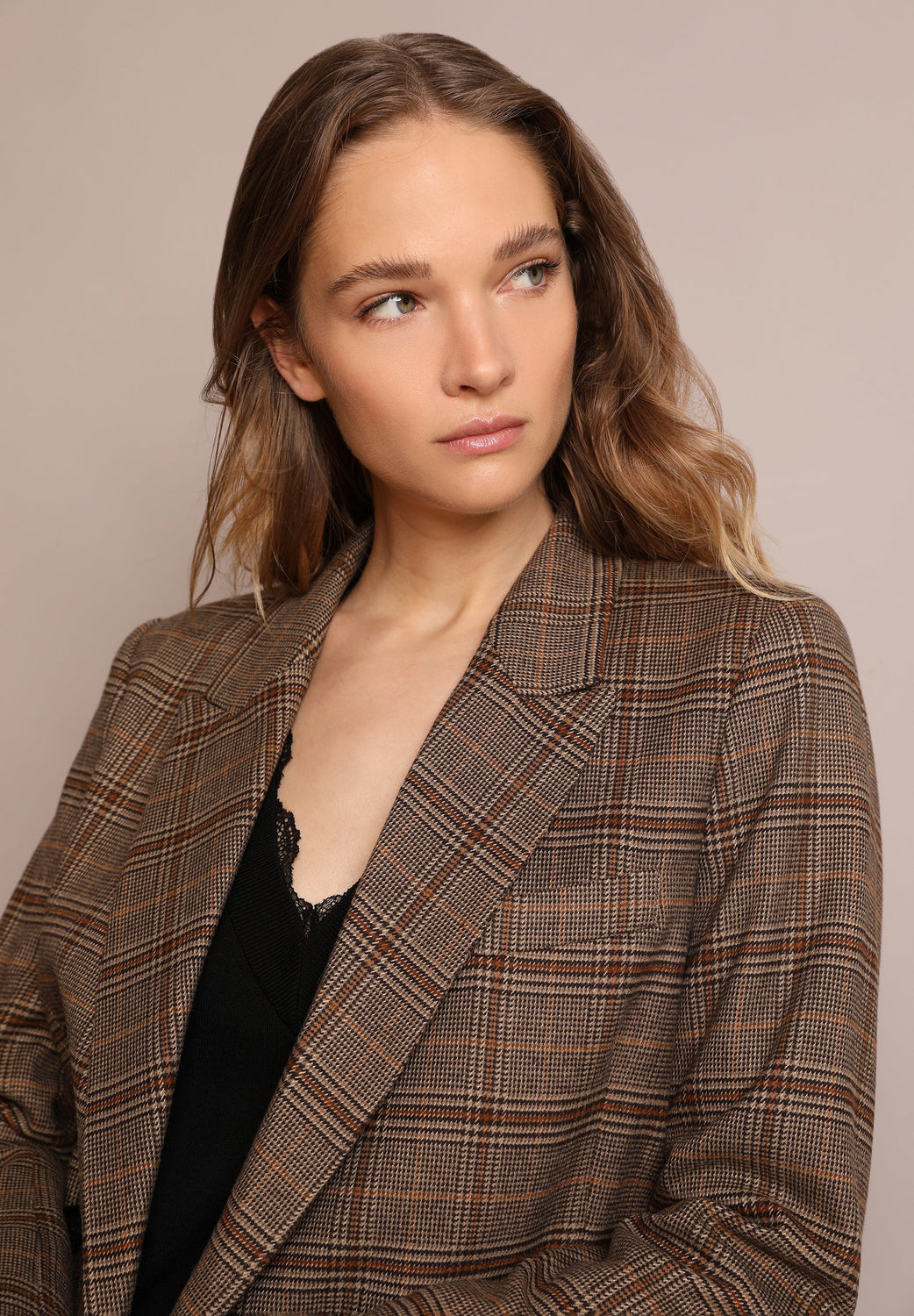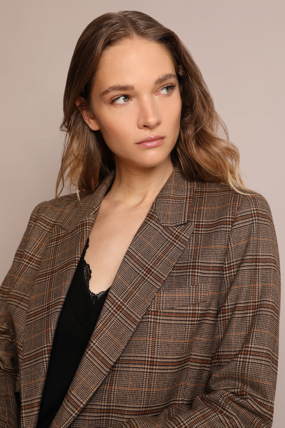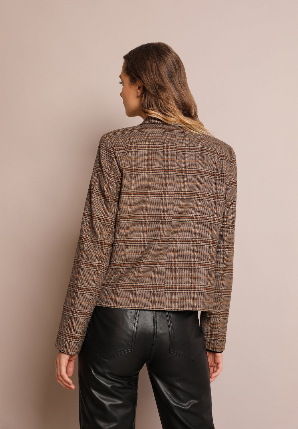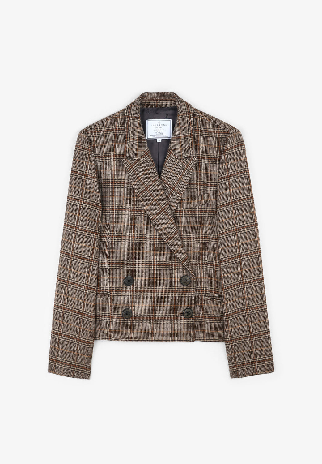 Blazer de xadrez curto confecionado em tecido ligeiramente elástico. Corte Regular Fit, gola com lapelas e fecho cruzado. Manga comprida.