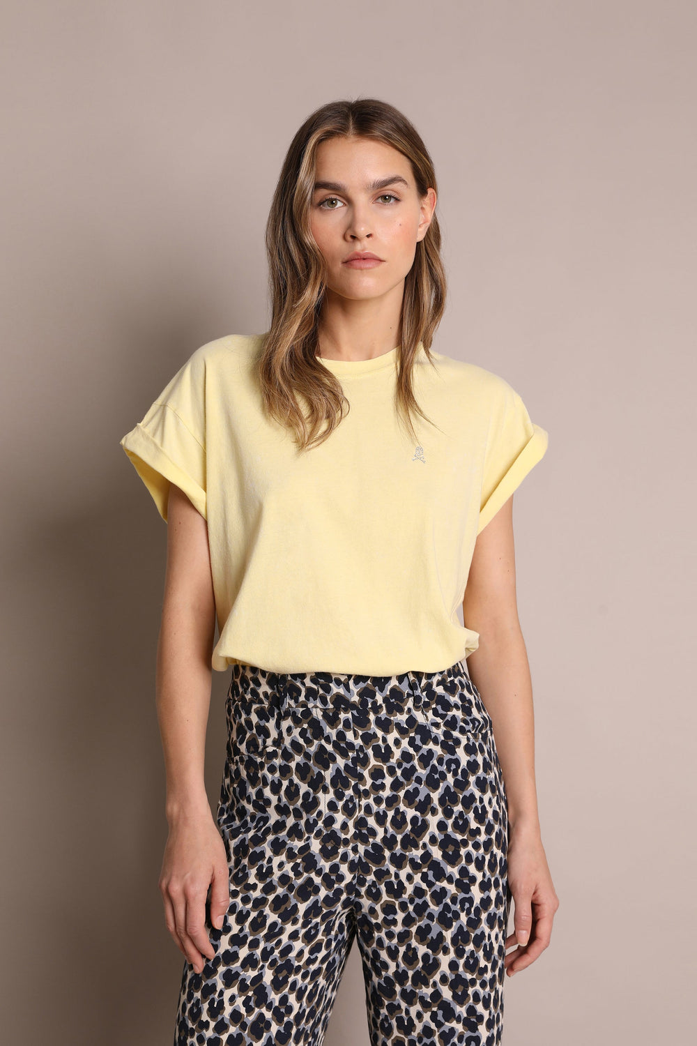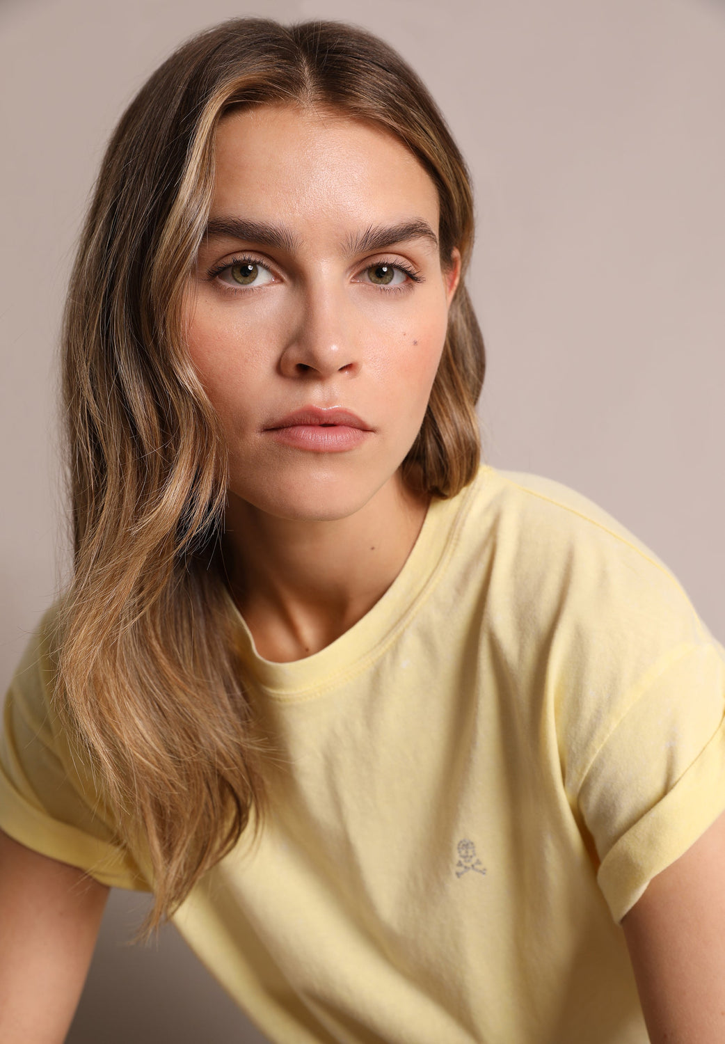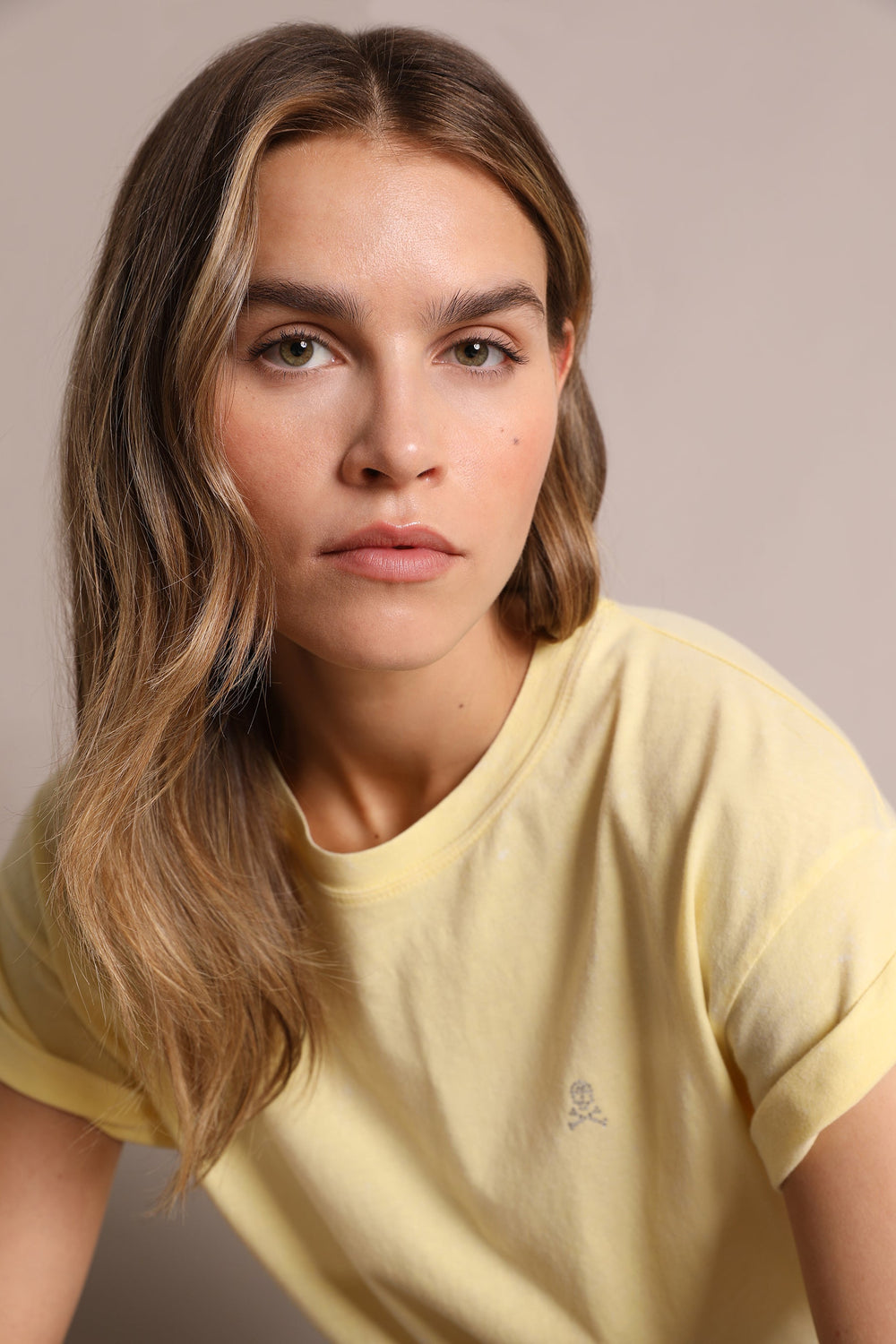 T-shirt com logótipo bordado no peito com desbotado confecionada em 100% algodão orgânico. Corte Regular Fit, decote redondo e manga curta.