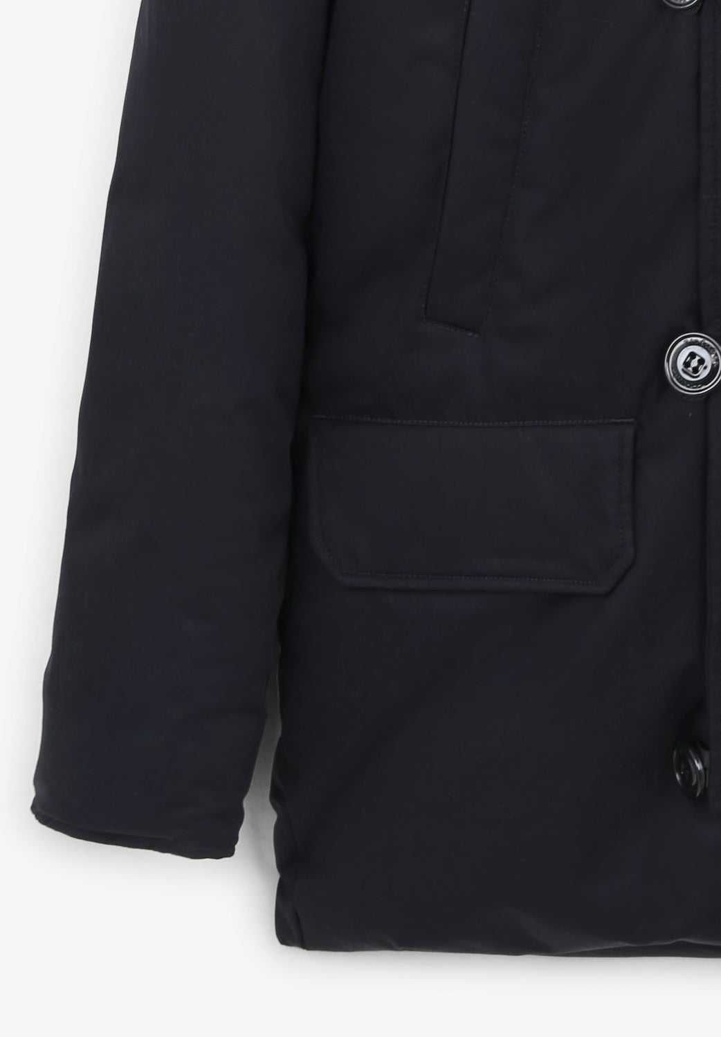 - Dois bolsos verticais e dois planos com aba e botão de pressão na parte da frente.
