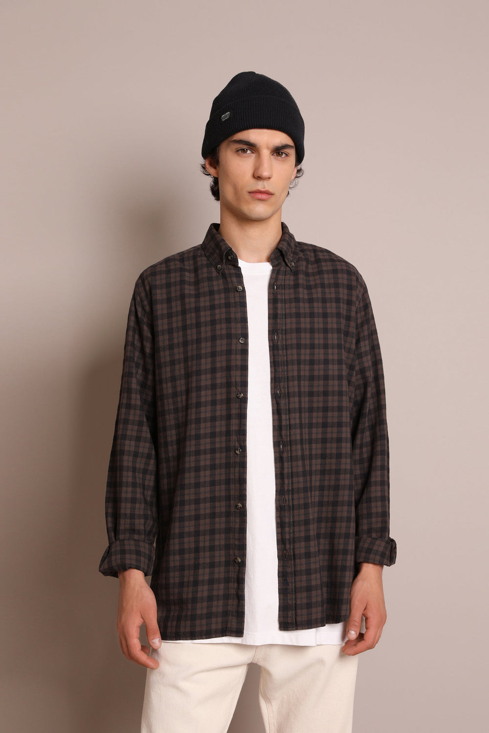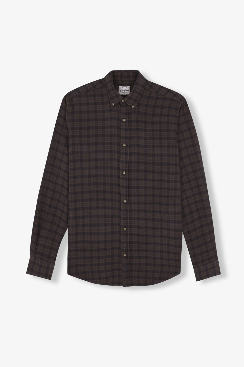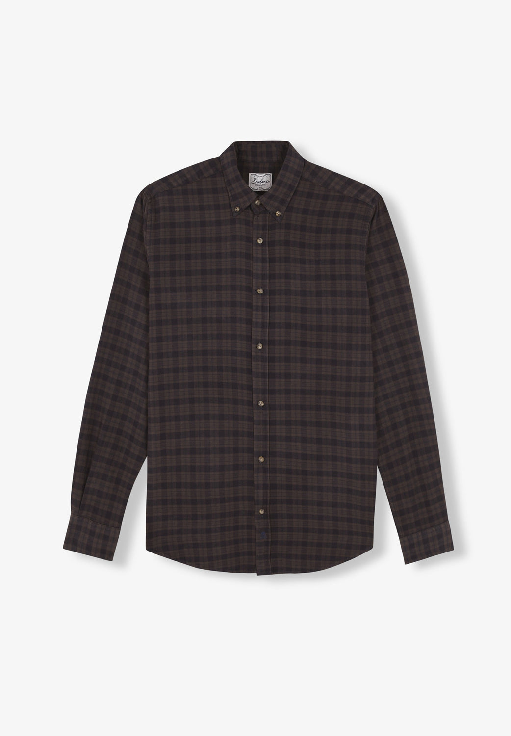 Camisa de xadrez confecionada em 100% algodão orgânico. Corte Regular Fit, decote com botões e manga comprida terminada em punho com botões.