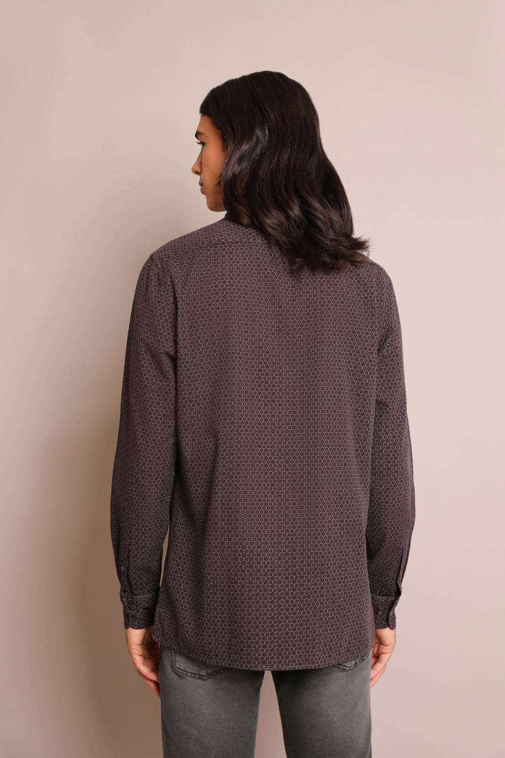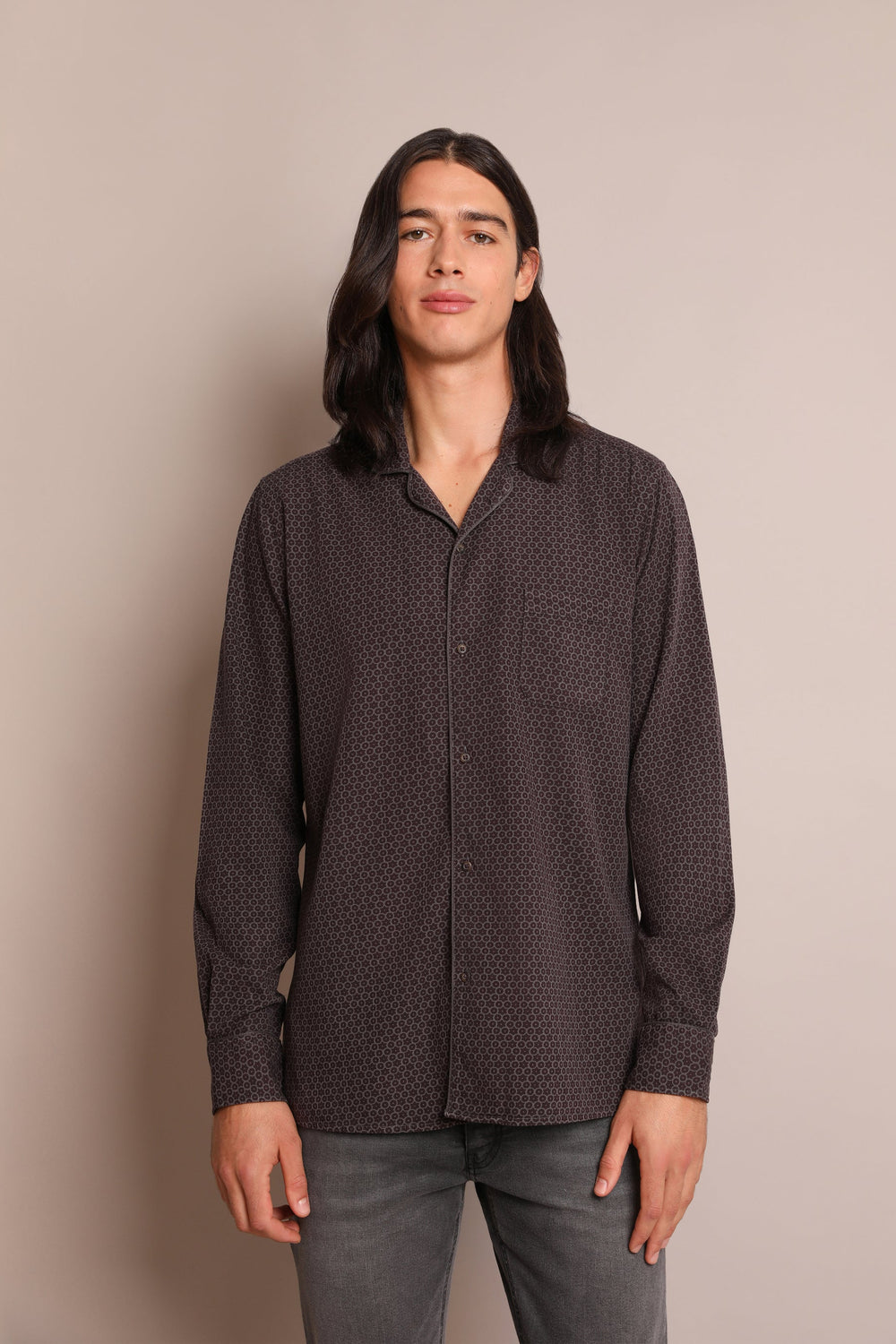 Camisa premium tipo pijama estampada confecionada em 100% algodão. Corte Regular Fit, decote de pijama e fecho com botões. Manga comprida com botões e bolso no peito.