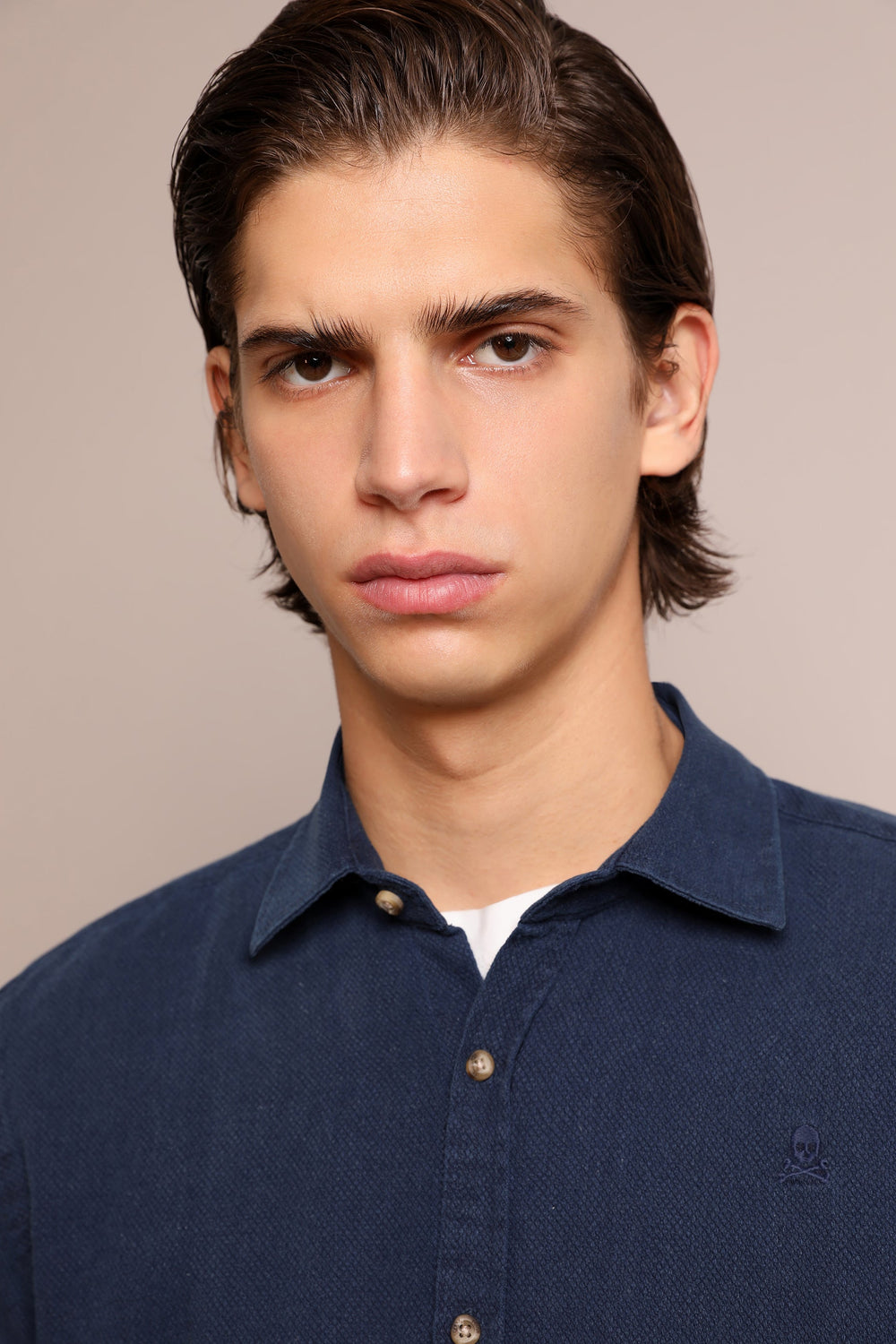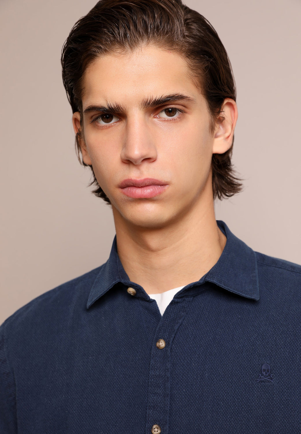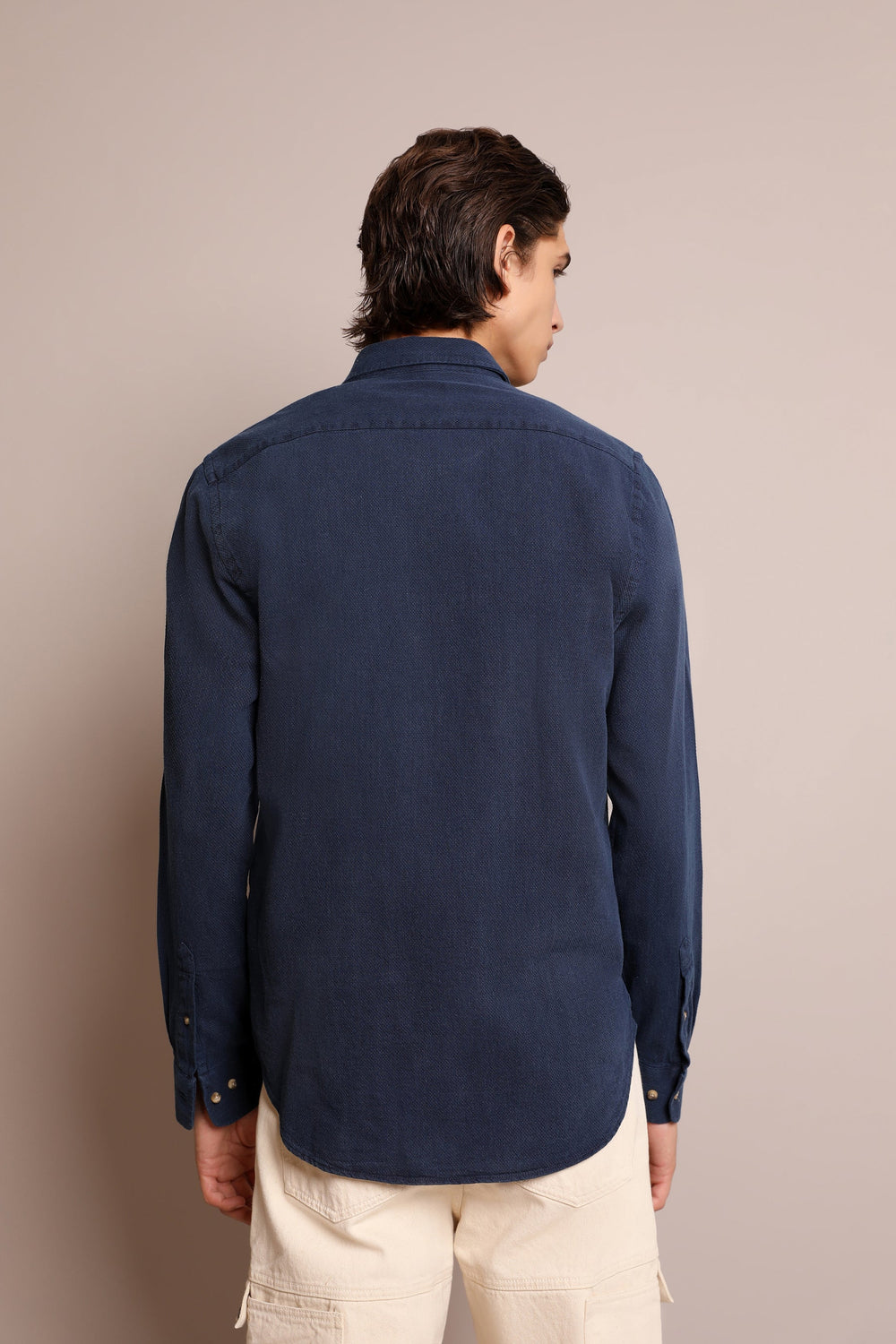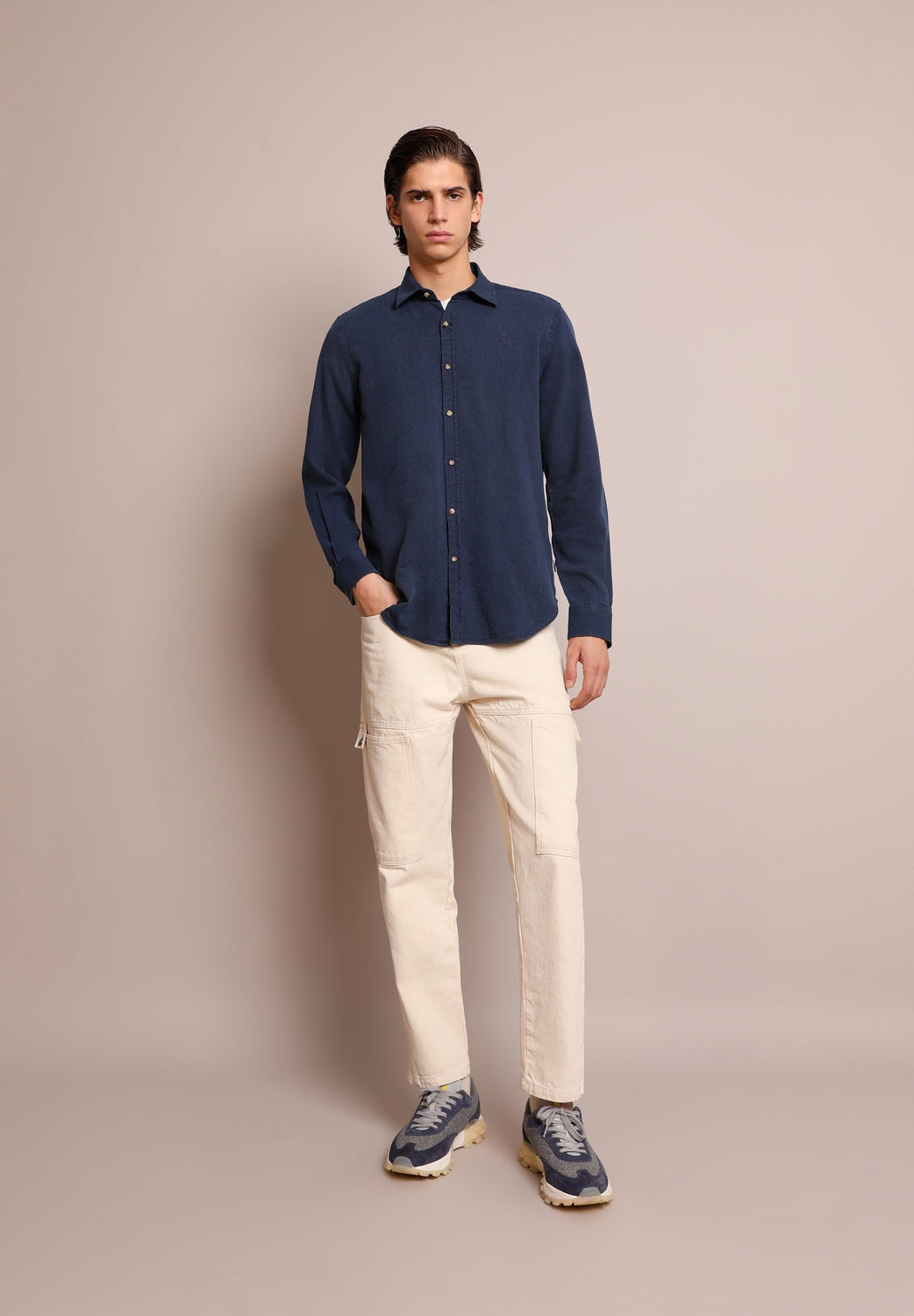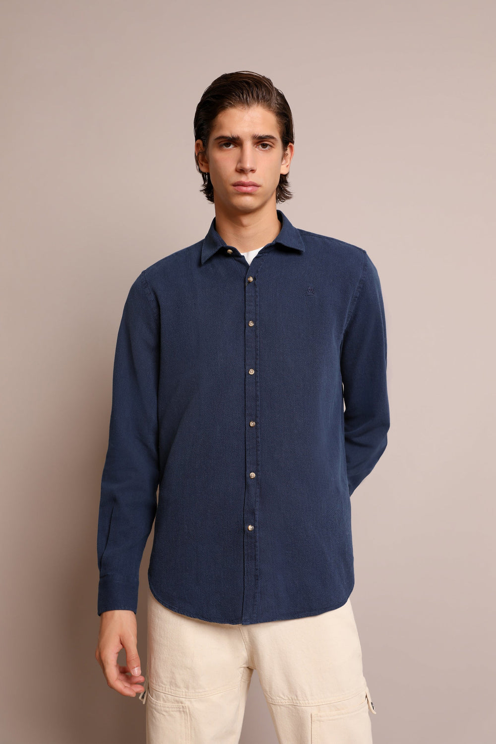 Camisa denim com logo no tom. Confecionada em 100% algodão, corte Regular Fit, gola italiana, fecho com botões e manga comprida com botões.