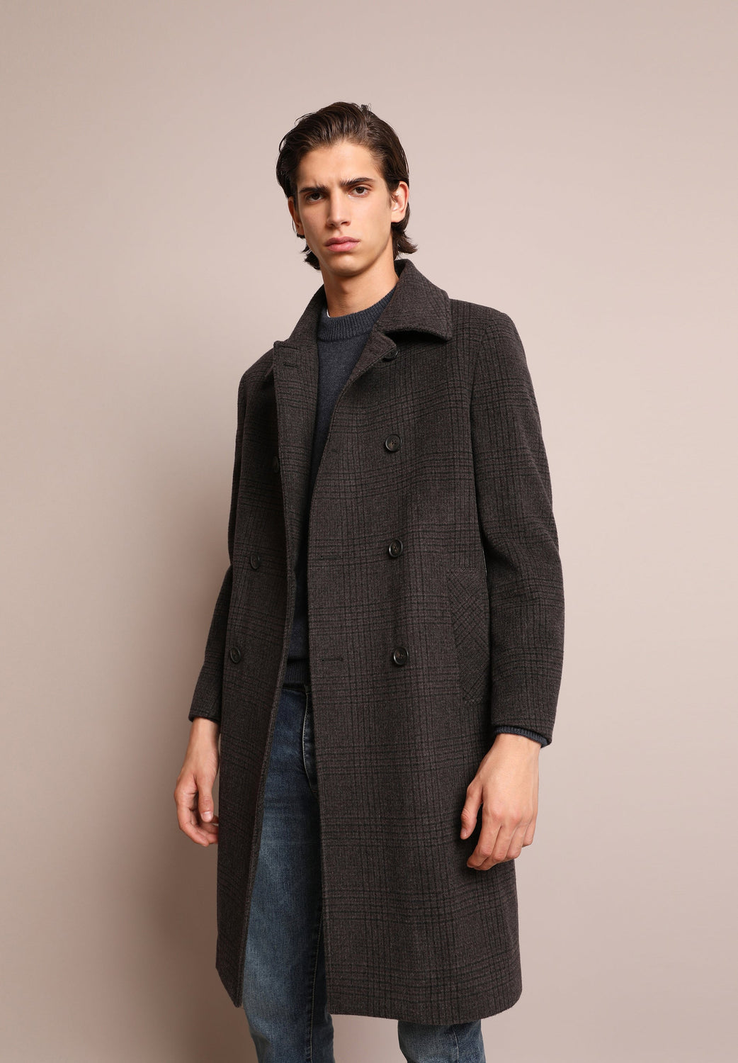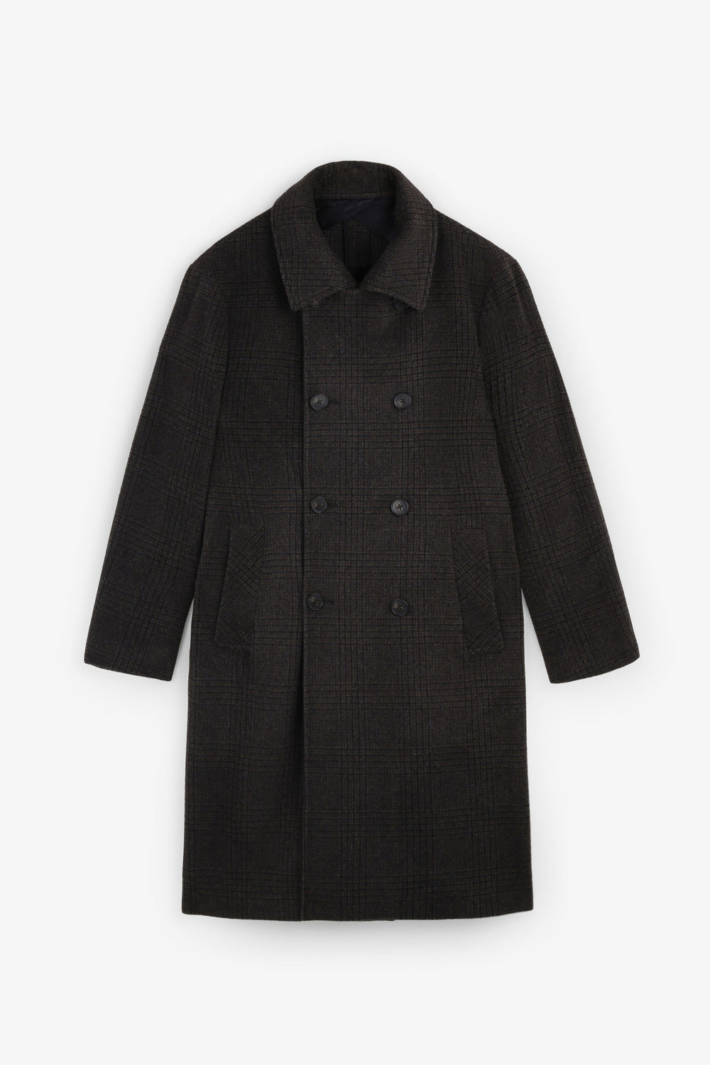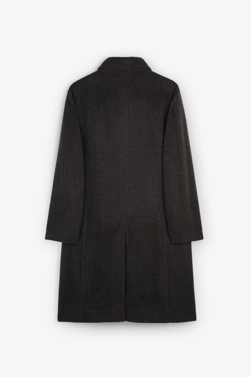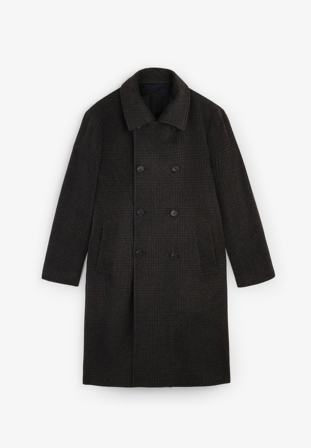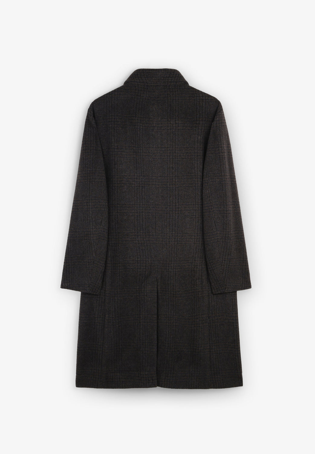 Casaco de quadrados confecionado em mistura de lã. Corte Regular Fit, colarinho clássico e fecho com botões. Manga comprida e bolsos laterais.