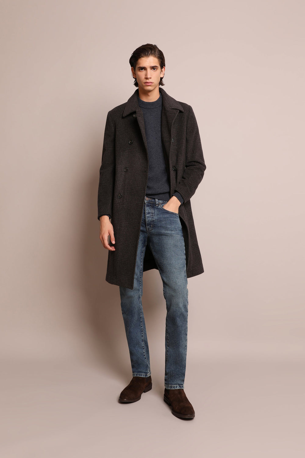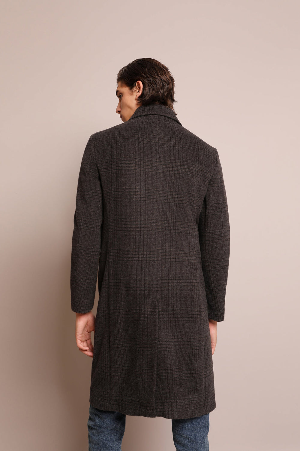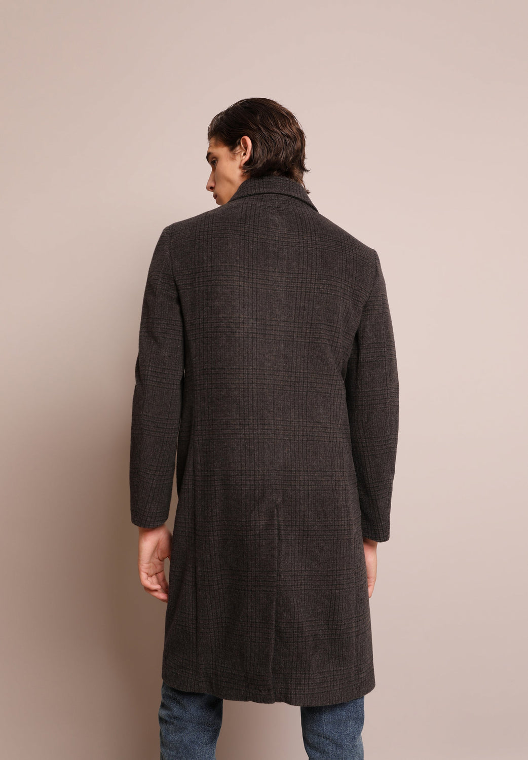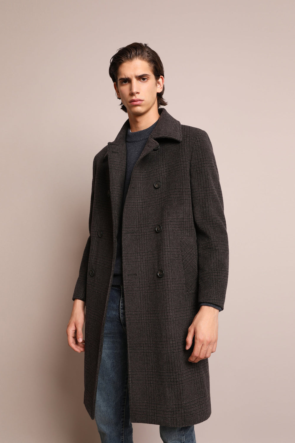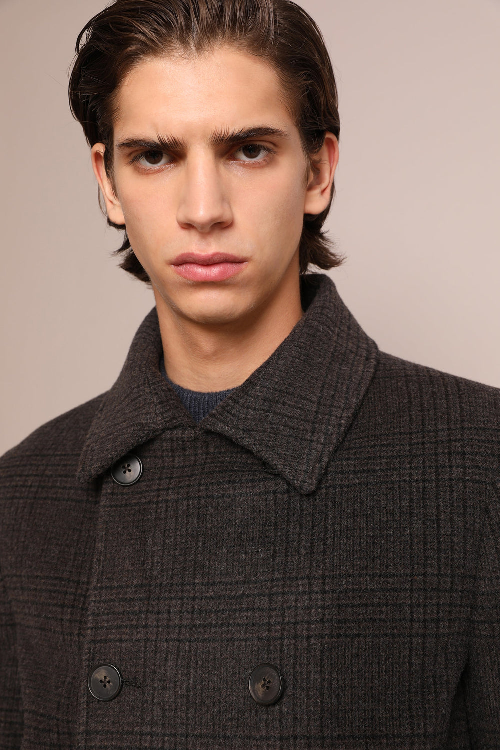 Casaco de quadrados confecionado em mistura de lã. Corte Regular Fit, colarinho clássico e fecho com botões. Manga comprida e bolsos laterais.