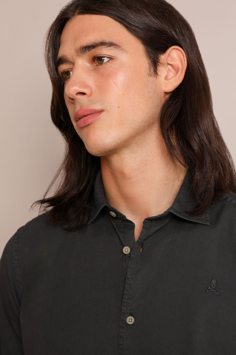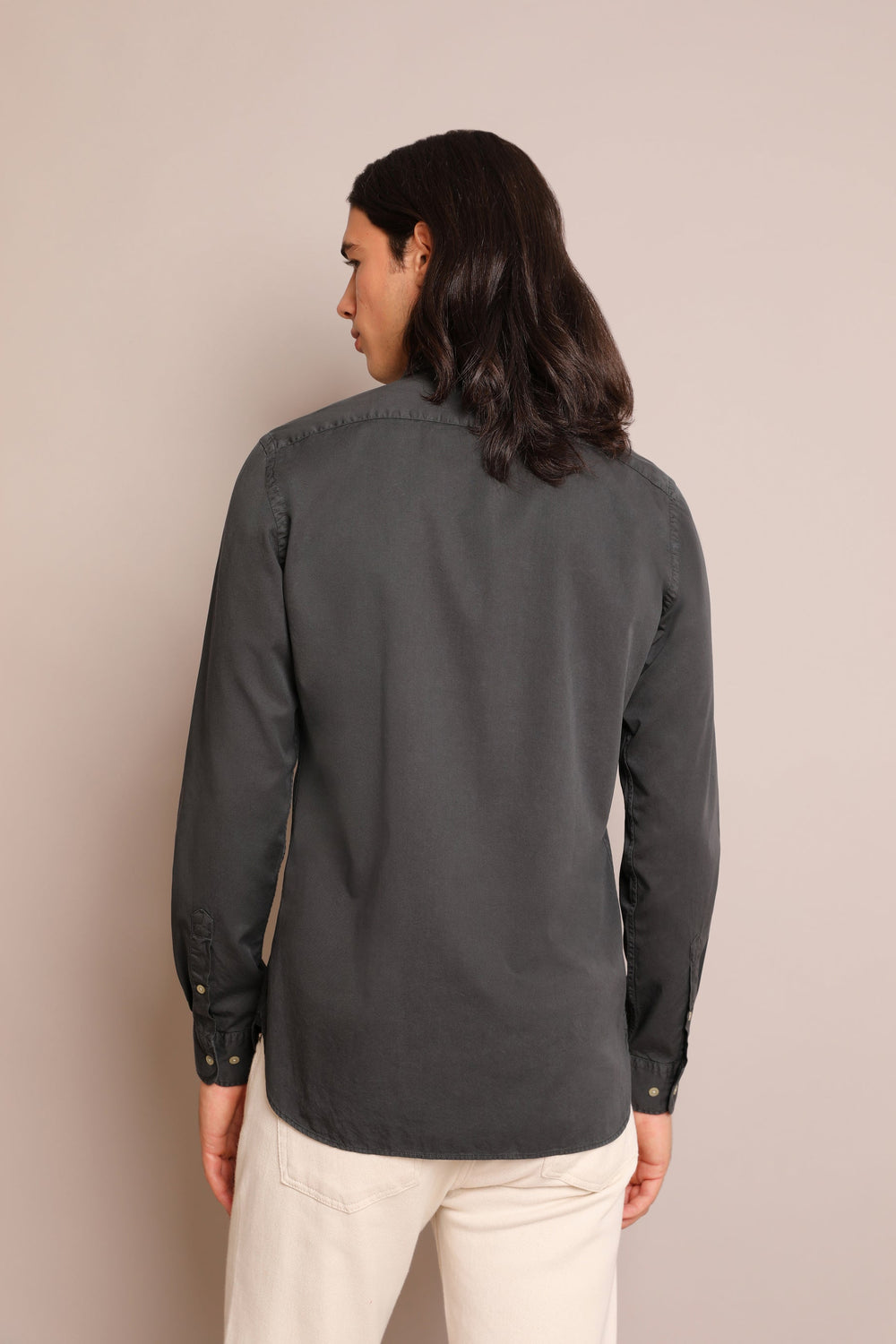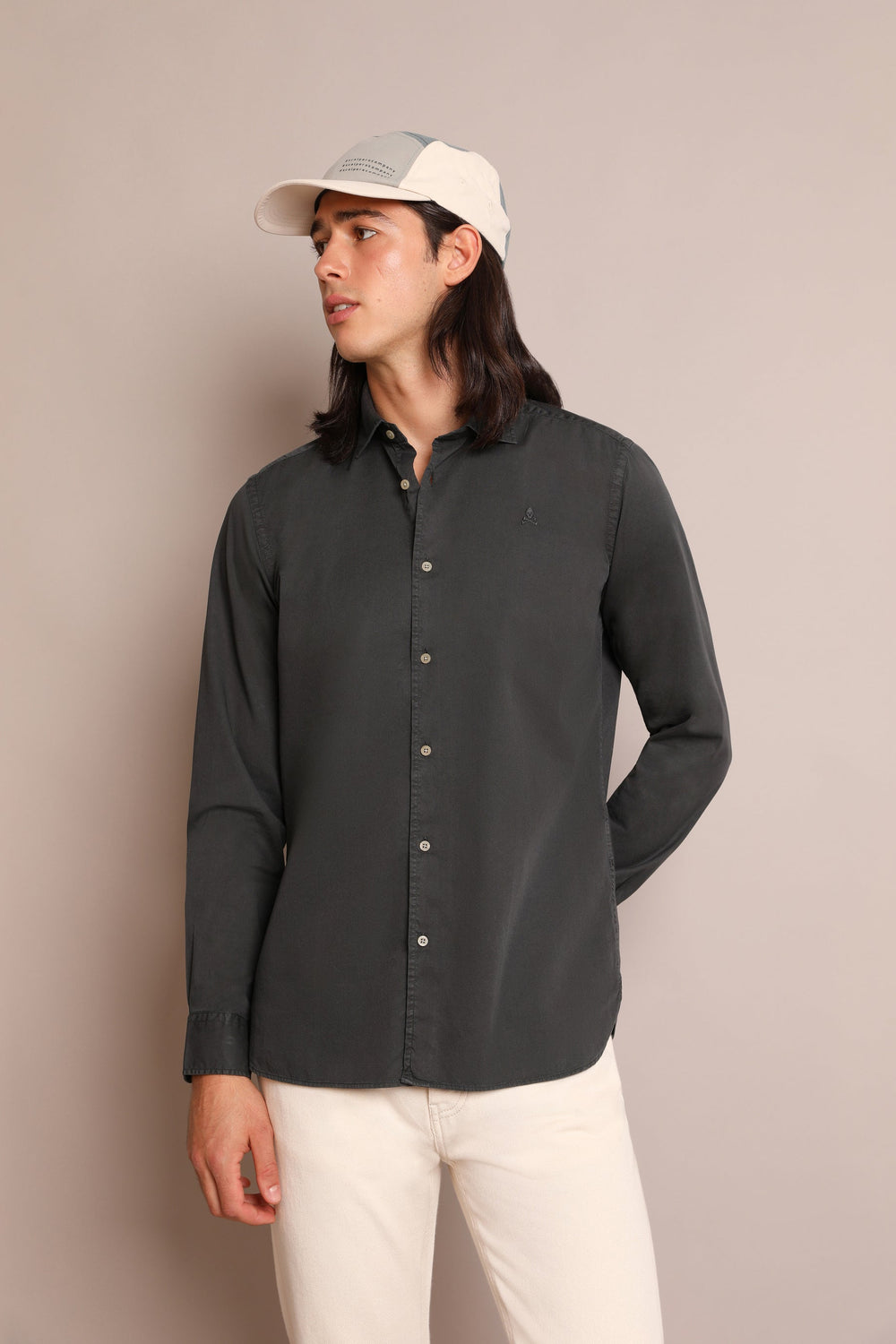 Camisa desbotada com logótipo bordado no tom. Confecionada em 100% algodão, corte Regular Fit, gola italiana, fecho com botões e manga comprida