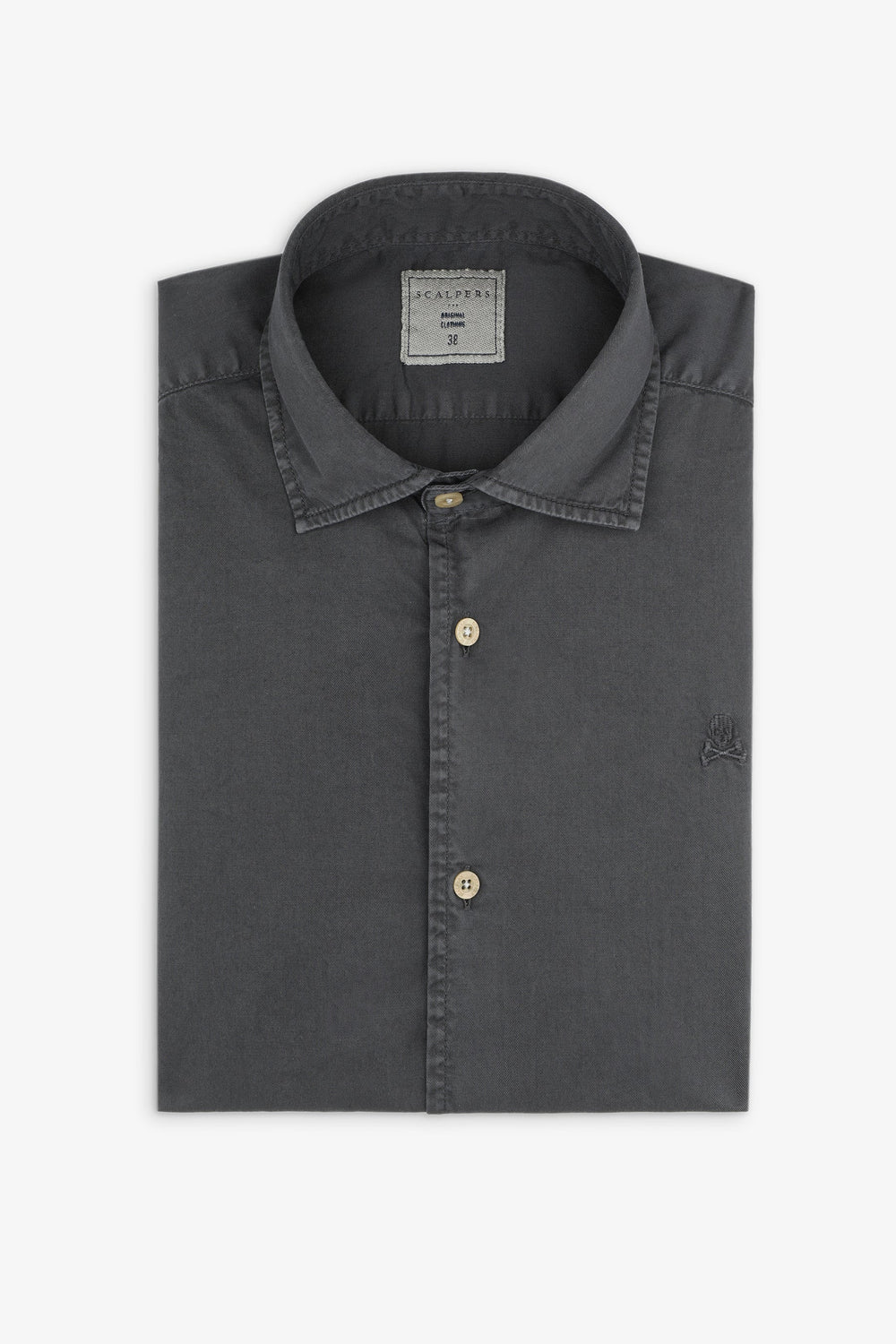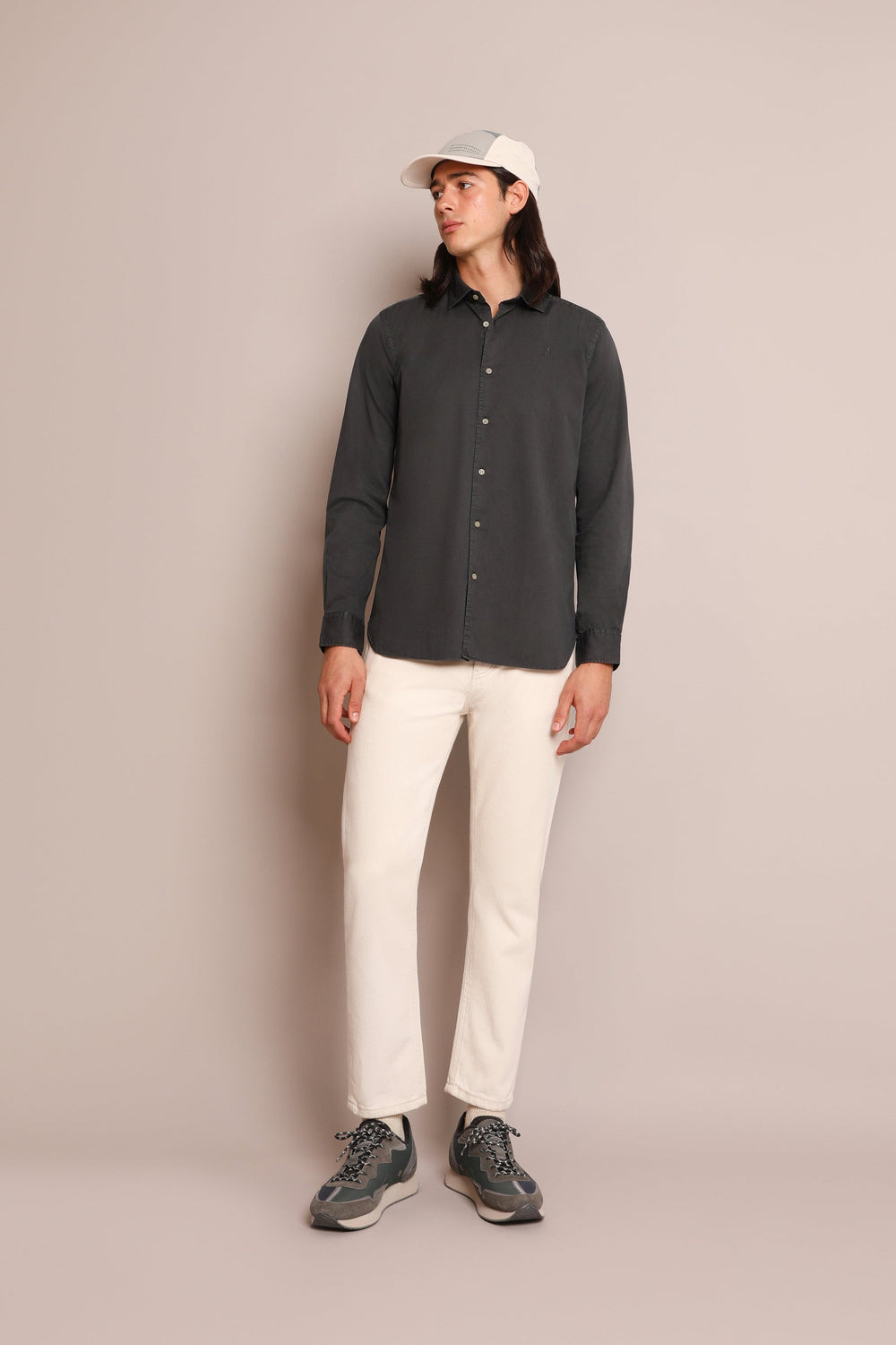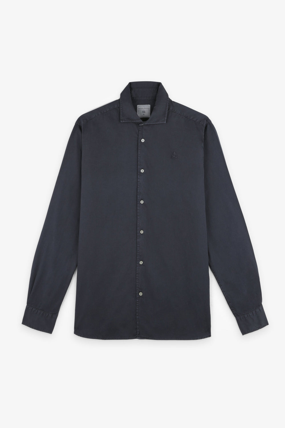 Camisa desbotada com logótipo bordado no tom. Confecionada em 100% algodão, corte Regular Fit, gola italiana, fecho com botões e manga comprida