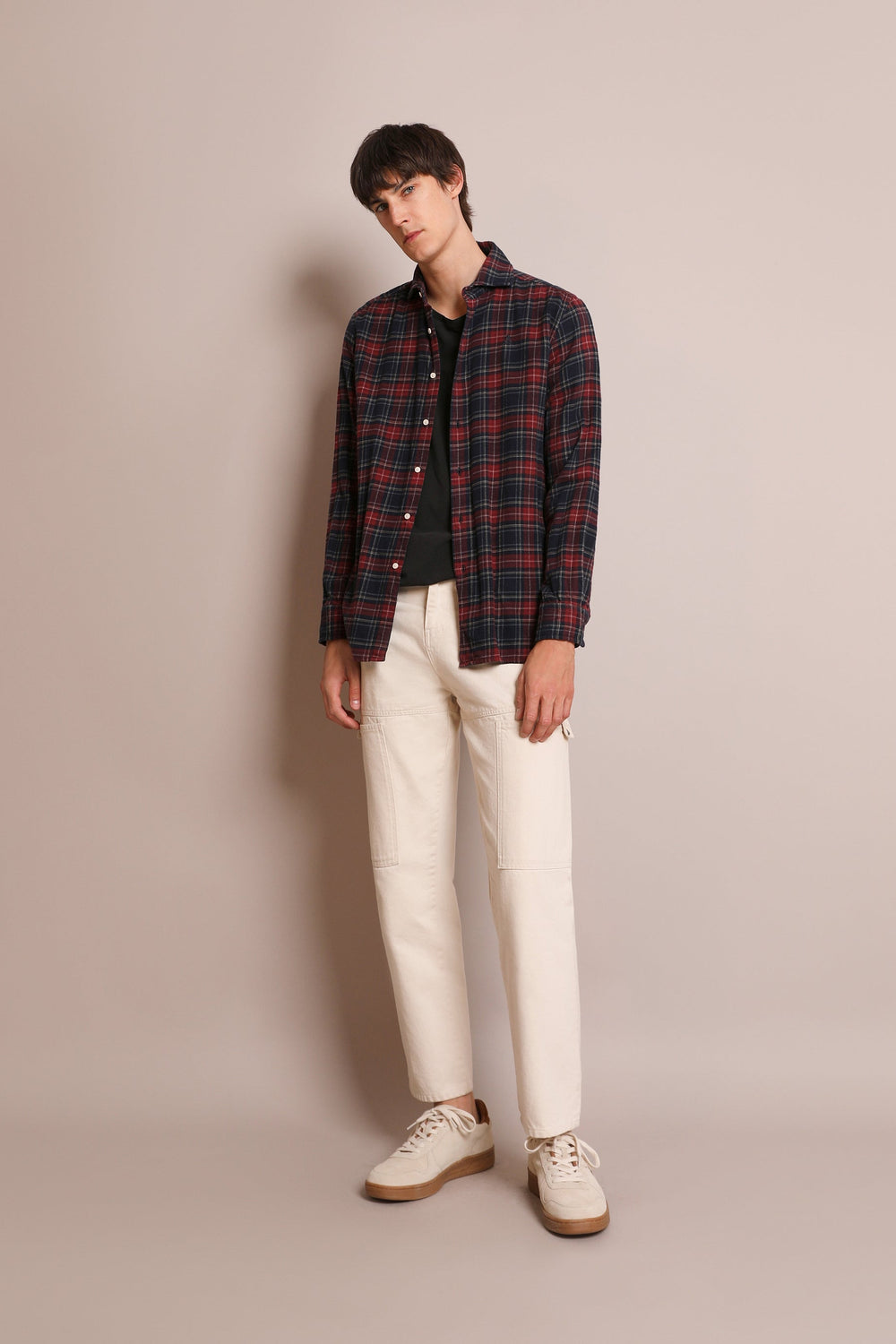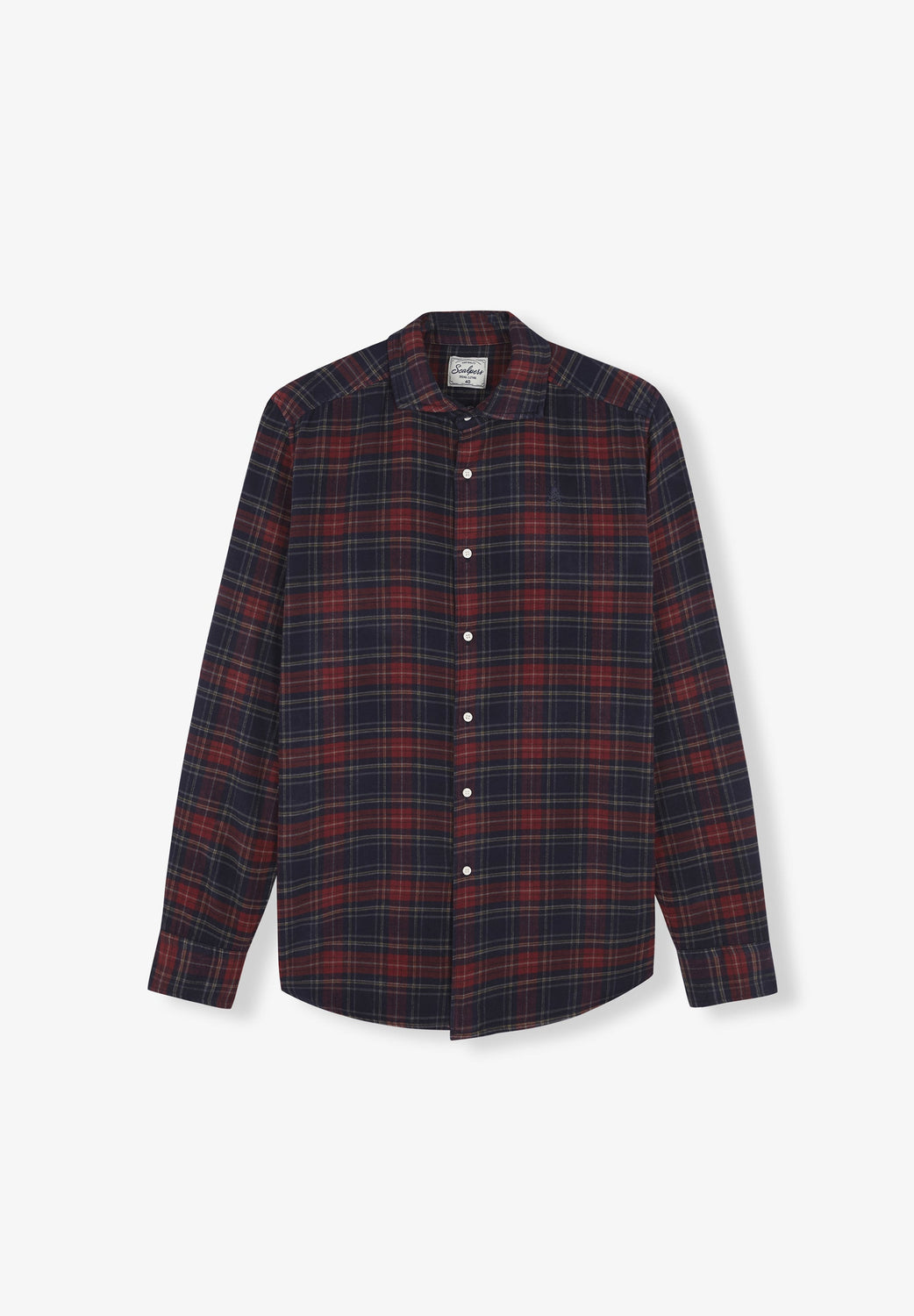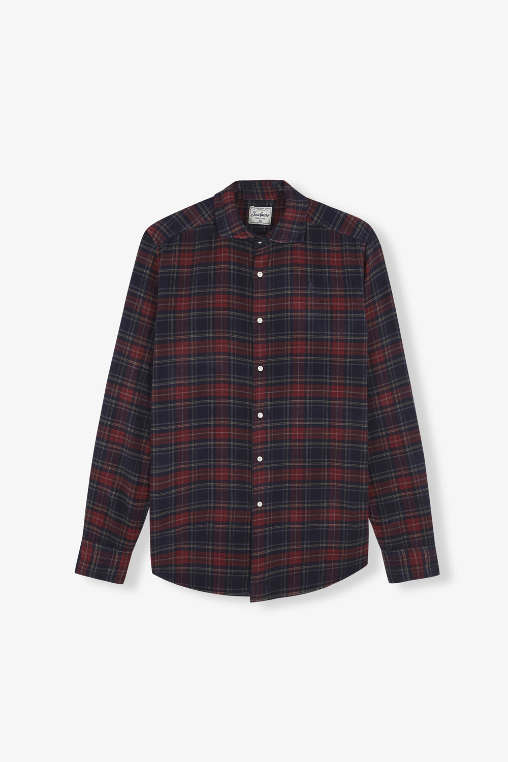 Camisa de xadrez tartan confecionada em 100% algodão orgânico. Corte Regular Fit, gola cutaway e fecho com botões. Manga comprida terminada em punho com botões e pormenor de logótipo bordado no tom.