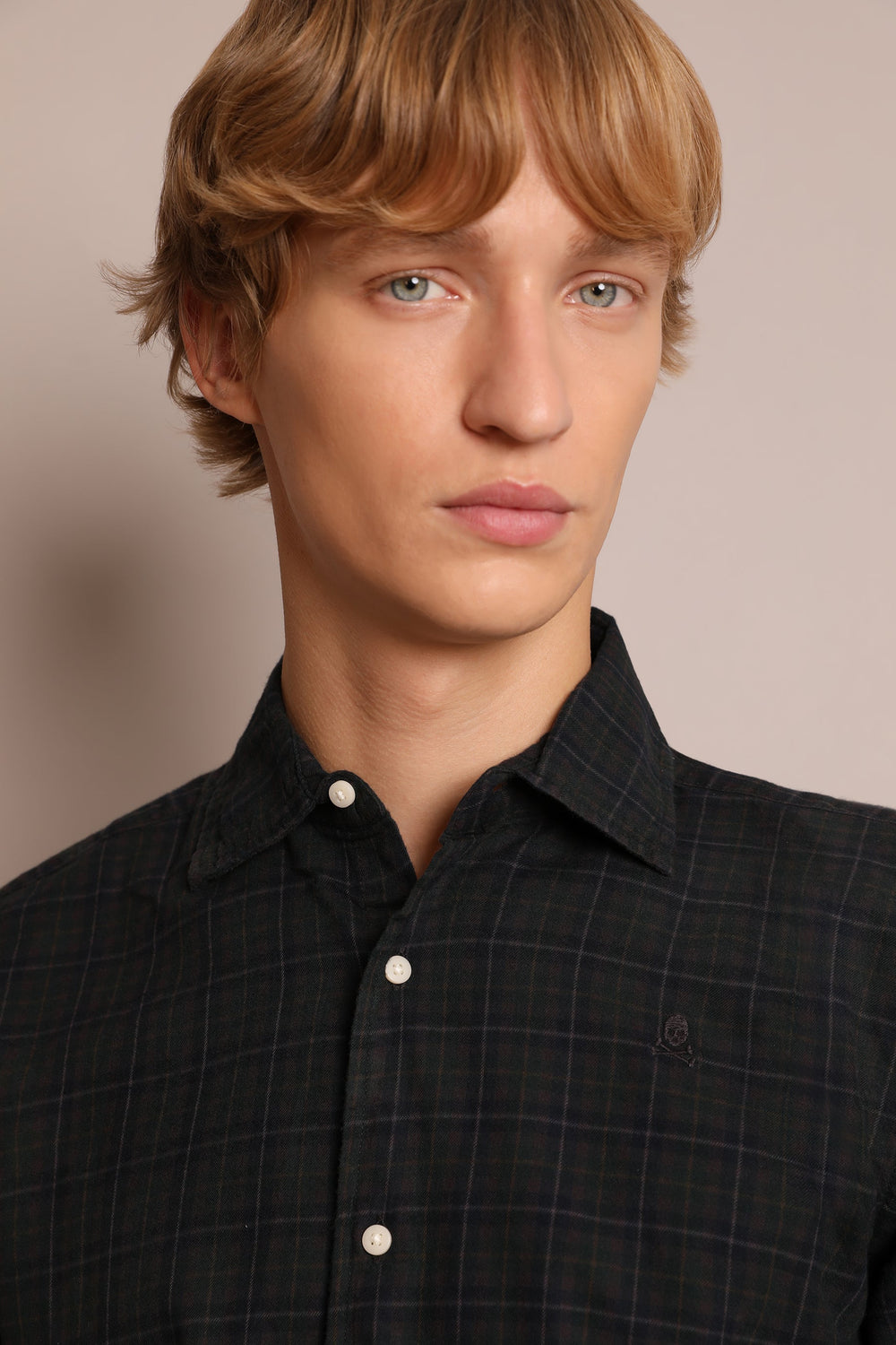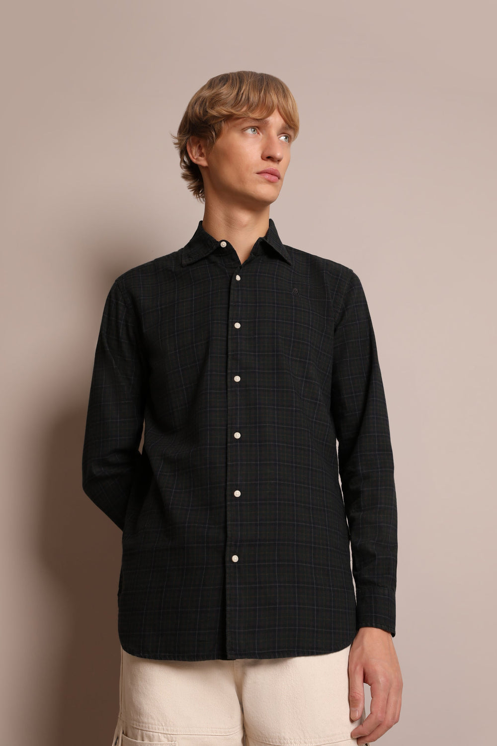 Camisa de xadrez pequeno confecionada em 100% algodão. Corte Regular Fit, gola cutaway e fecho com botões. Manga comprida terminada em punho com botões.