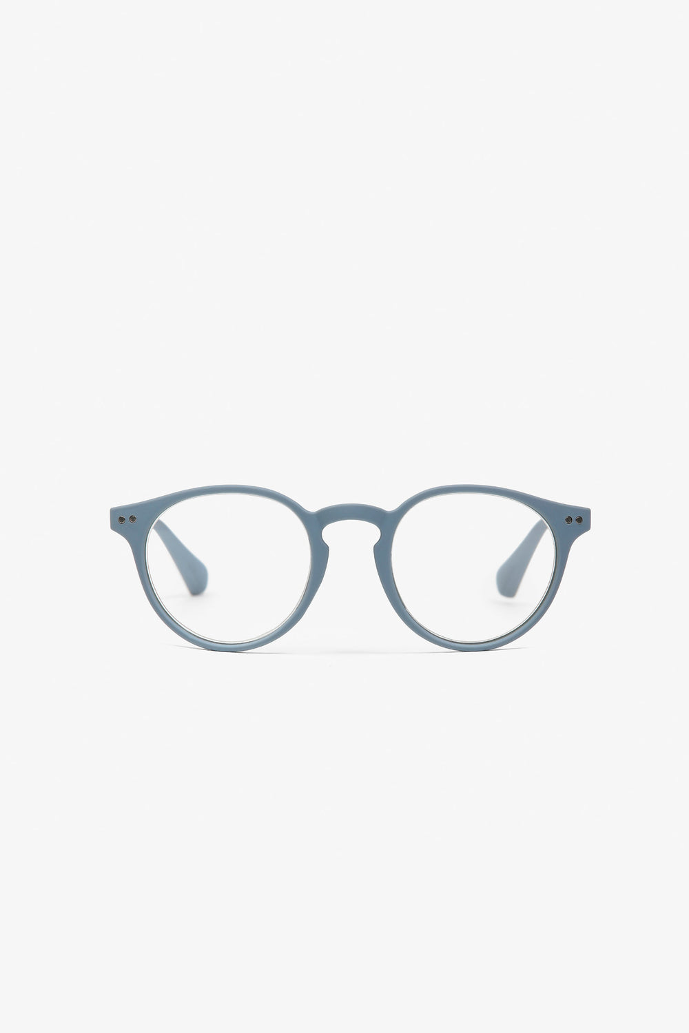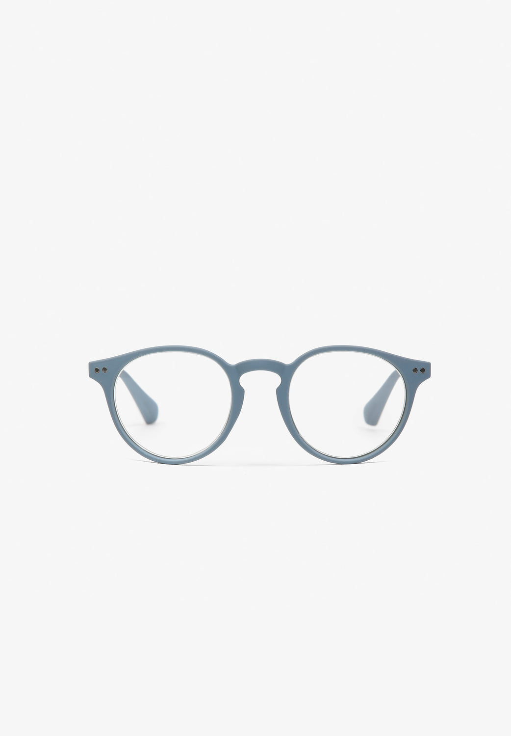 Óculos de massa redondos confecionados em policarbonato. Lentes graduadas e pormenor de logótipo lateral.