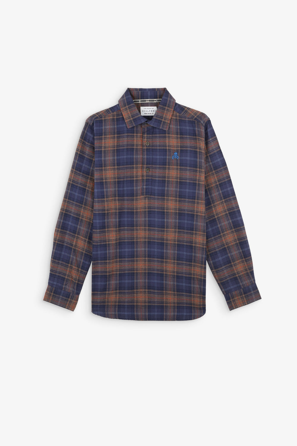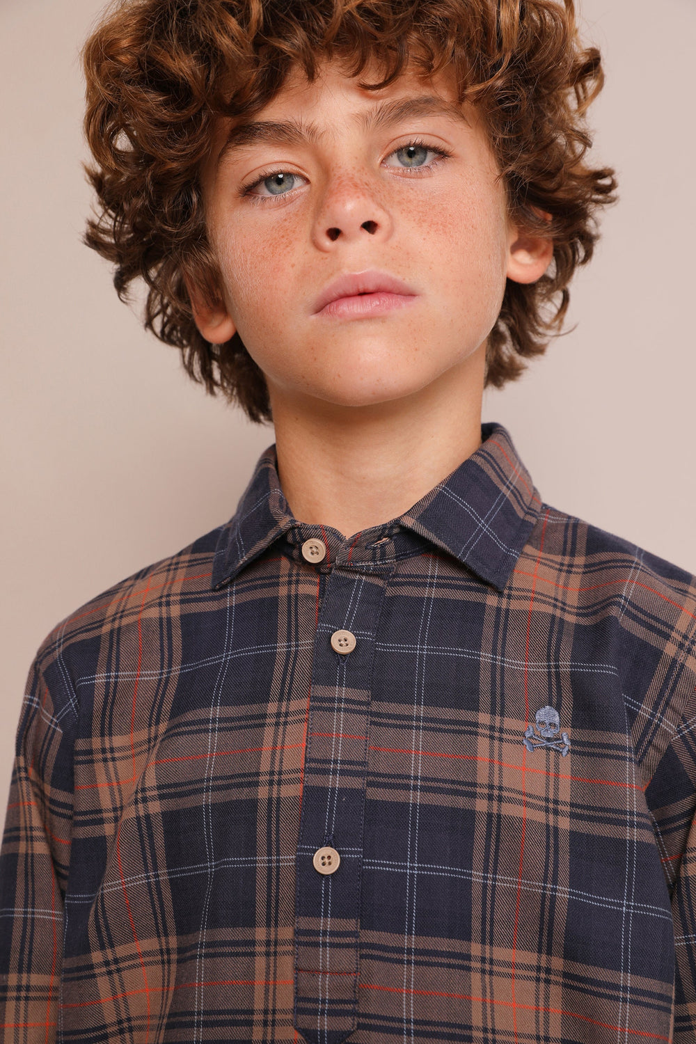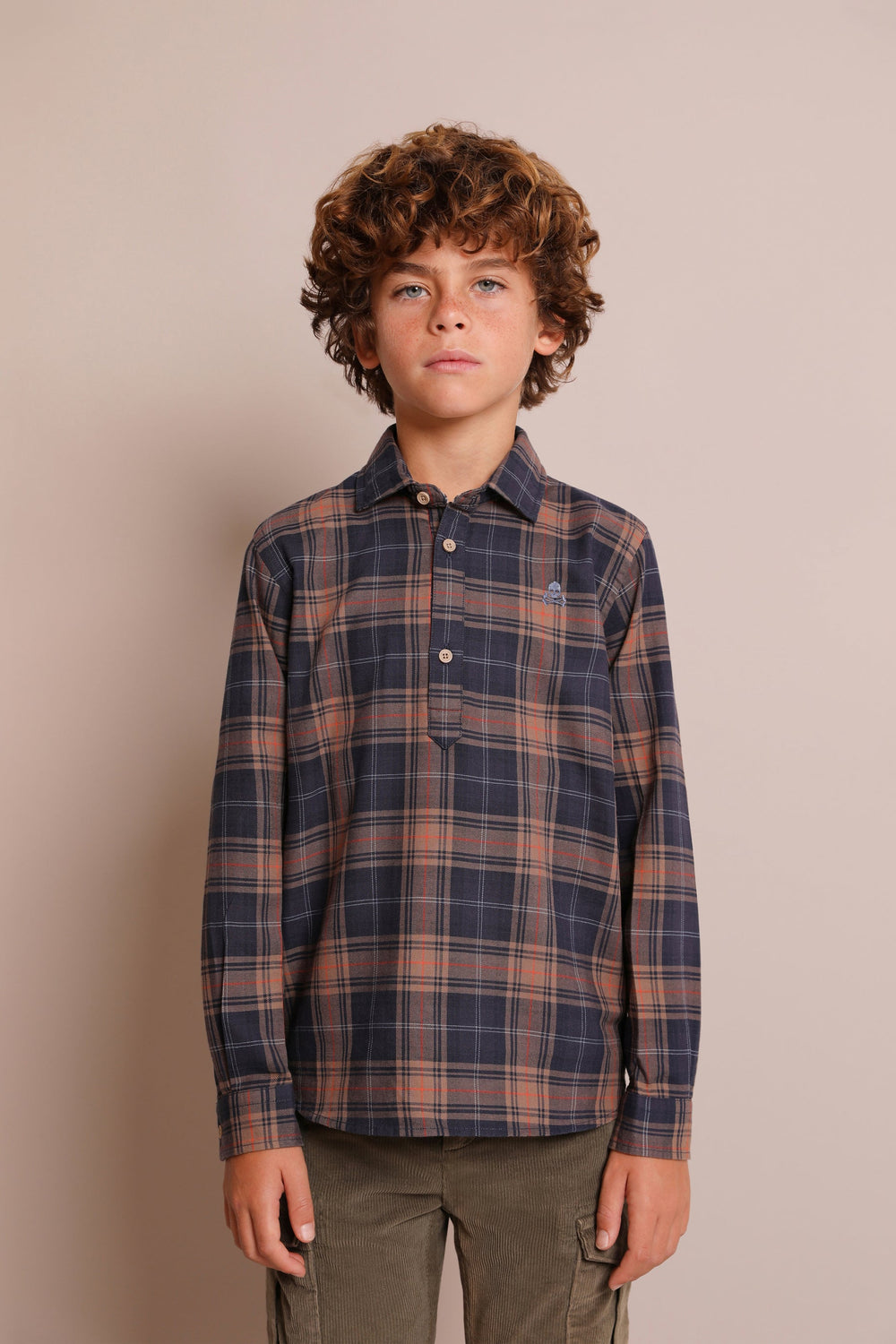 Camisa polo de xadrez janela. Confecionada em tecido 100% algodão BCI, corte Regular Fit, colarinho clássico e manga comprida acabada em punho com botões