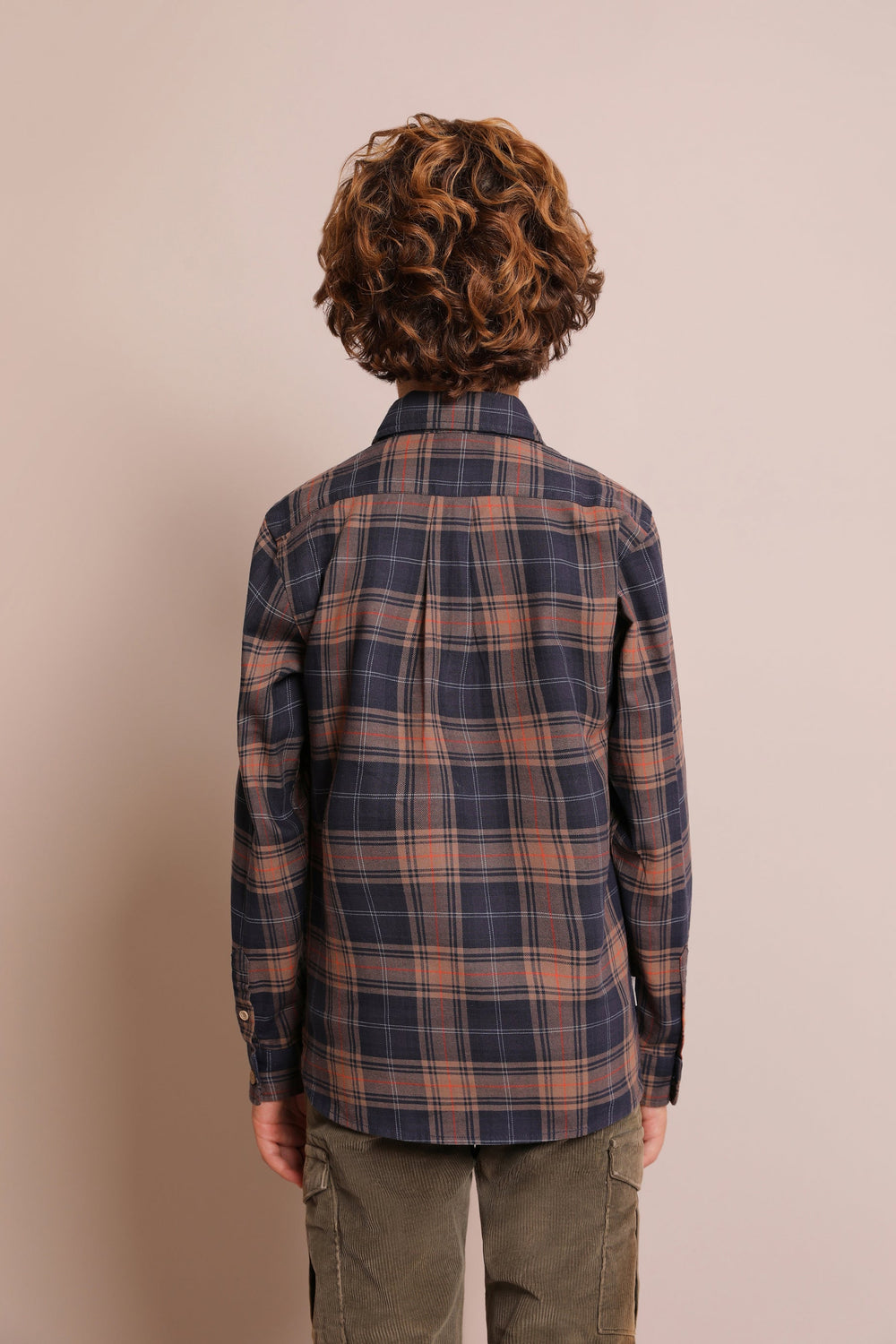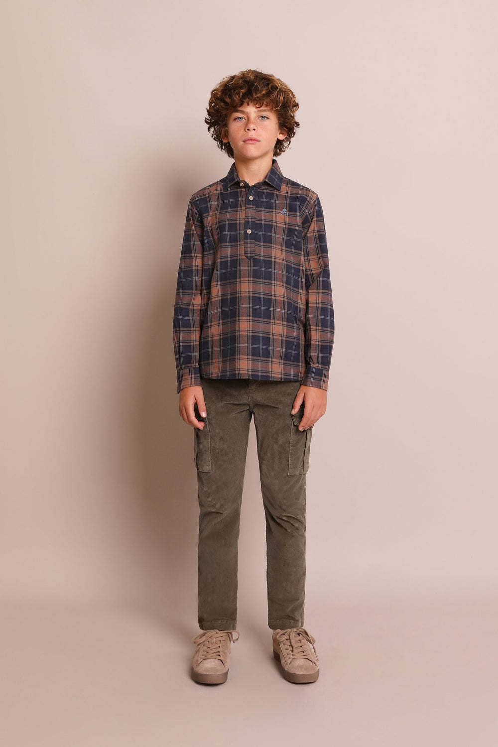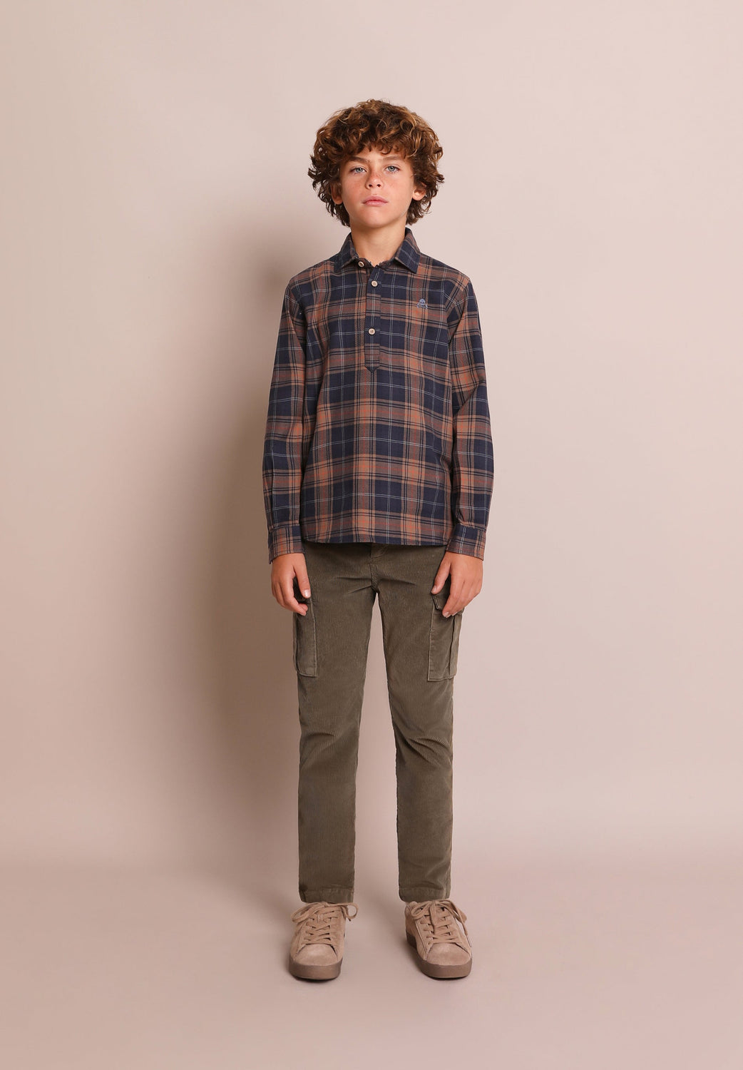 Camisa polo de xadrez janela. Confecionada em tecido 100% algodão BCI, corte Regular Fit, colarinho clássico e manga comprida acabada em punho com botões