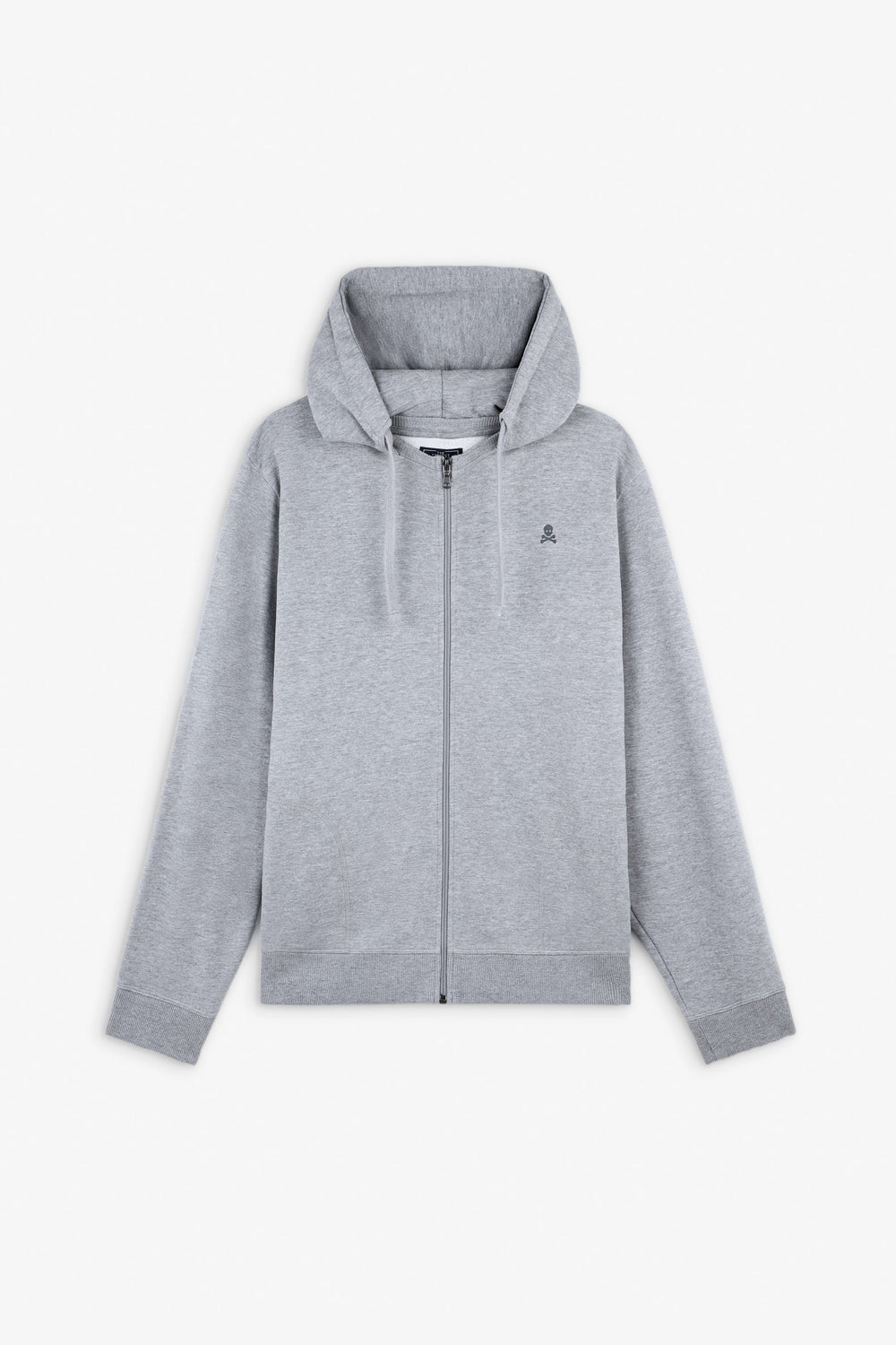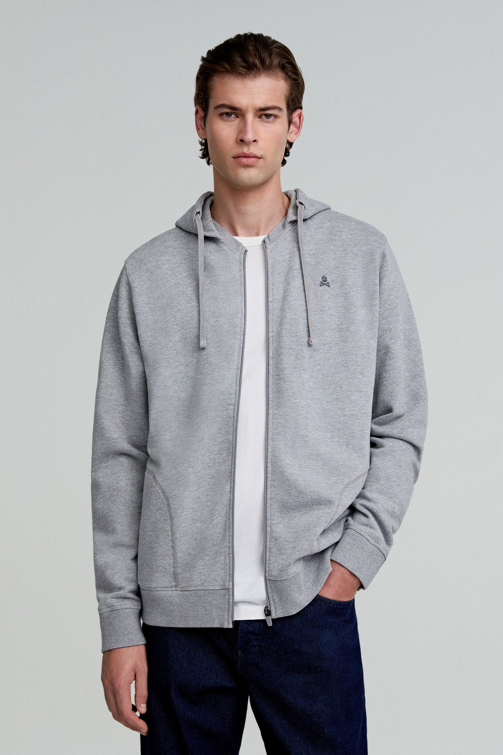 Sweatshirt com skull em contraste. Confecionada em algodão BCI. Corte regular fit. Gola com capuz ajustável com cordões. Com fecho de correr. Manga comprida. Bolsos laterais