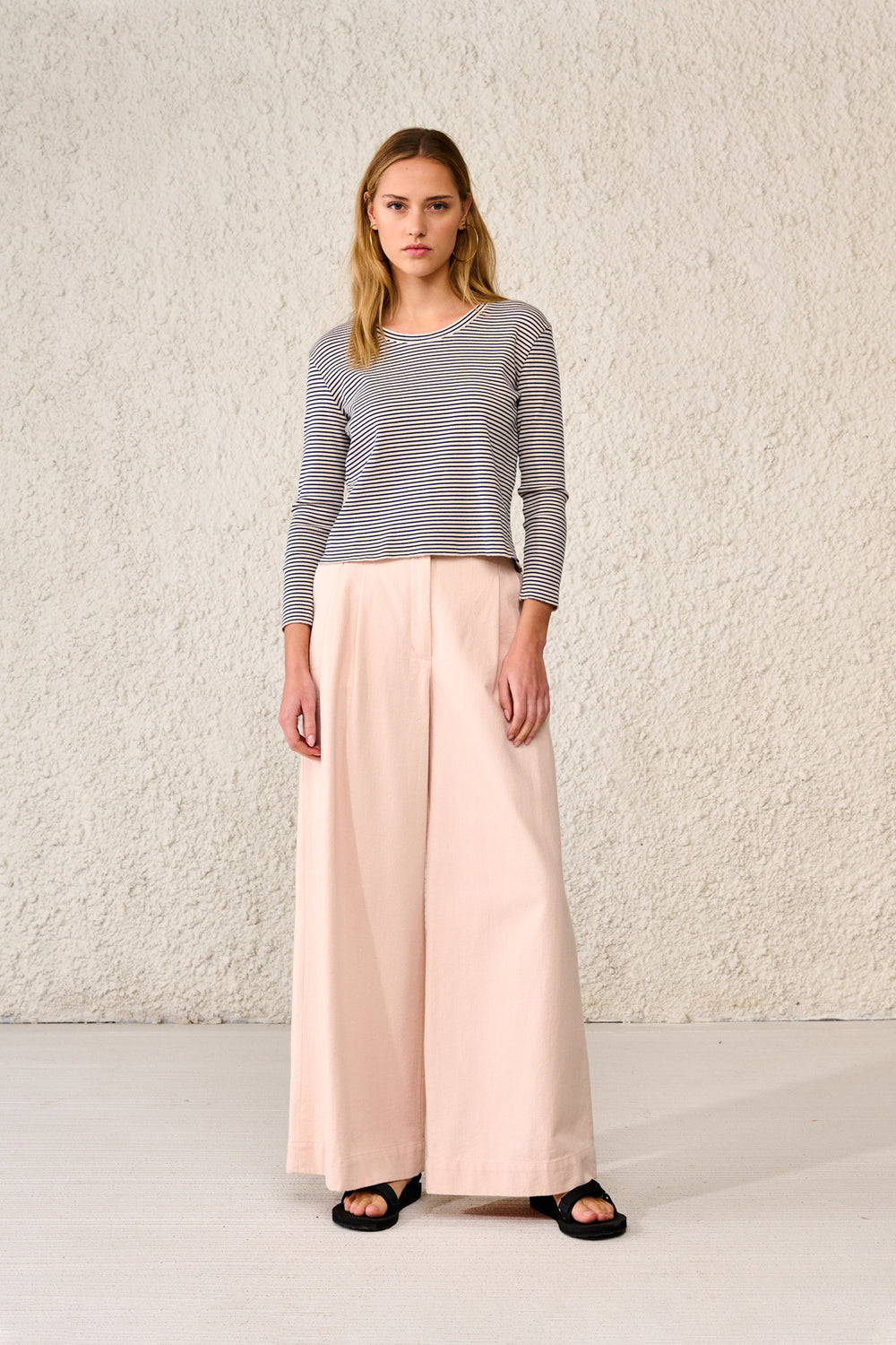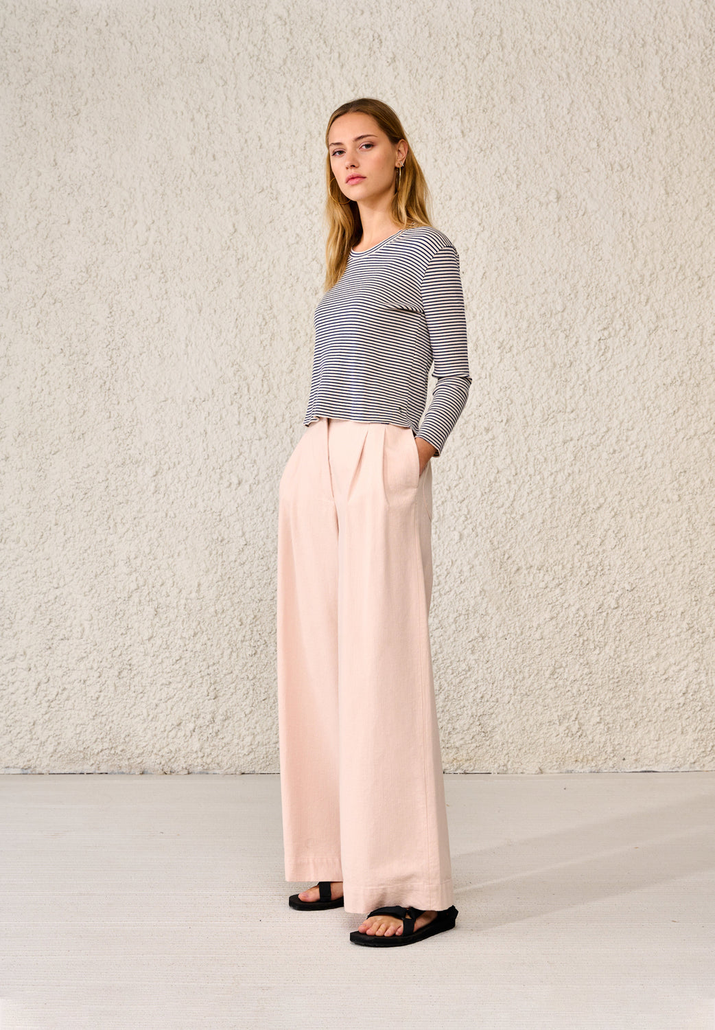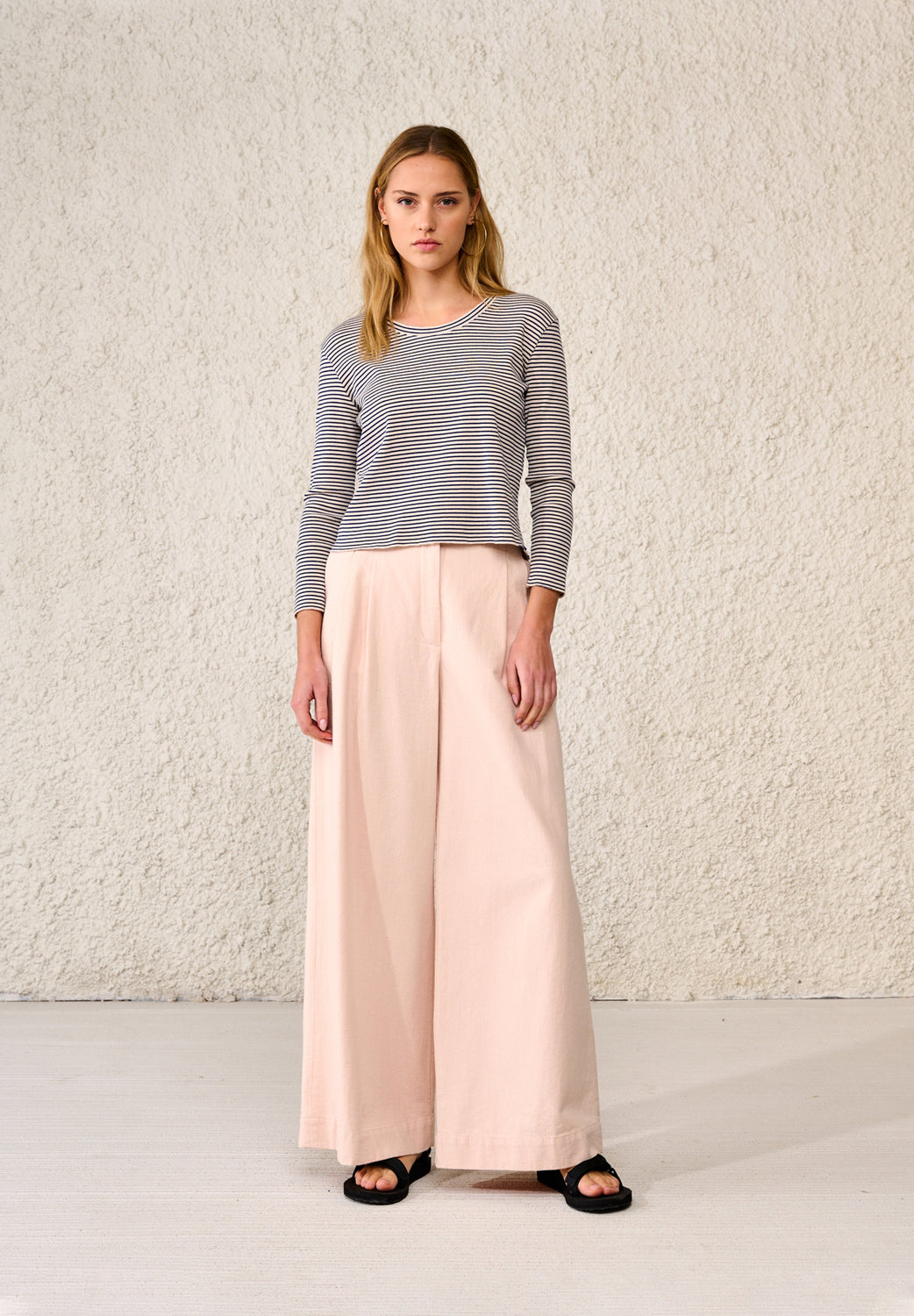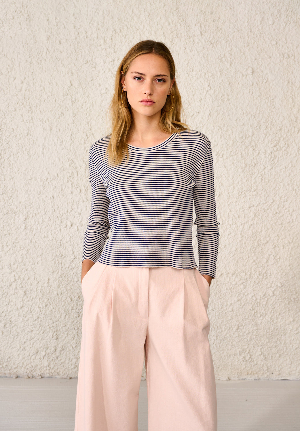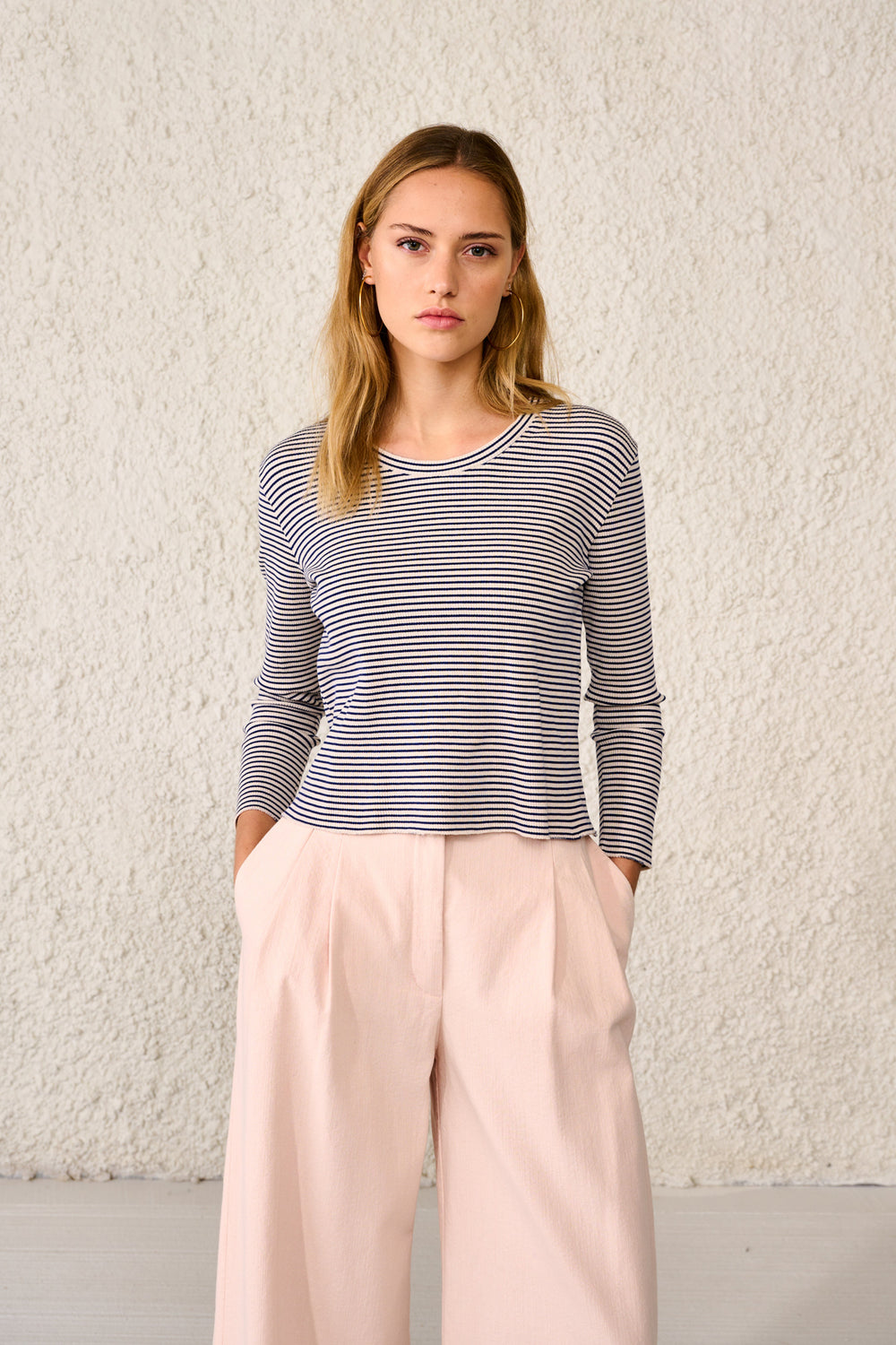 T-shirt canelada confecionada em tecido com mistura ecológica de Lyocell.