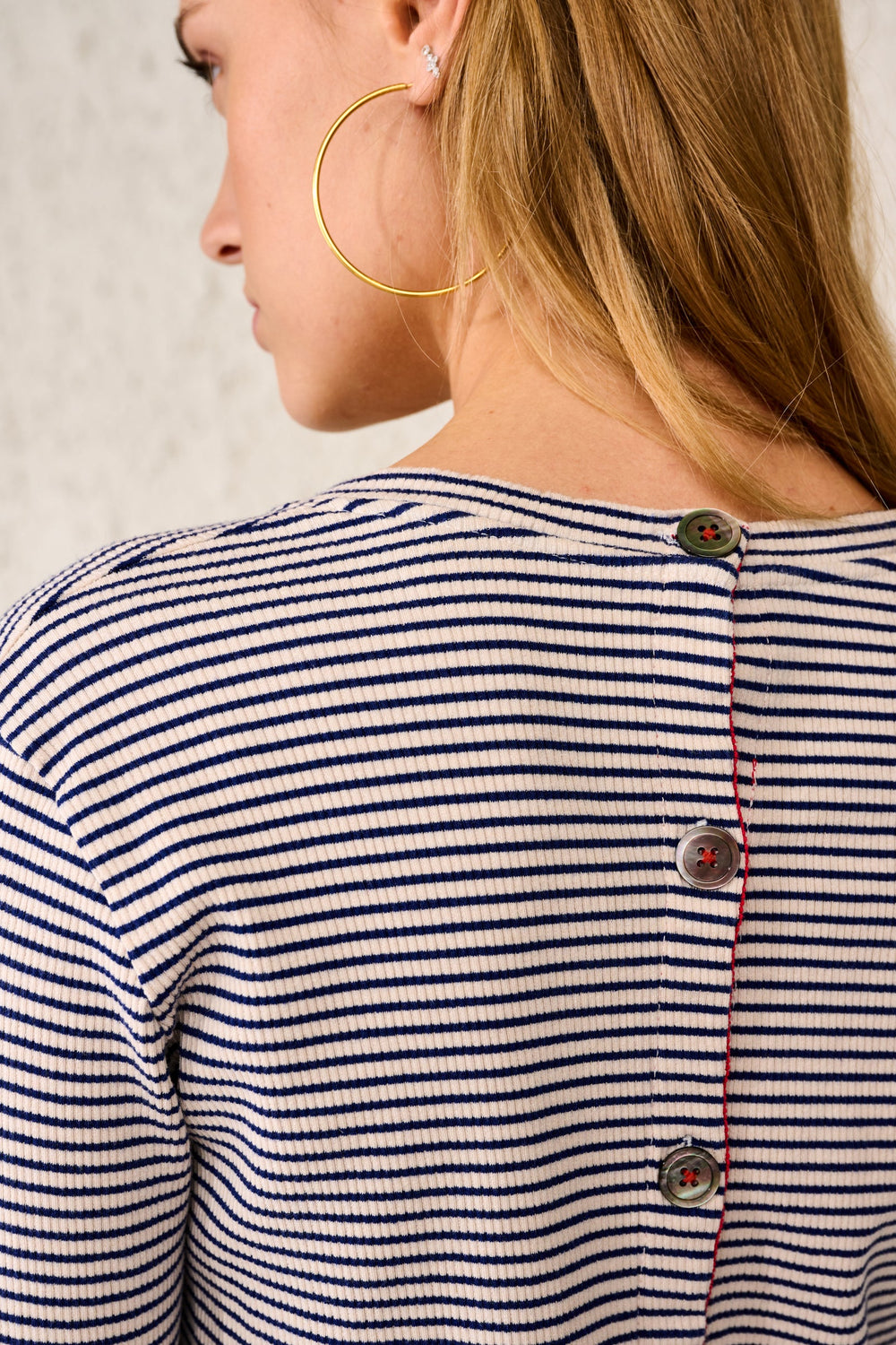 - Pormenor de fecho traseiro com botões.