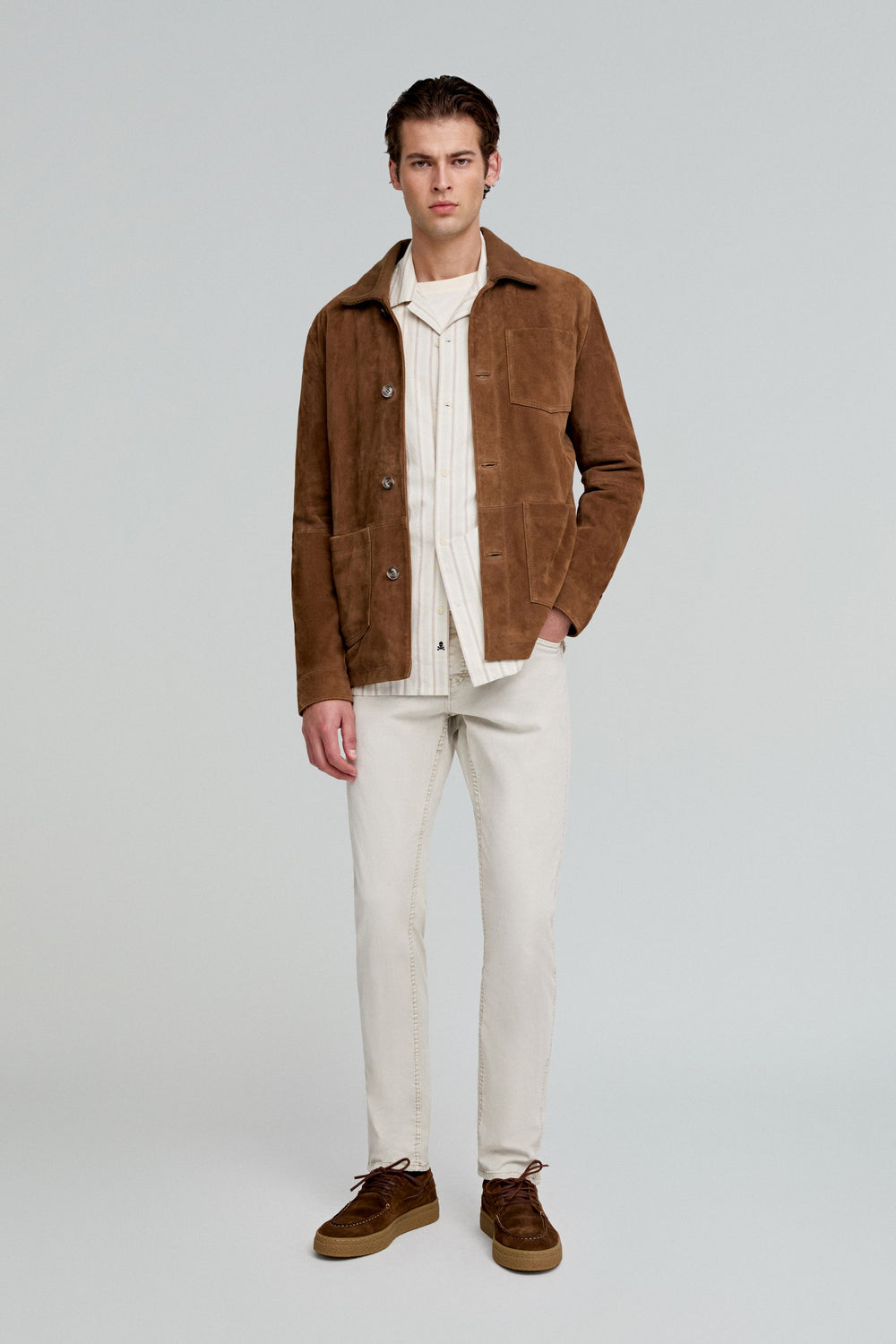 Calças de cinco bolsos. Confeccionadas em algodão BCI ligeiramente elástico. Corte Regular Fit. Fecho com botão. Bolsos traseiros e laterais. Passadores na cintura.
