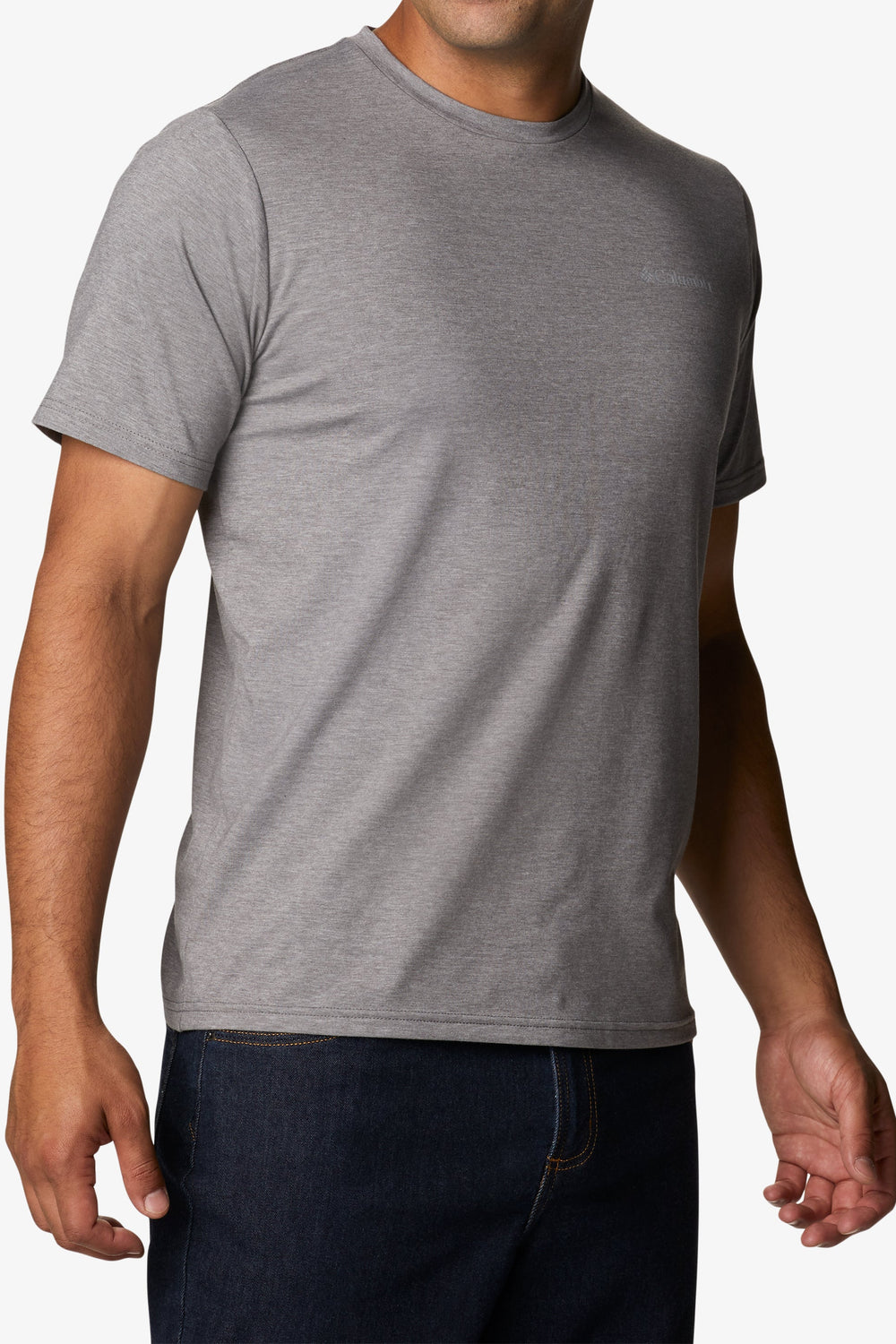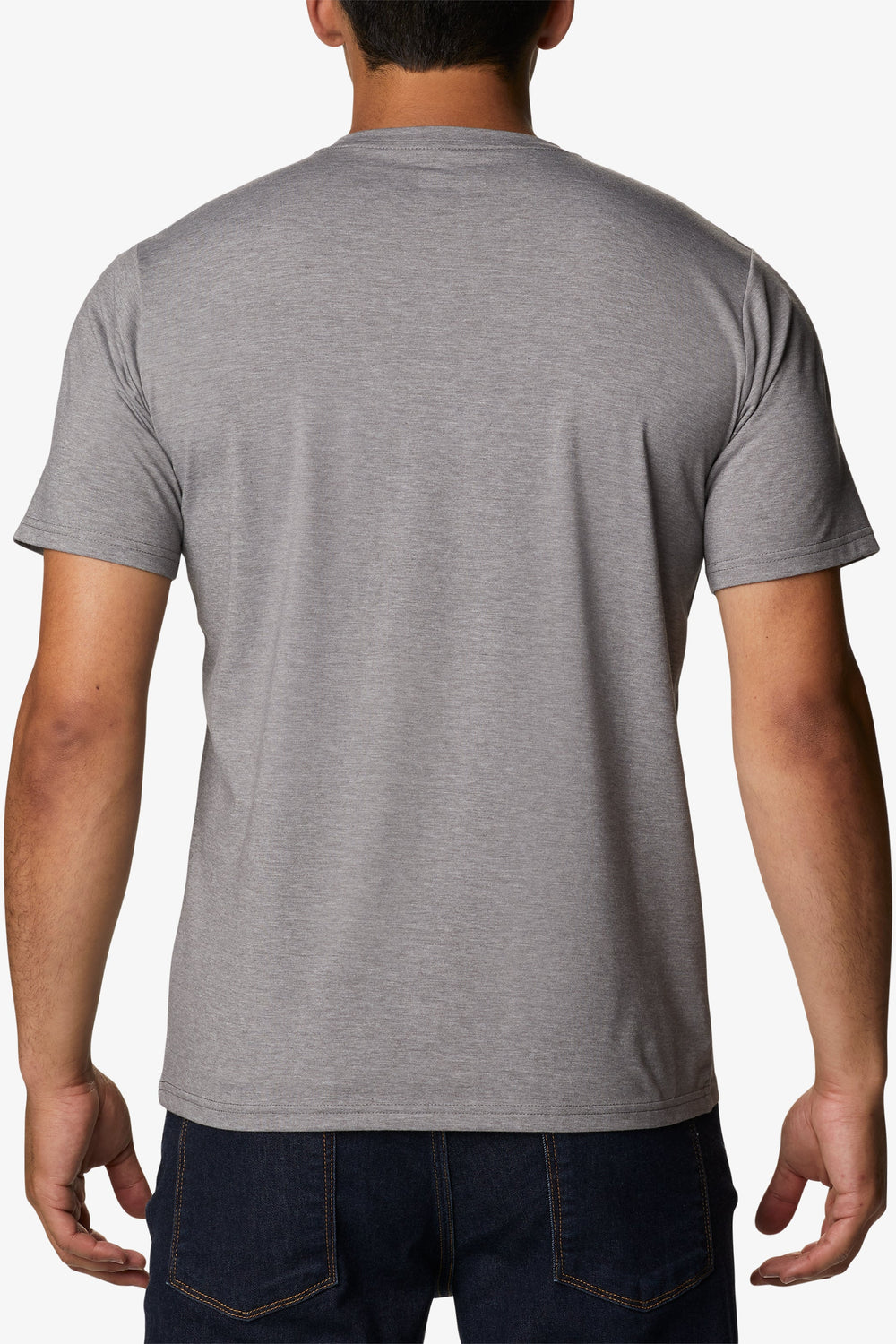 T-shirt técnica Columbia confecionada em tecido de mistura de poliéster e algodão.