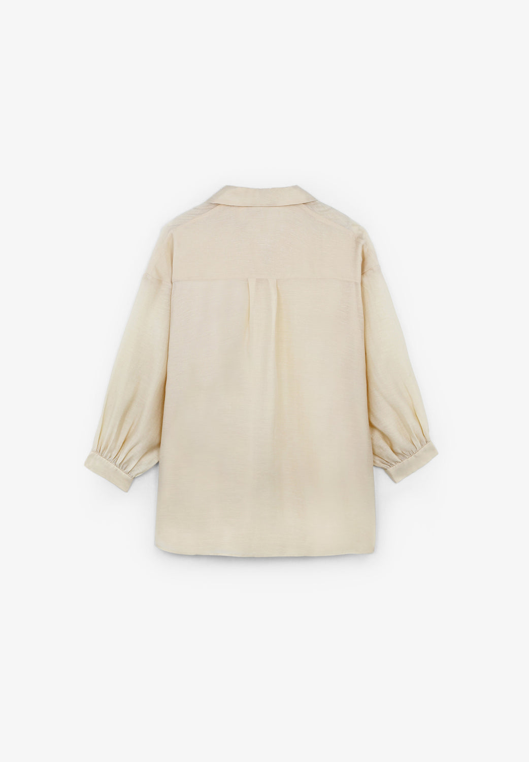 Blusa confeccionada en tejido mezcla de tencel, poliéster y lino.