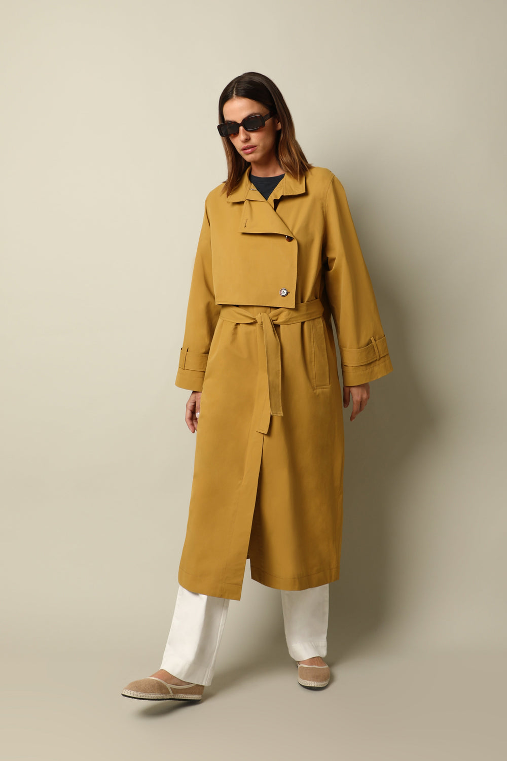 Gabardina larga Samsoe confeccionada en tejido mezcla de algodón y poliamida.