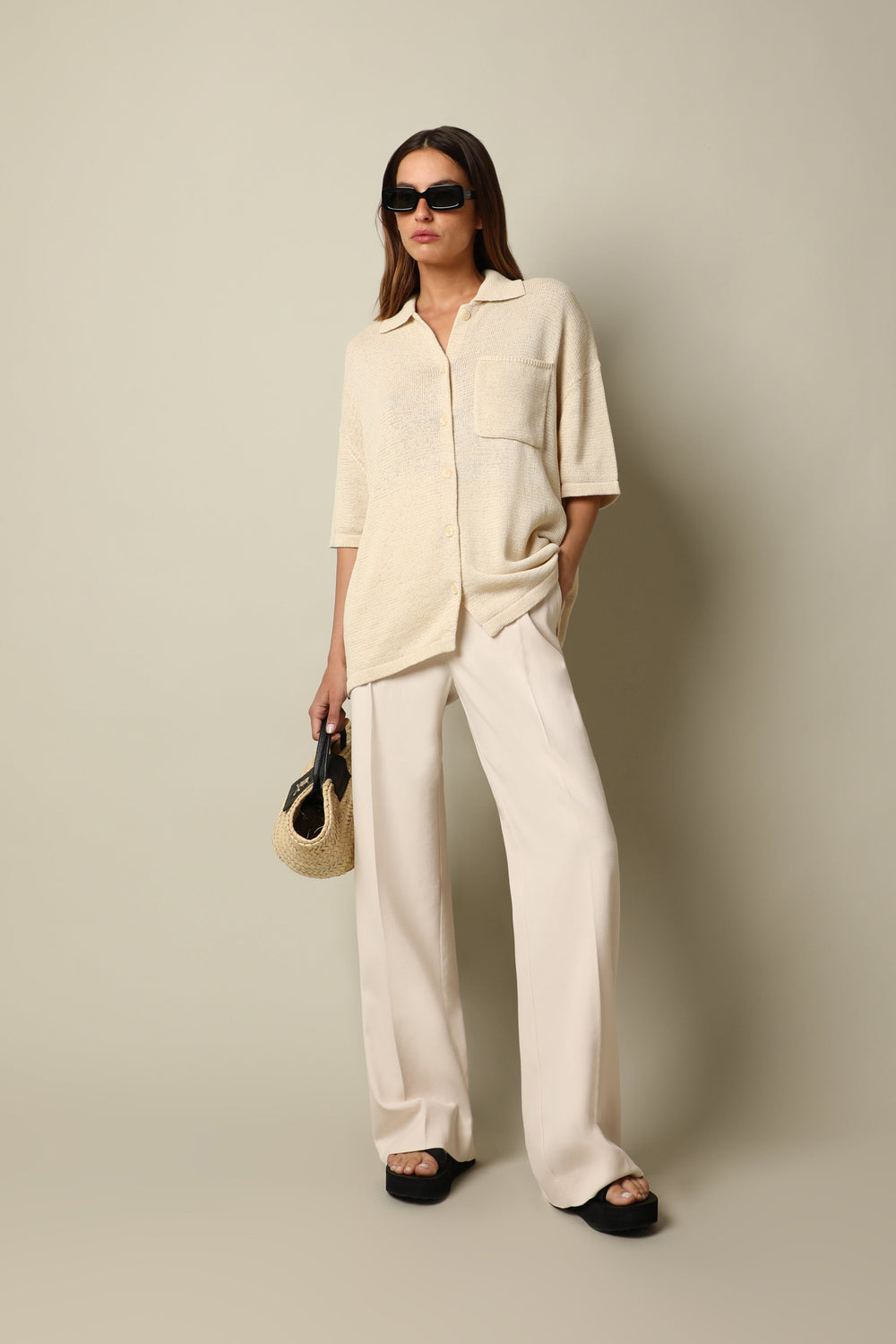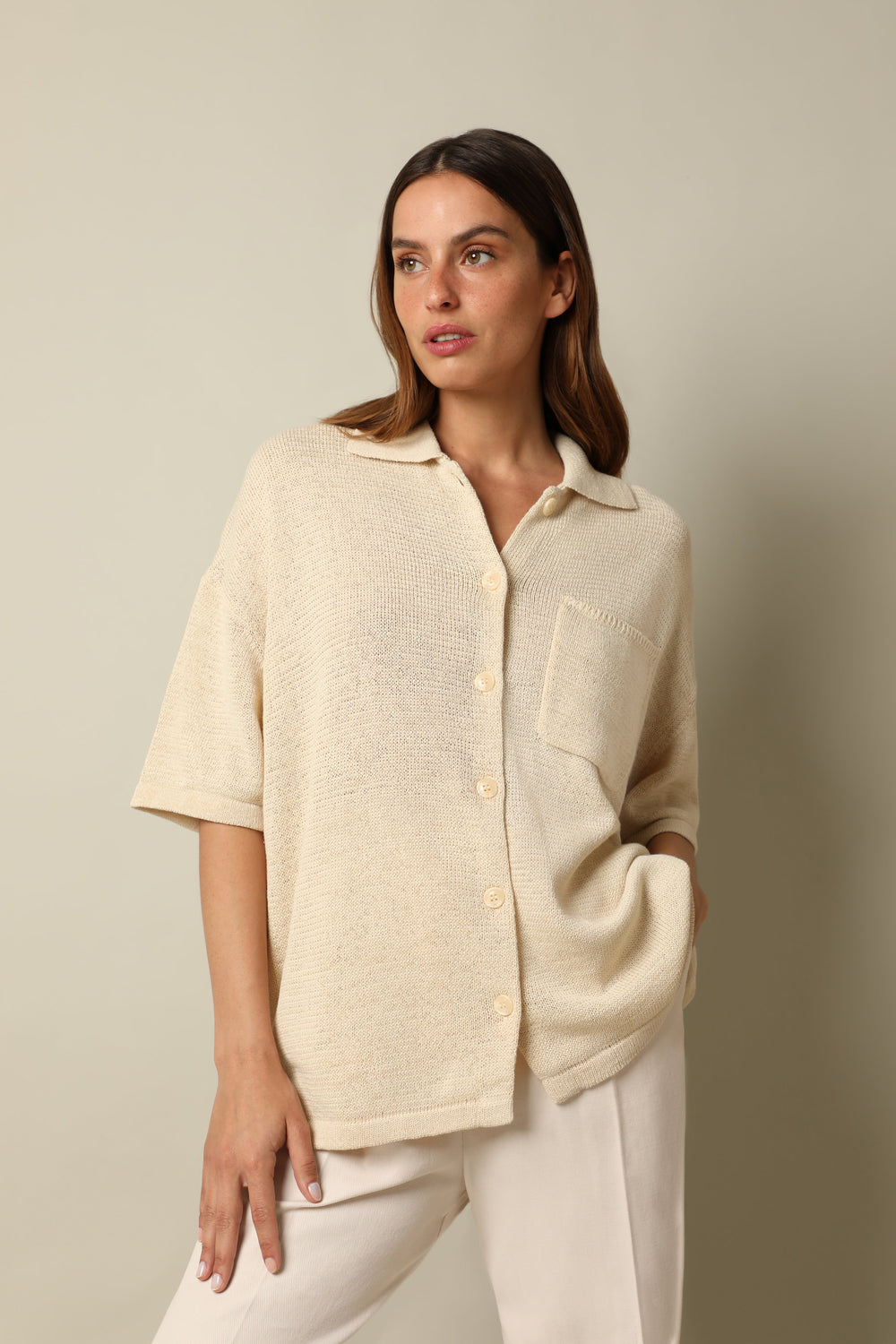 Camisa Samsoe confeccionada en tejido de punto mezcla de ramio, algodón y nylon.