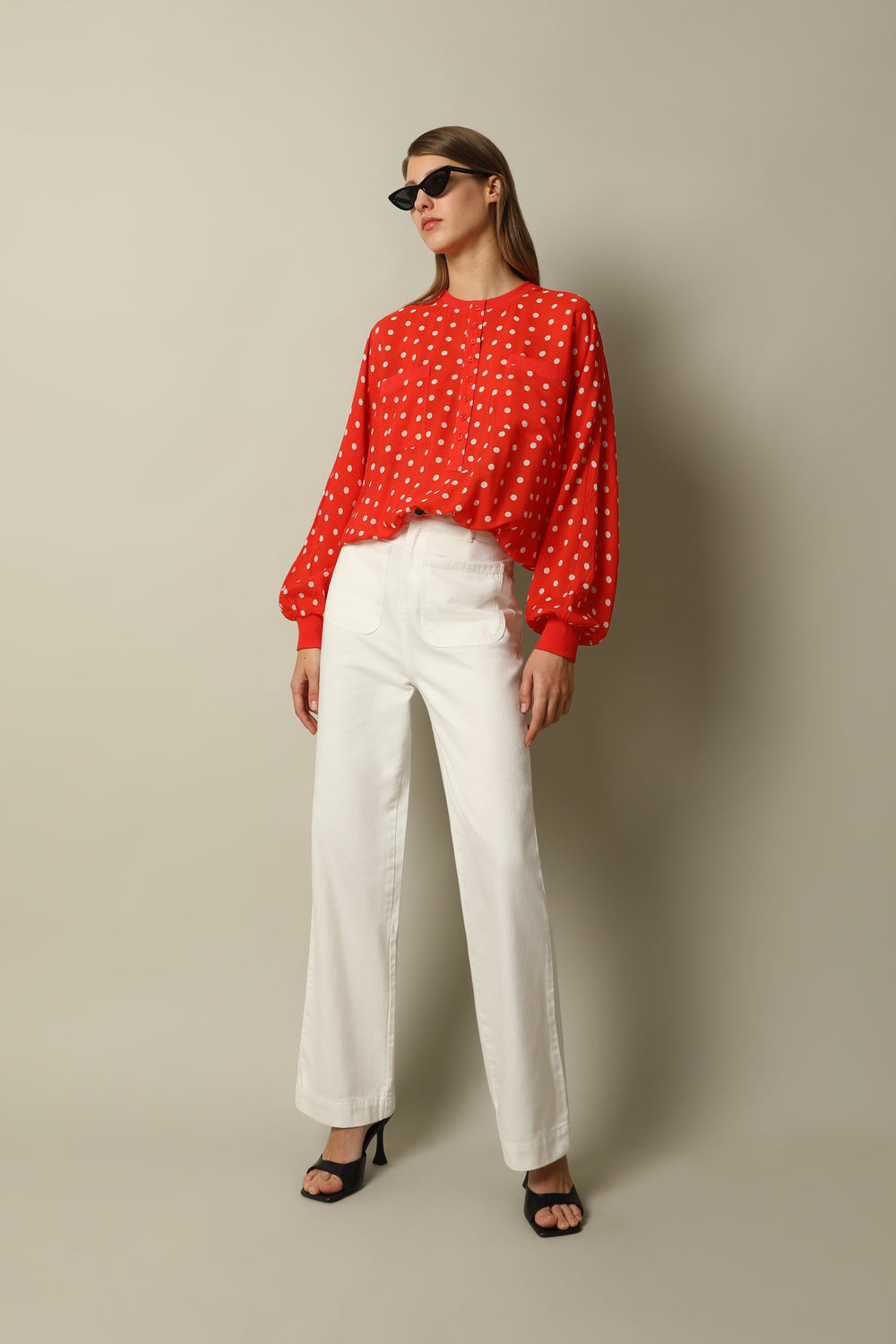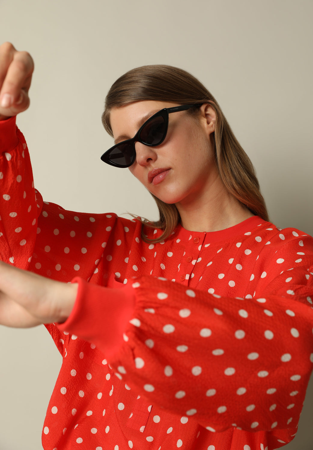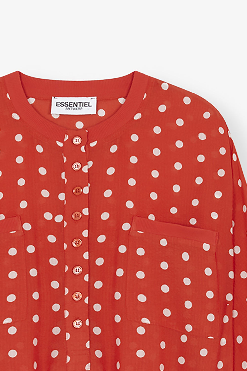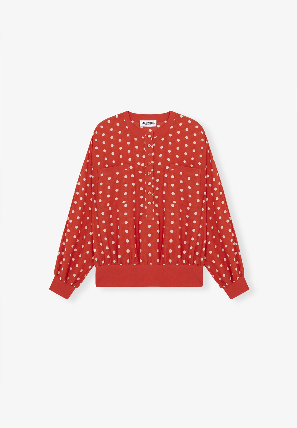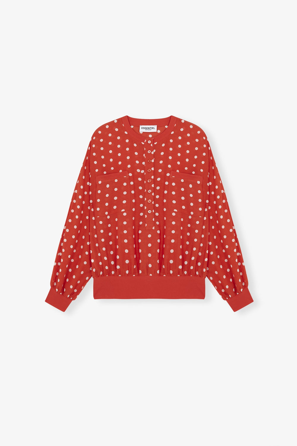 Top Essentiel con estampado de lunares confeccionado en tejido ligero de seda y viscosa.