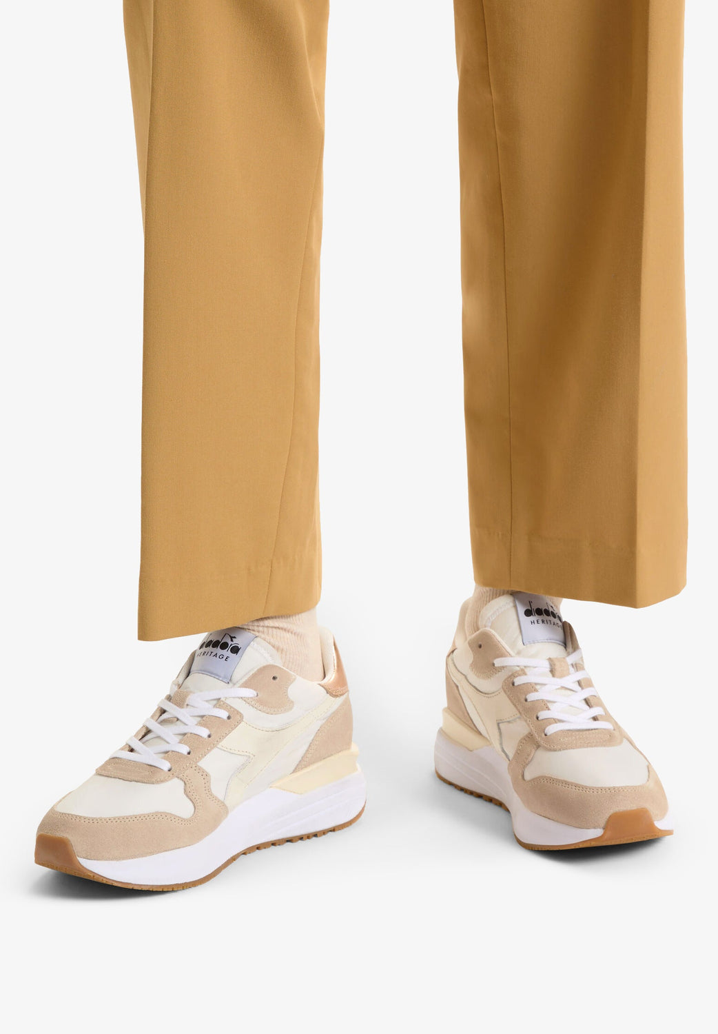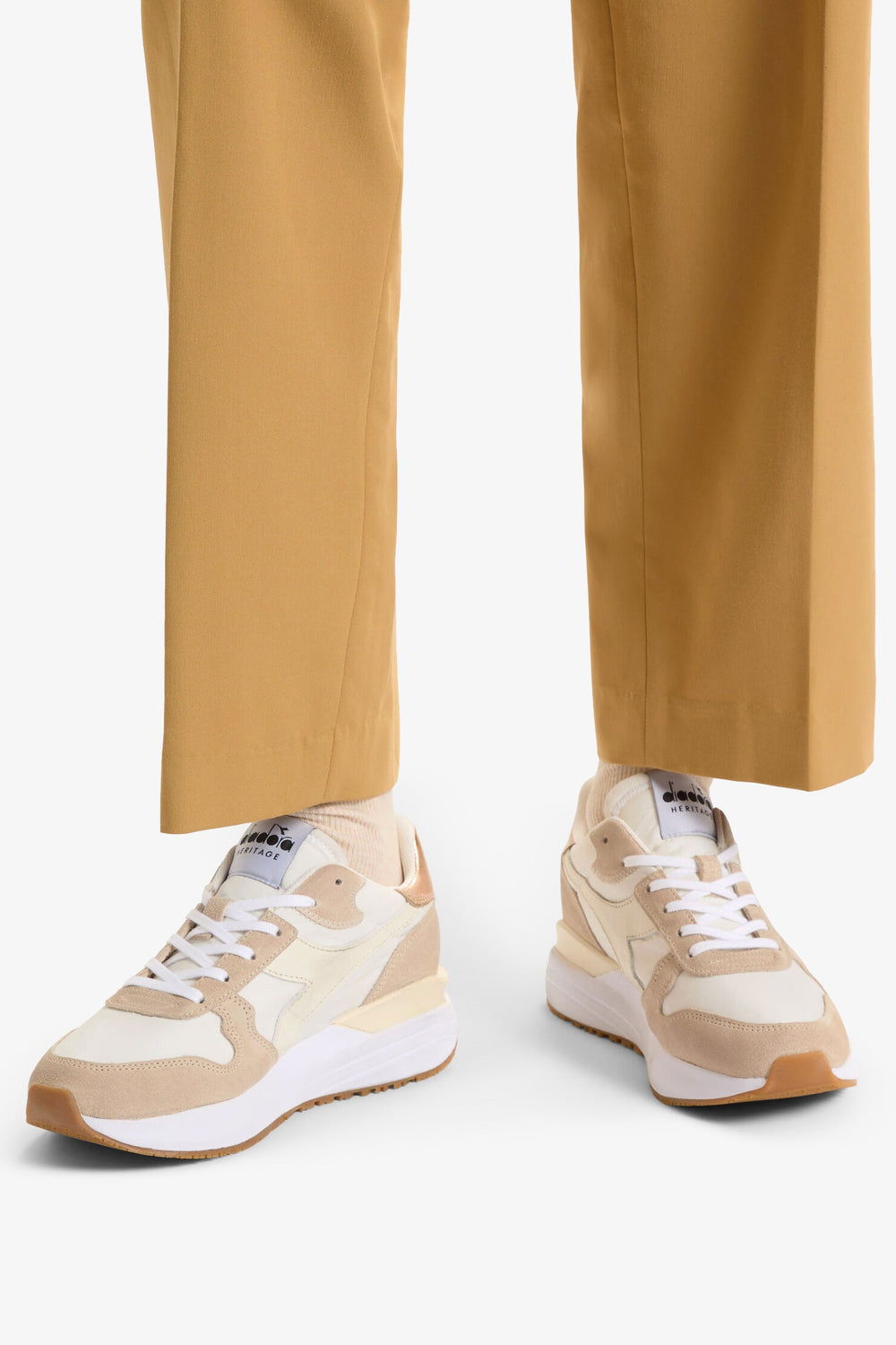 Sapatilhas Diadora confecionadas em tecido de alta qualidade da mesma forma que toda a linha Heritage.